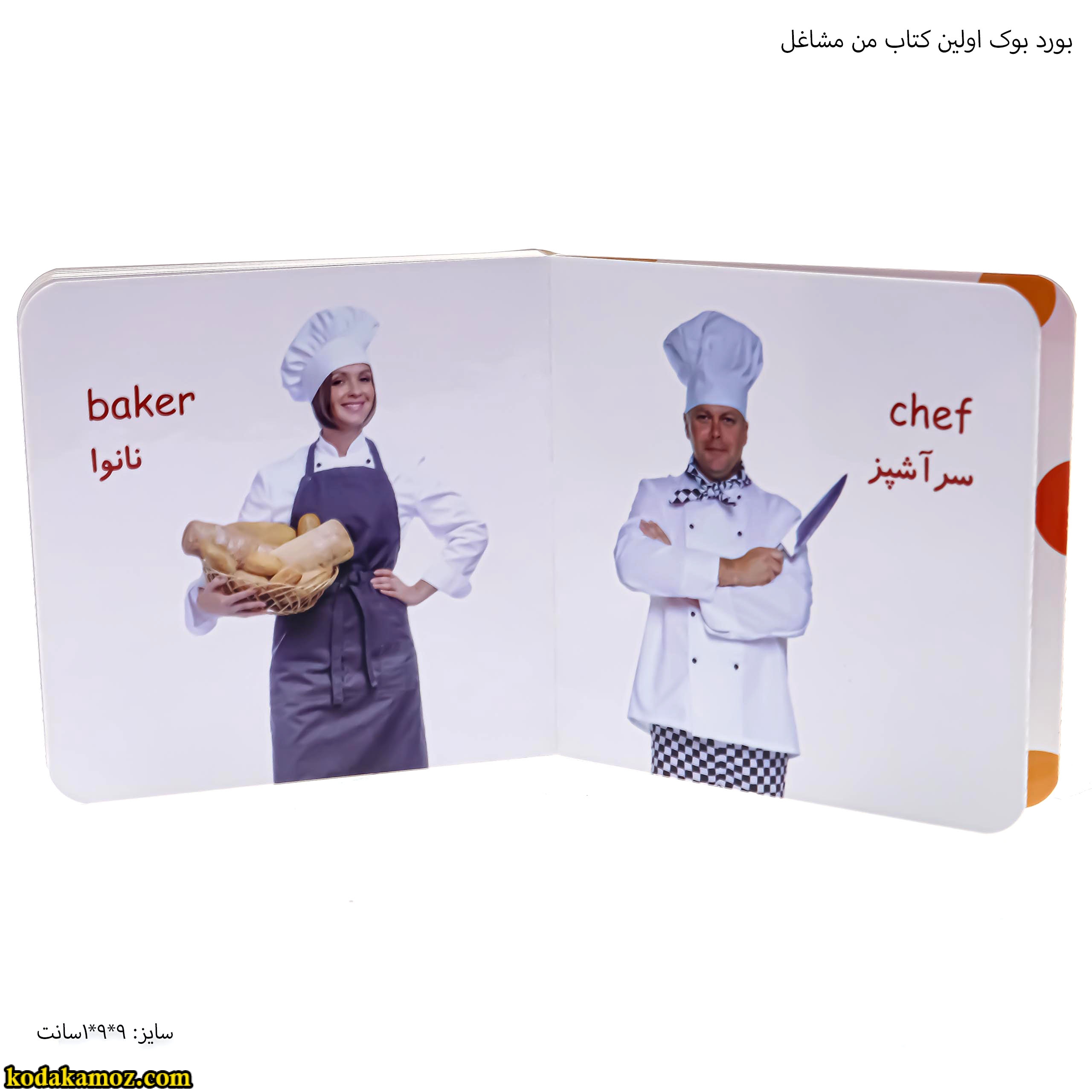 بورد بوک اولین کتاب من مشاغل خیلی کوچکه تو هر صفحه فقط یه عکسه آدمه با لباس، از محیط کارش نیست اصلا