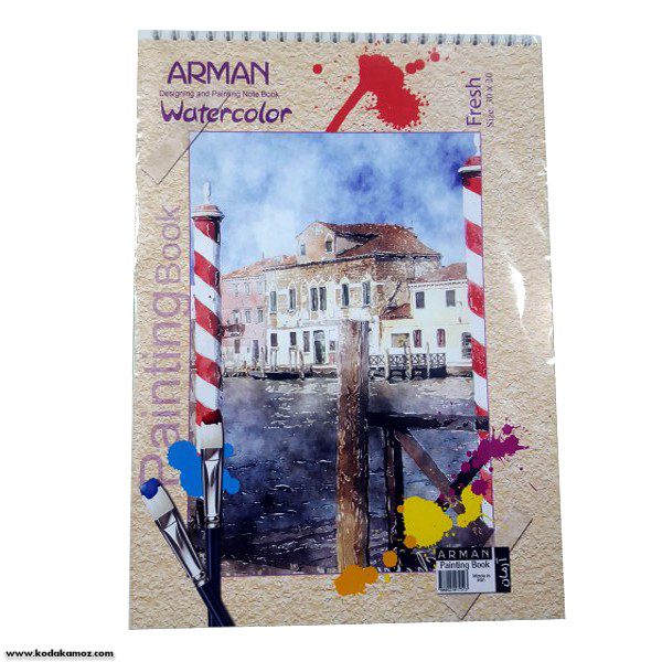 دفتر آبرنگ آرمان  سایز A4دارای مقوای گرم بالای بافت دار می باشد.