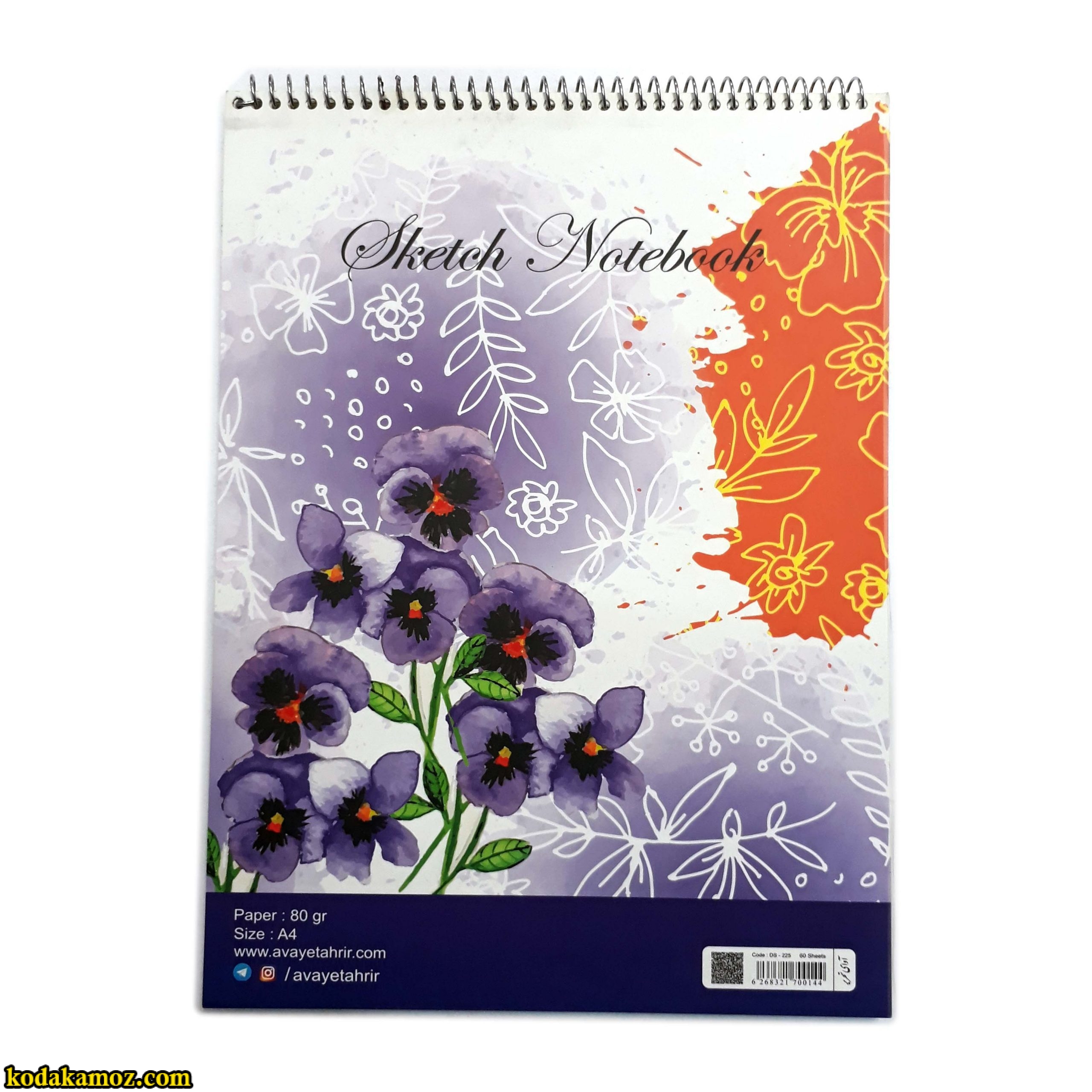 دفتر طراحی آوای تحریر سایز A4 - دفتر طراحی گل بنفش ناموجود دفتر طراحی گل بنفش
