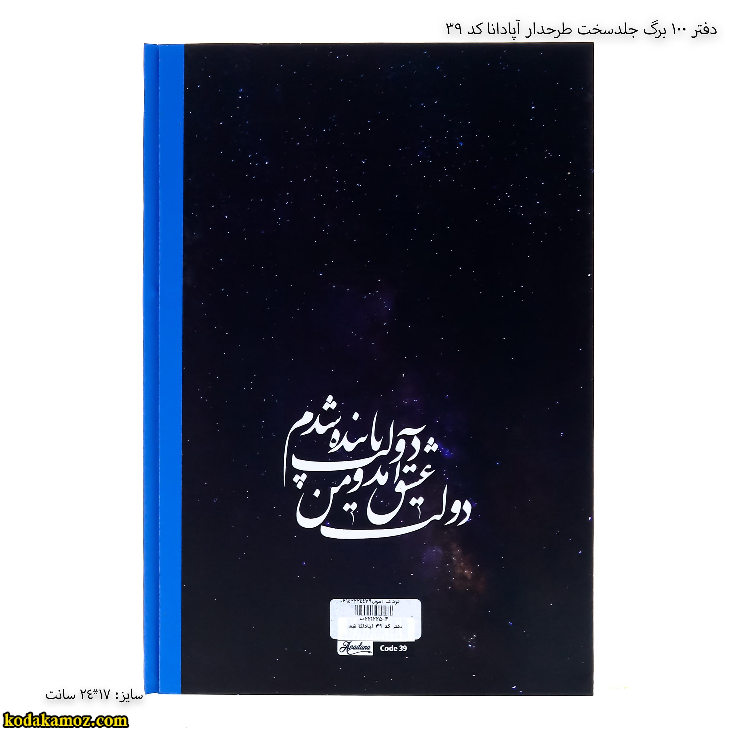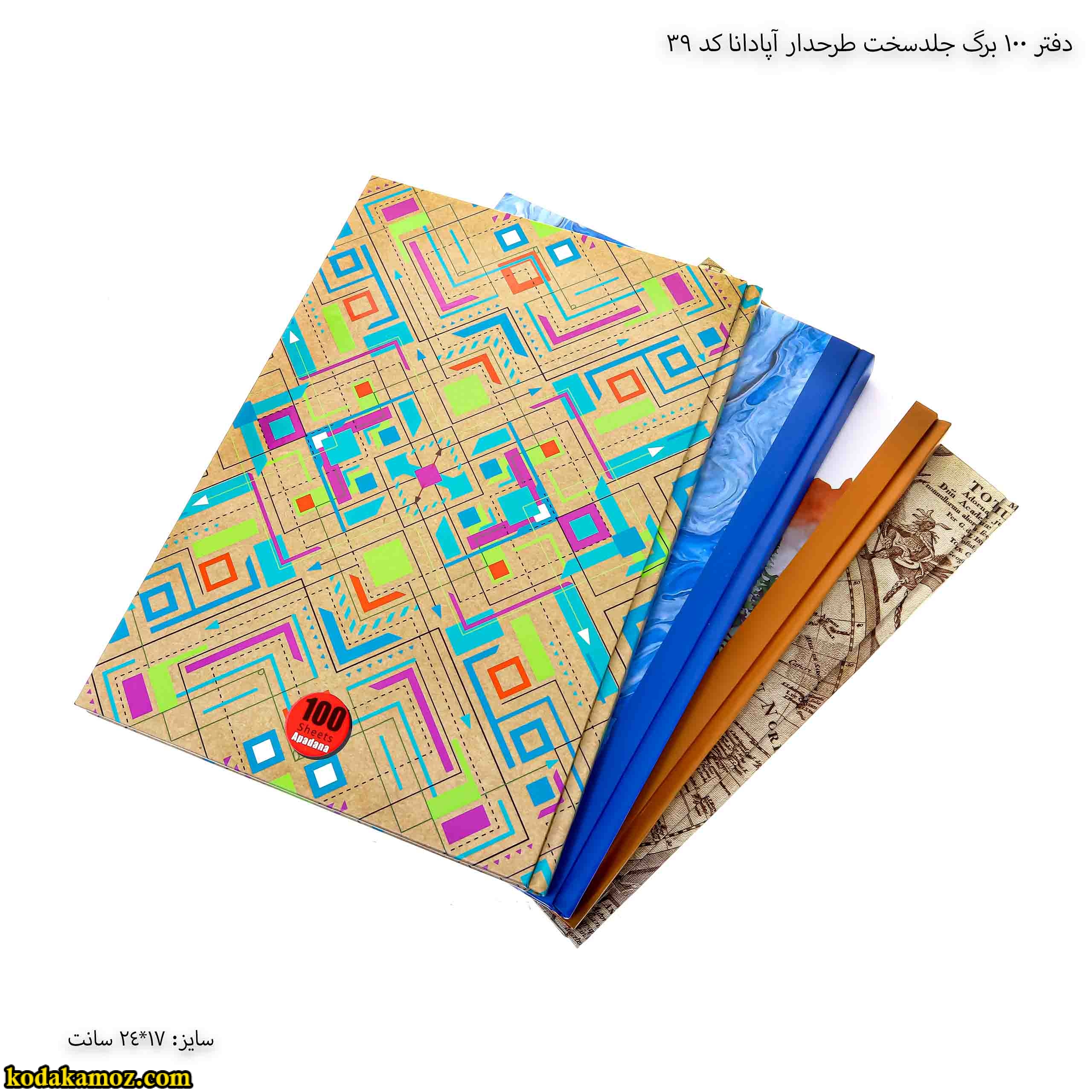 دفتر 100 برگ جلد سخت طرحدار آپادانا کد 39