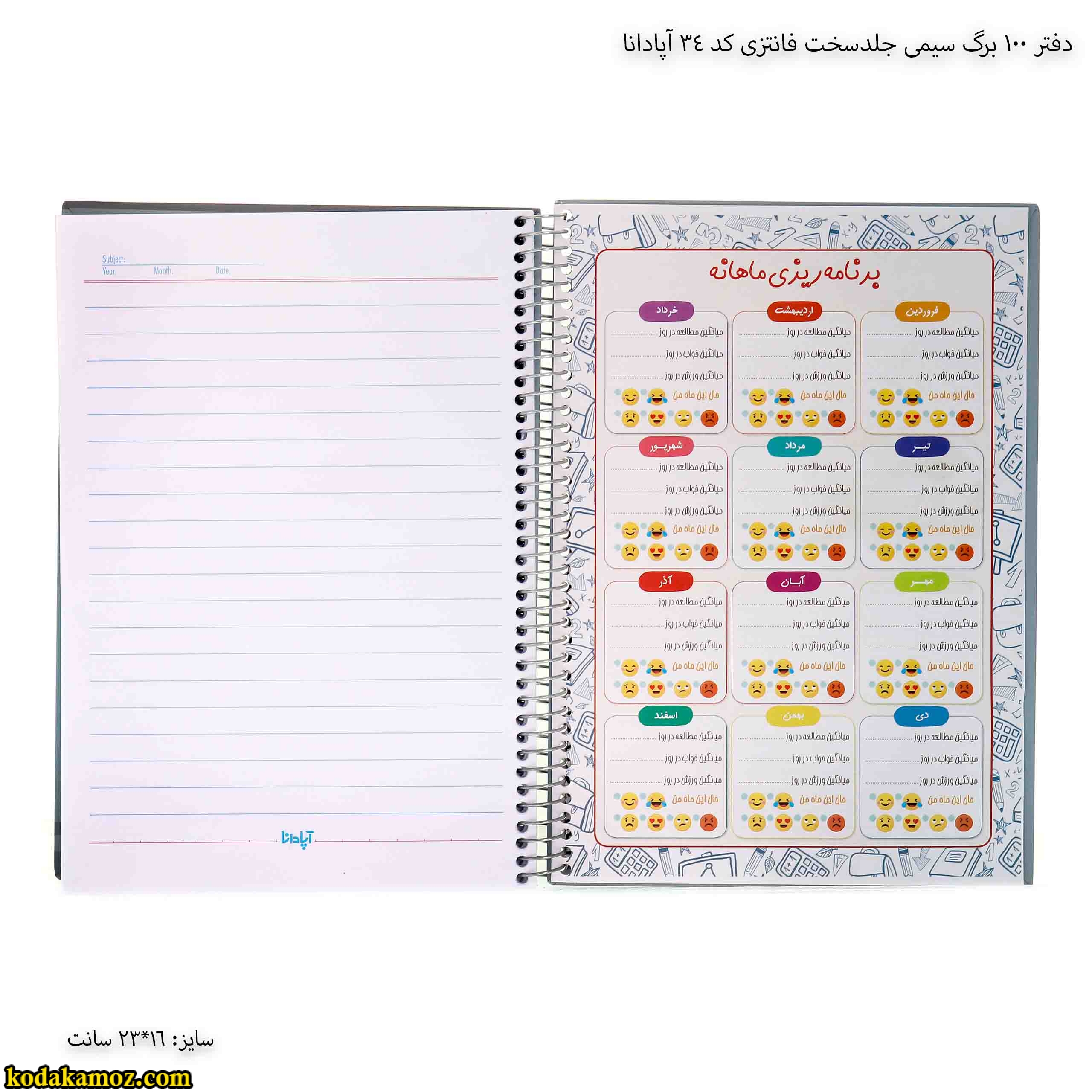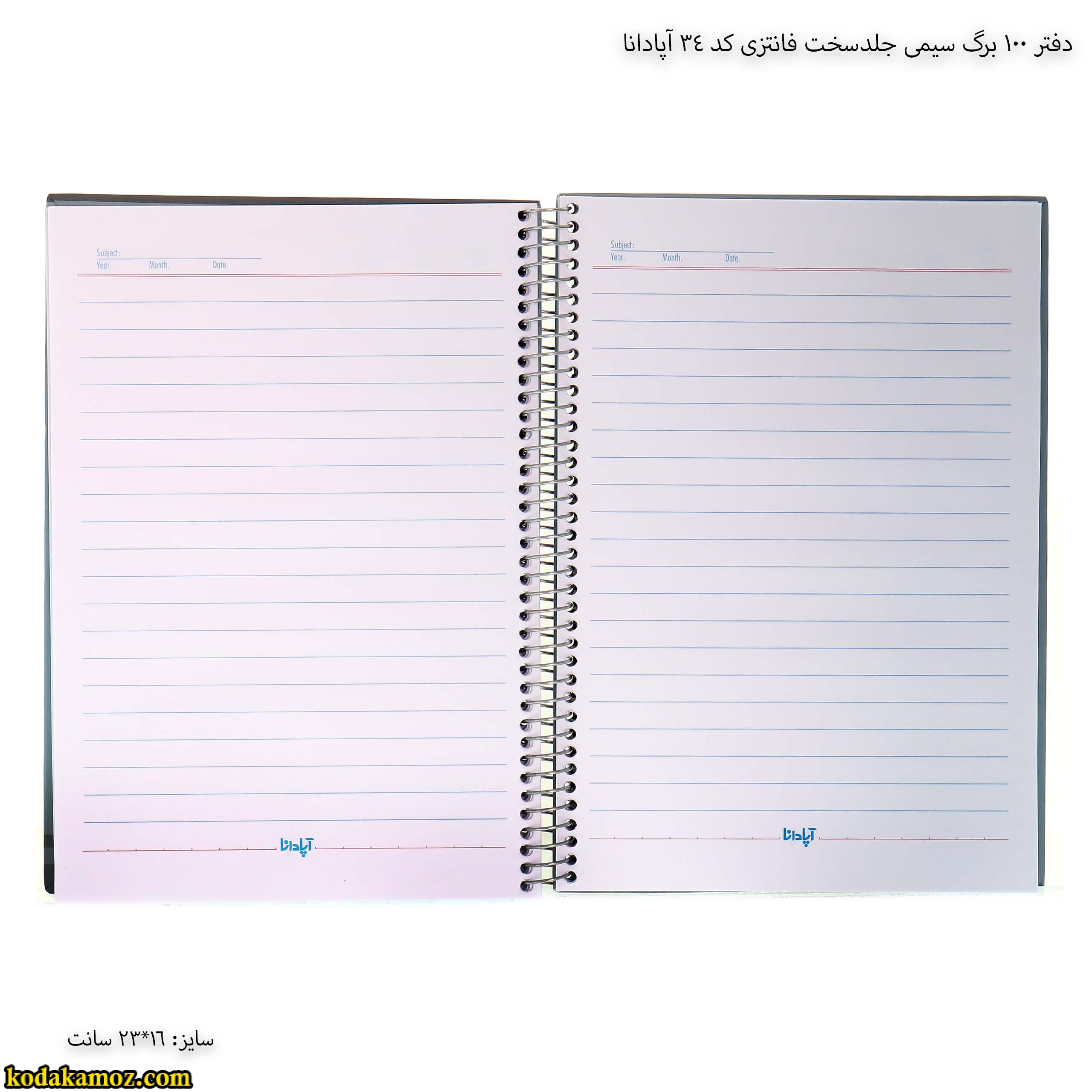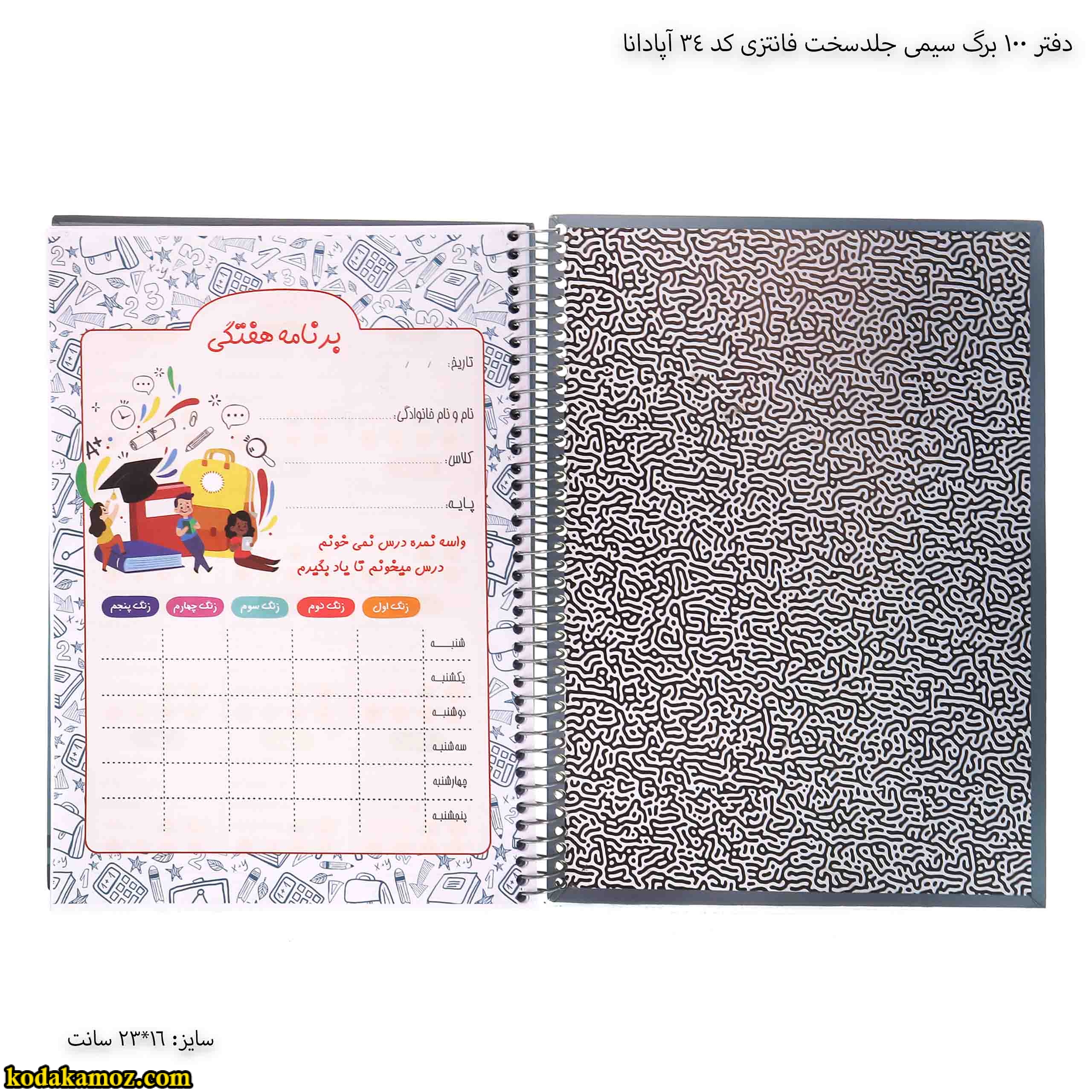 دفتر 100 برگ سیمی جلدسخت فانتزی کد 34 آپادانا