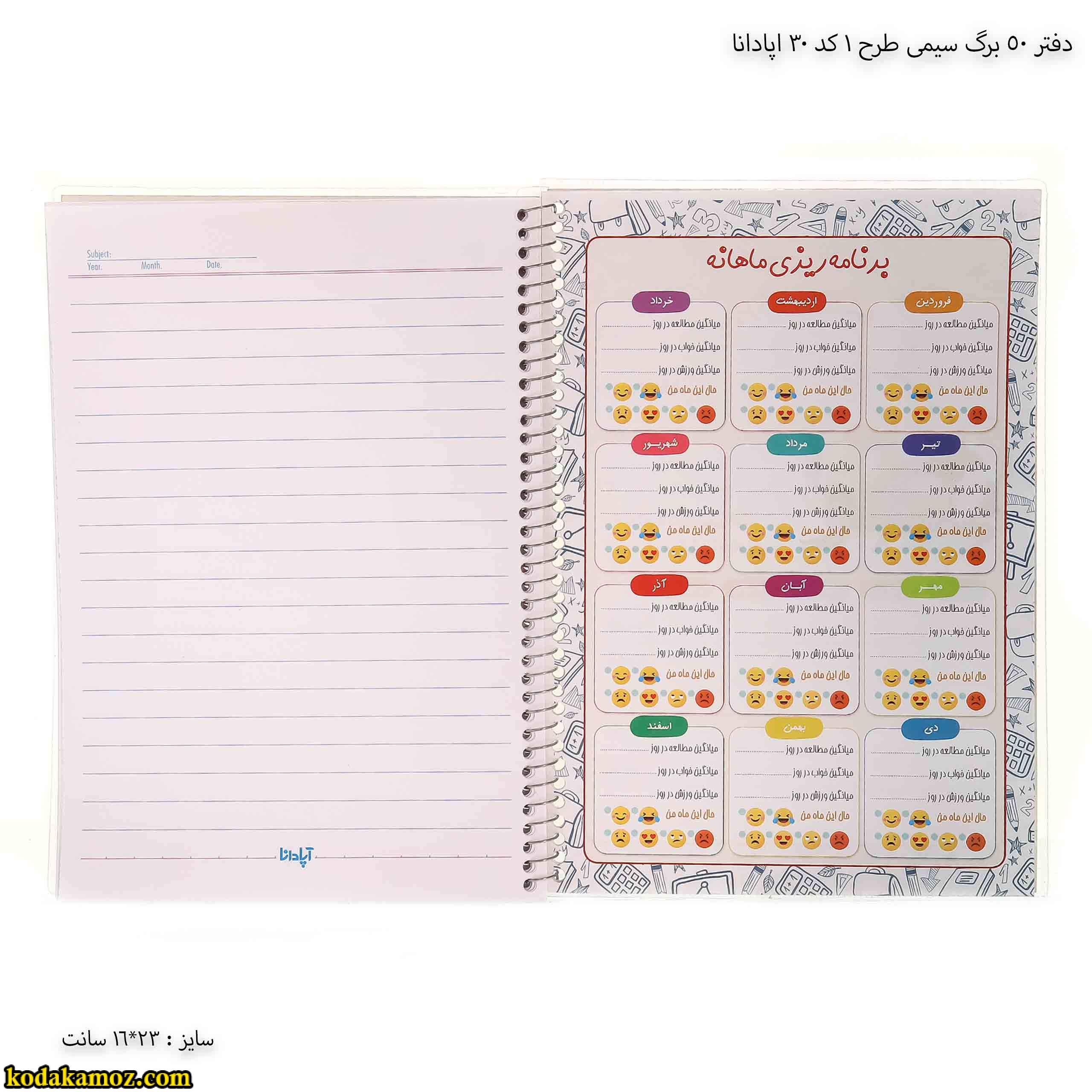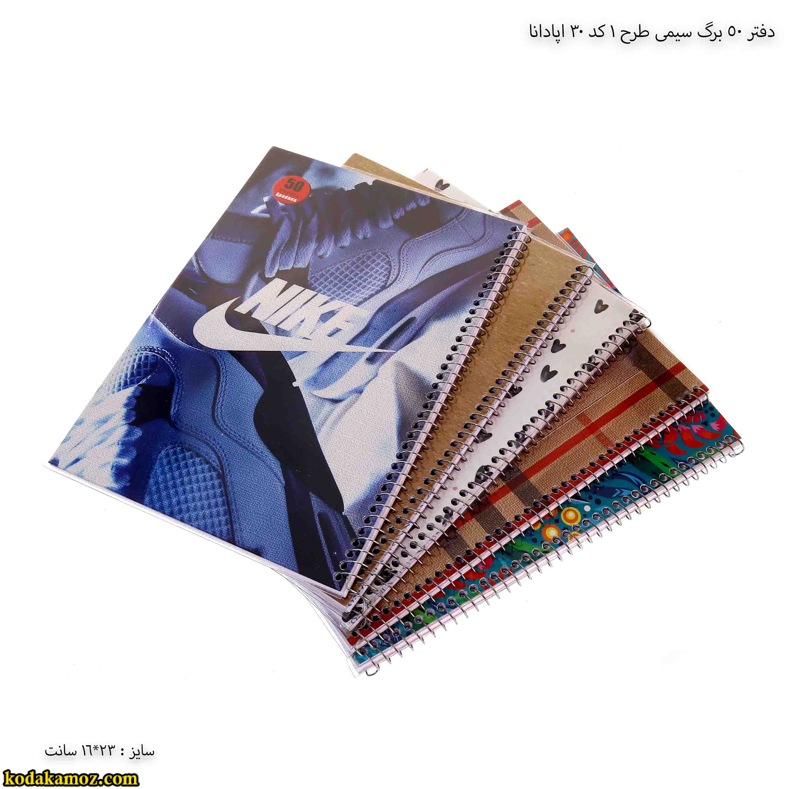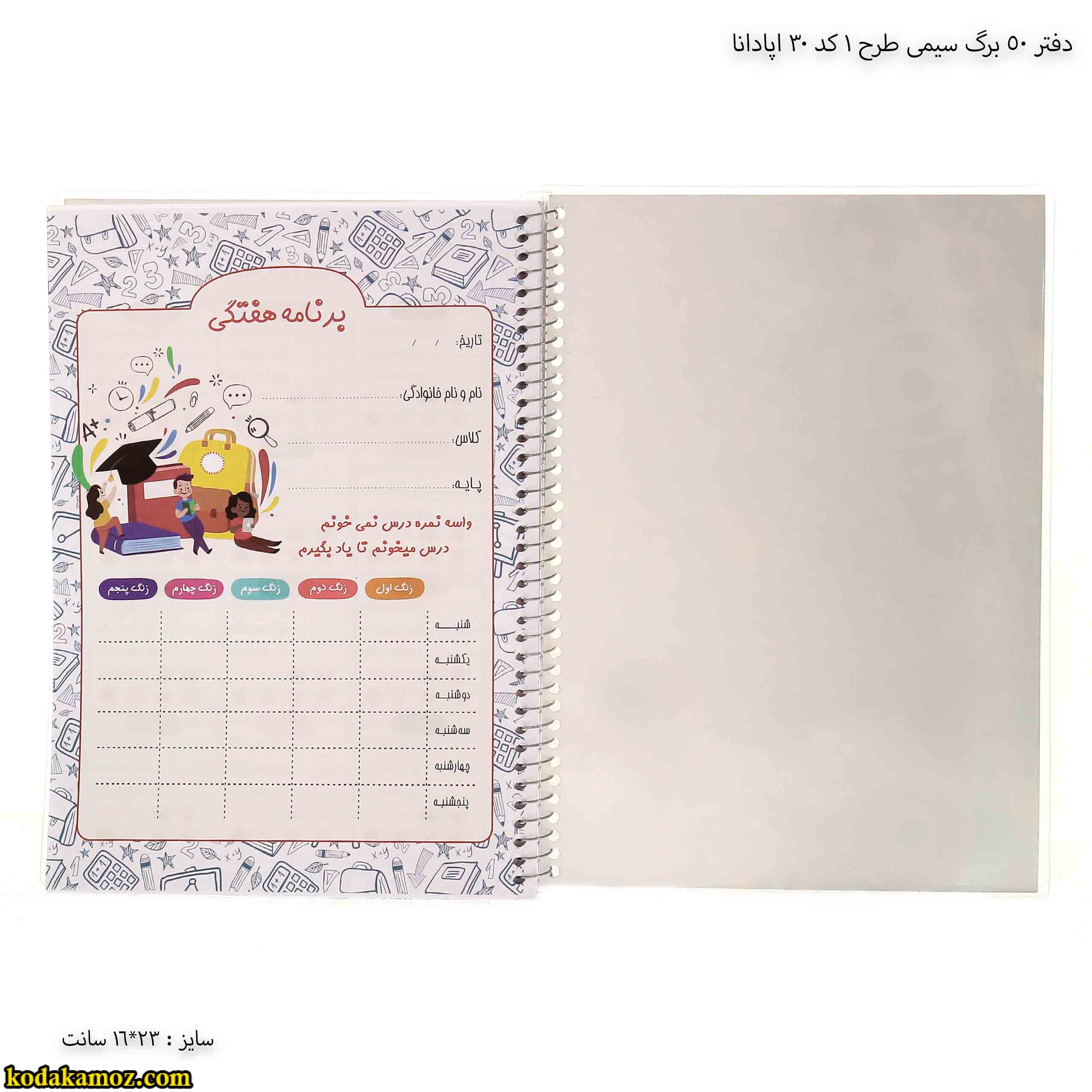 دفتر 50 برگ سیمی طرح 1 کد 30 اپادانا خیلی خوبه پیشنهاد می کنم