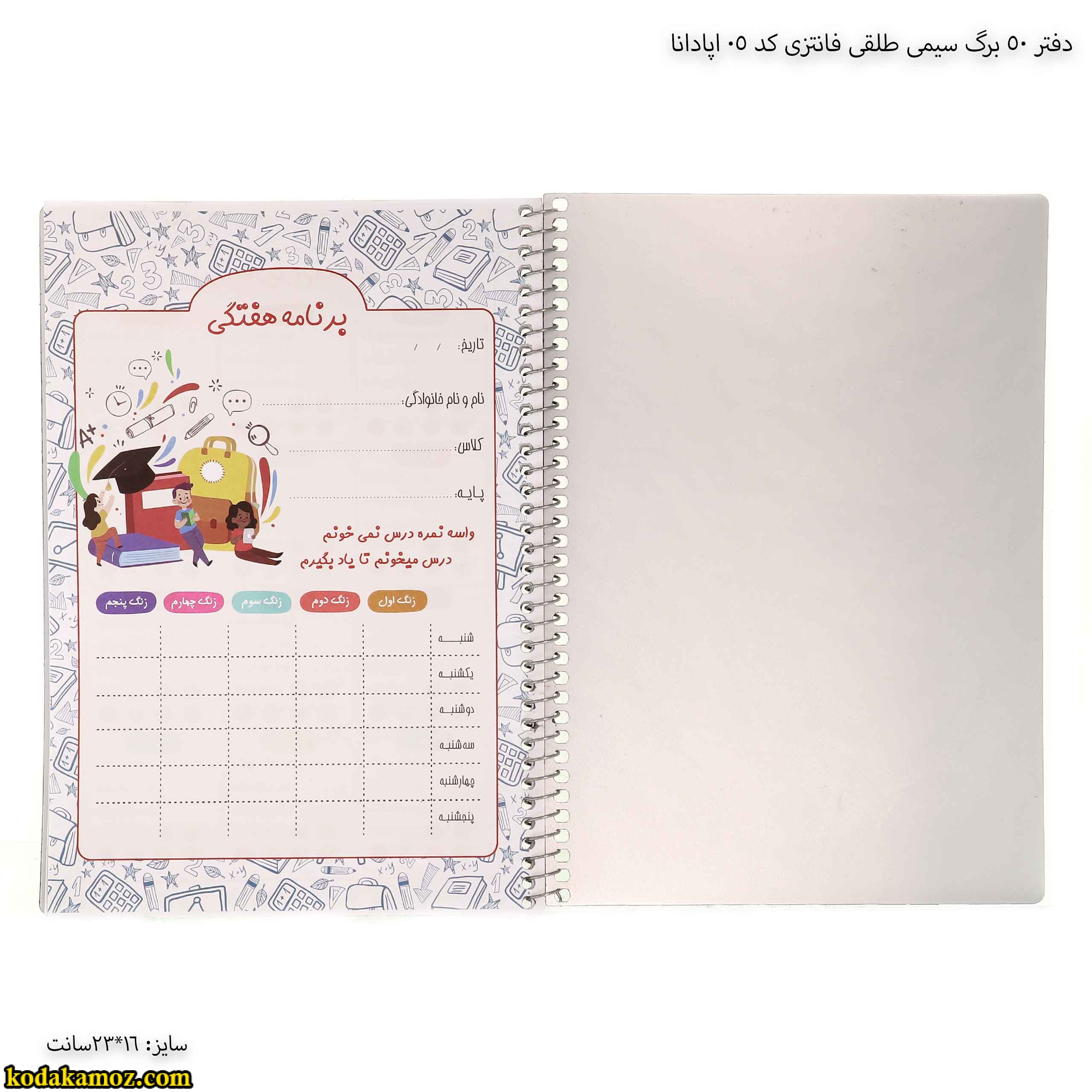 دفتر 50 برگ سیمی طلقی فانتزی کد 05 اپادانا