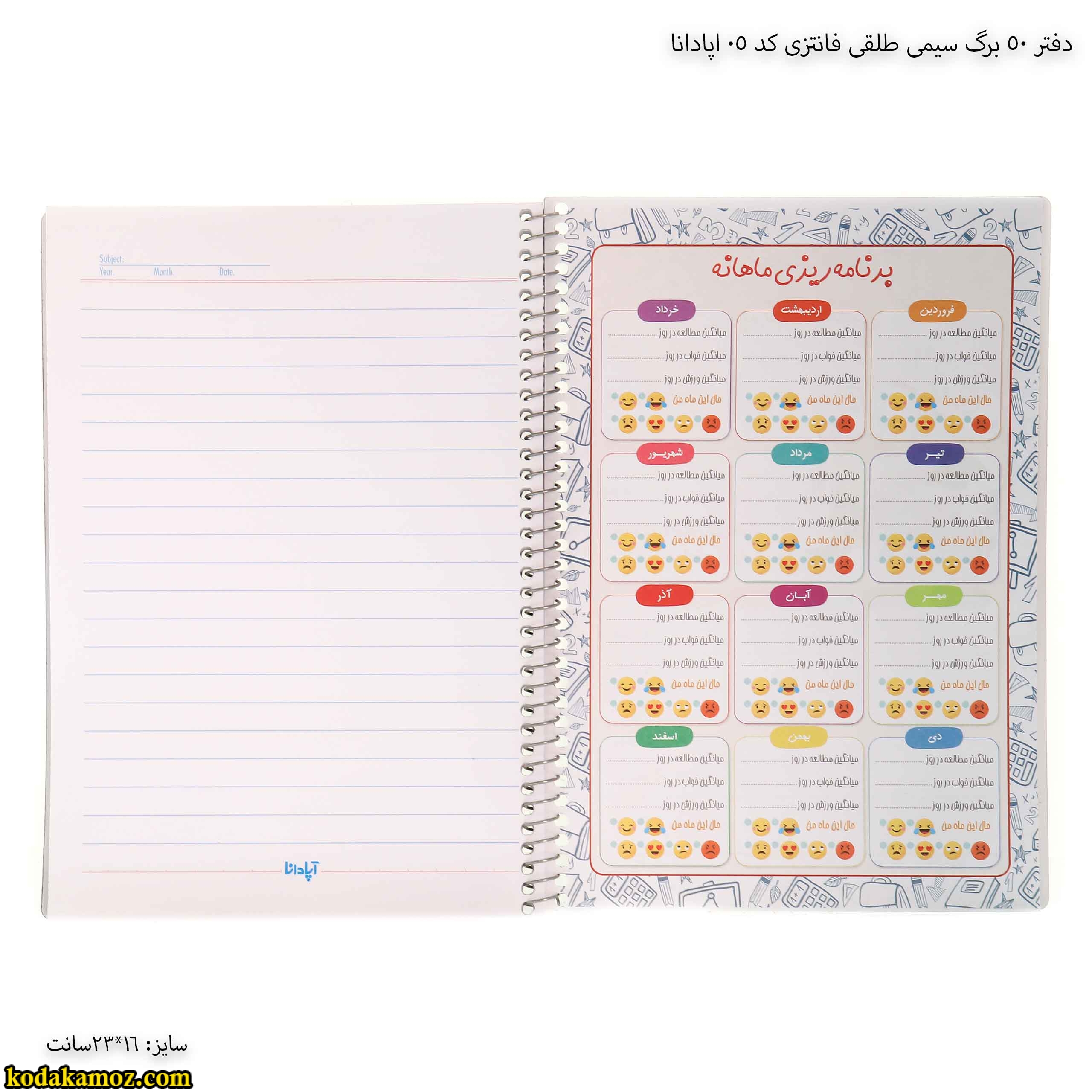 دفتر 50 برگ سیمی طلقی فانتزی کد 05 اپادانا خیلی خوب و با کیفیت و قیمت هم خوب بود