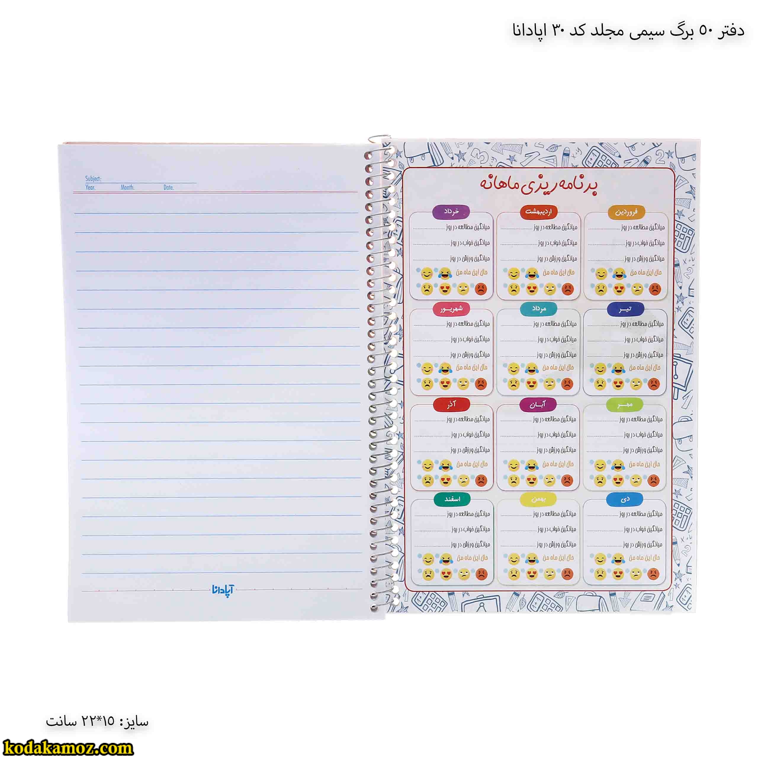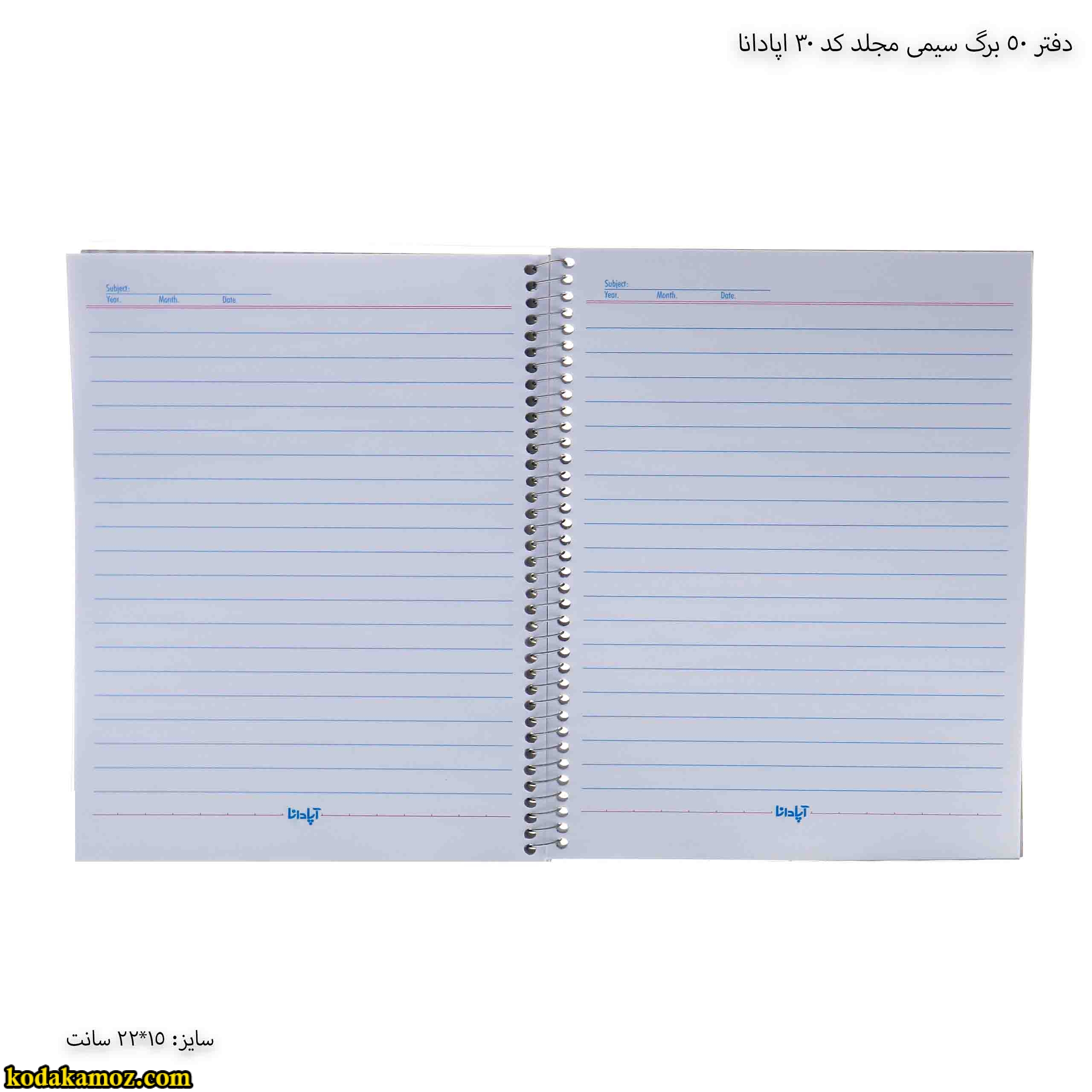 دفتر 50 برگ سیمی مجلد کد 30 اپادانا