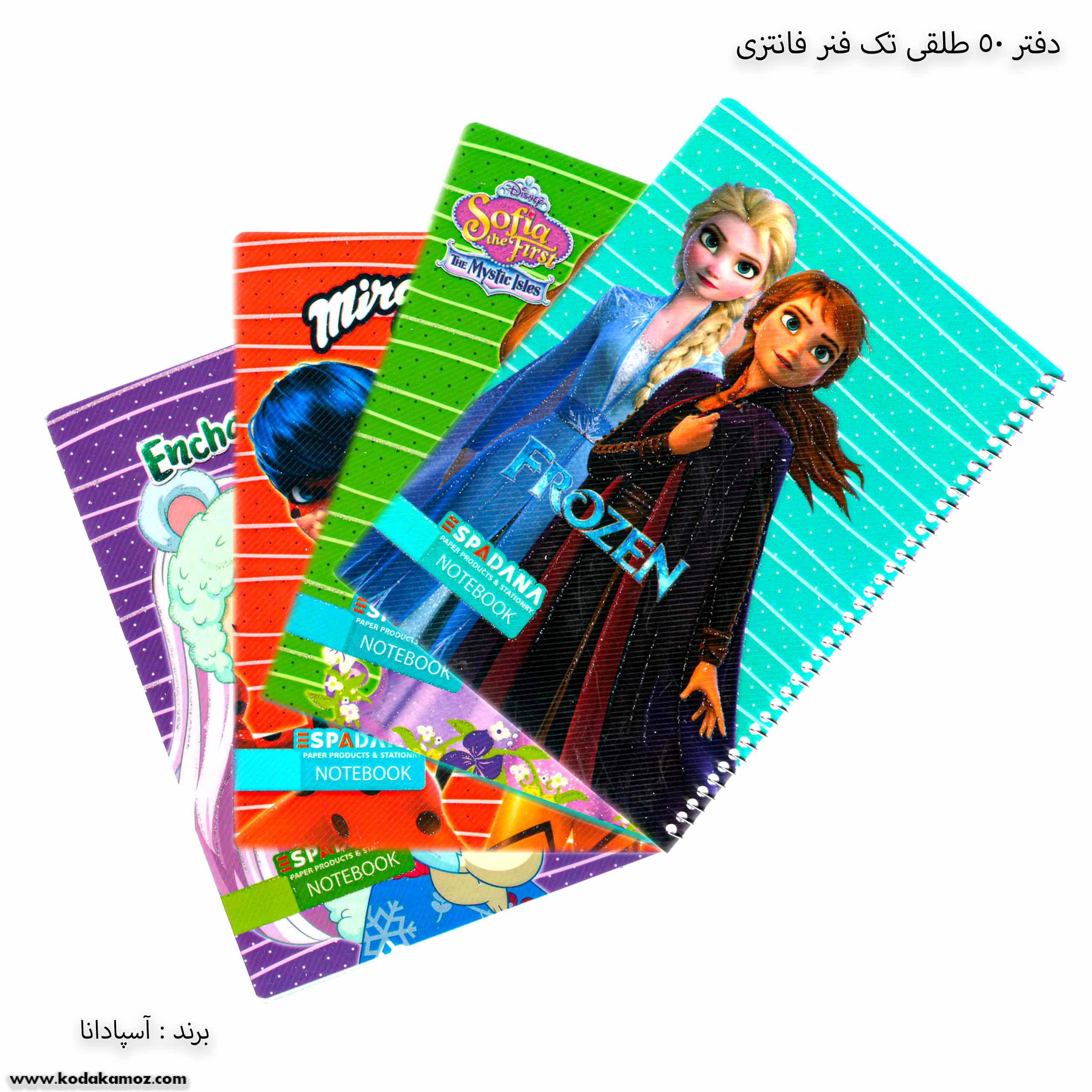 دفتر 50 برگ طلقی تک فنر فانتزی اسپادانا