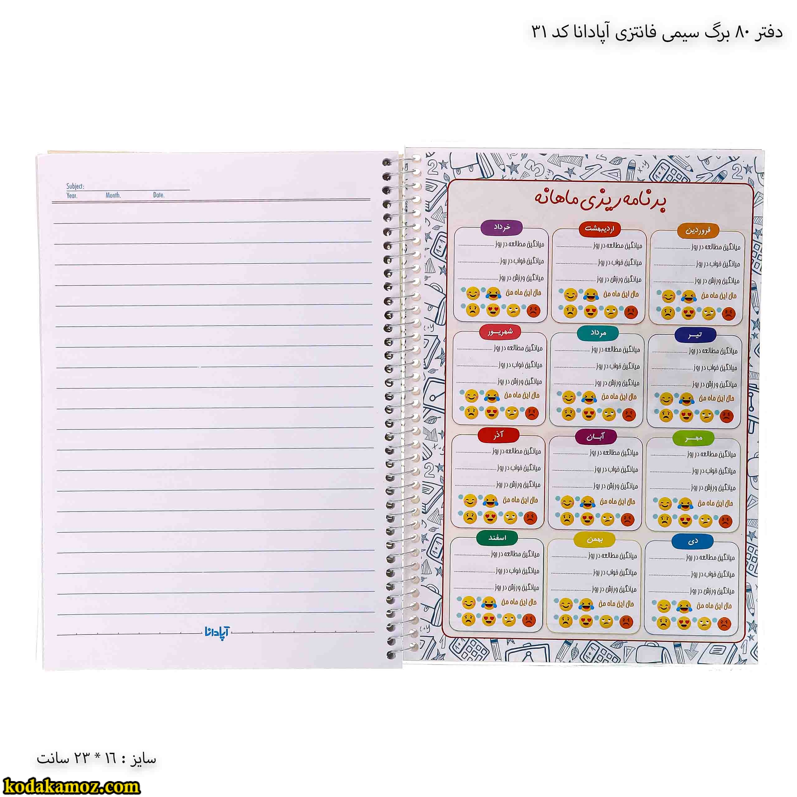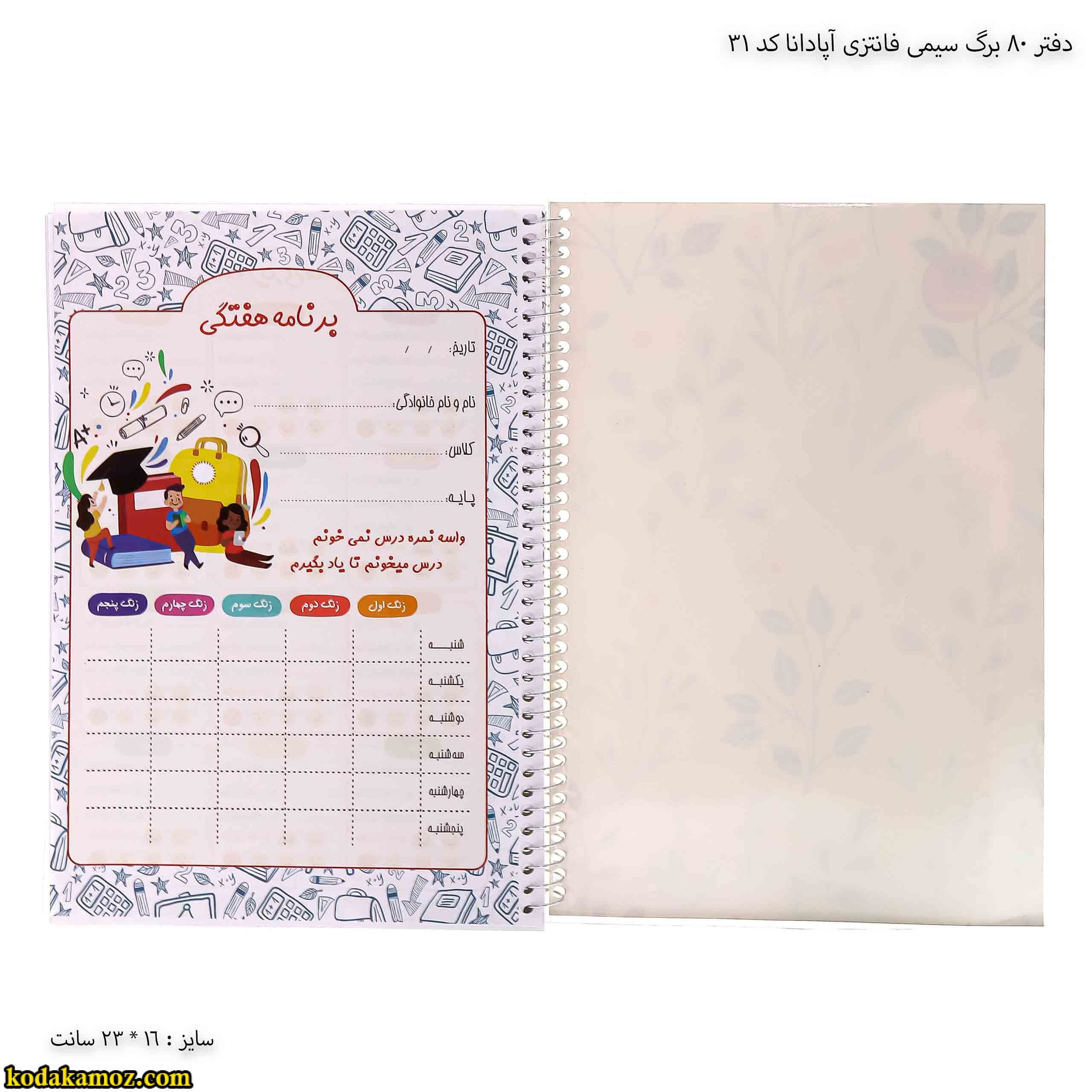 دفتر 80 برگ سیمی فانتزی آپادانا کد 31
