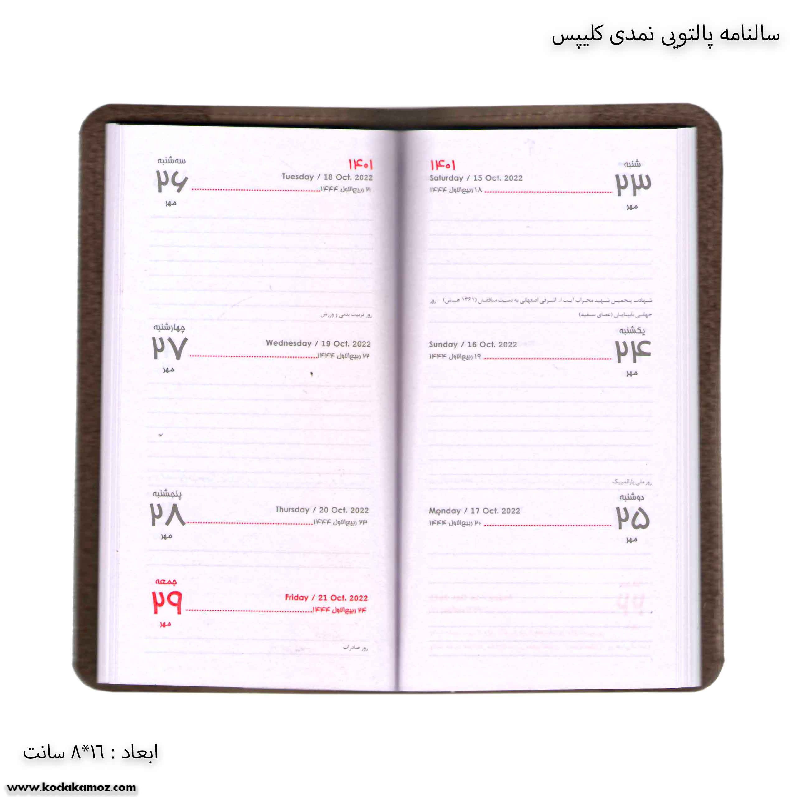 مشخصات سالنامه پالتویی نمدی کلیپس
