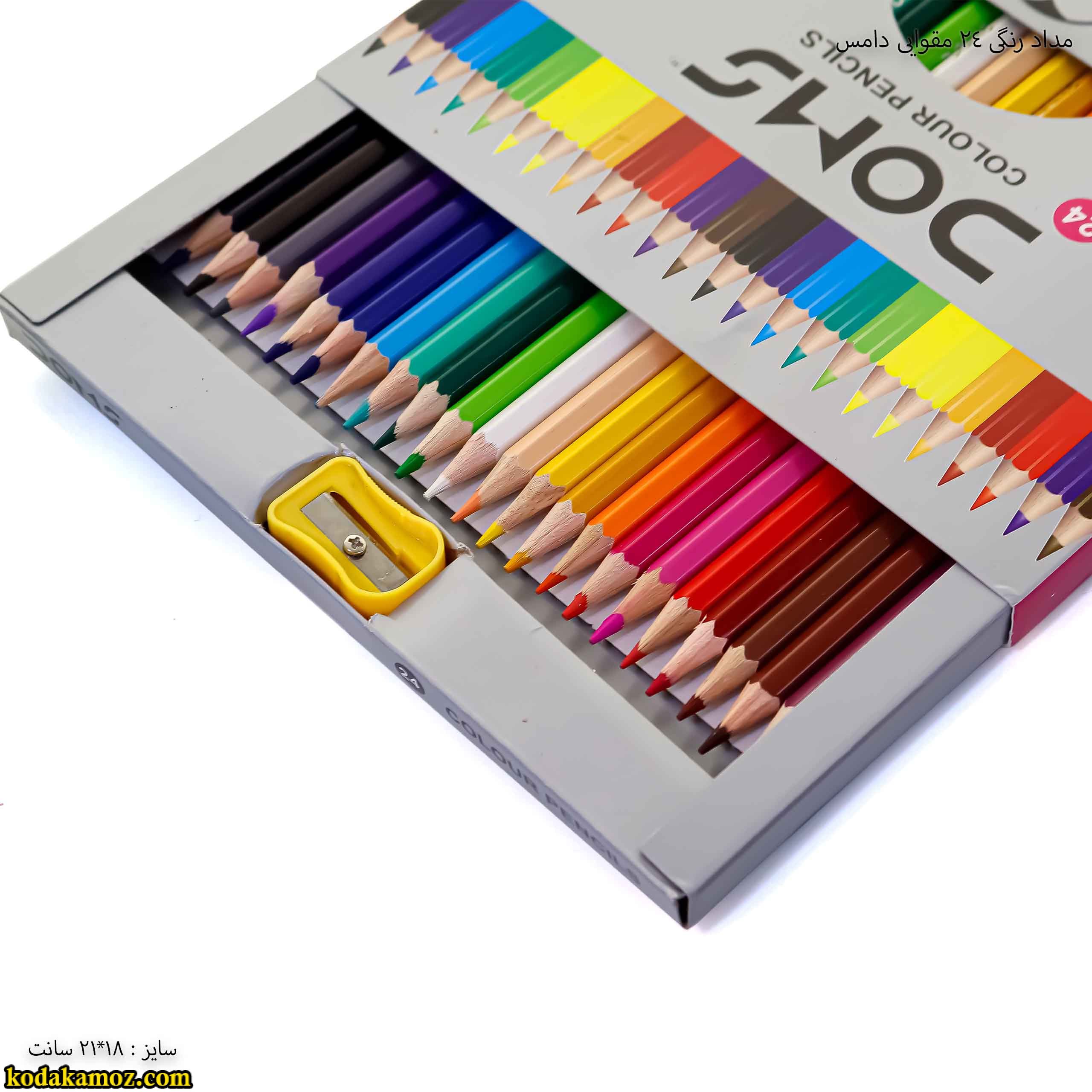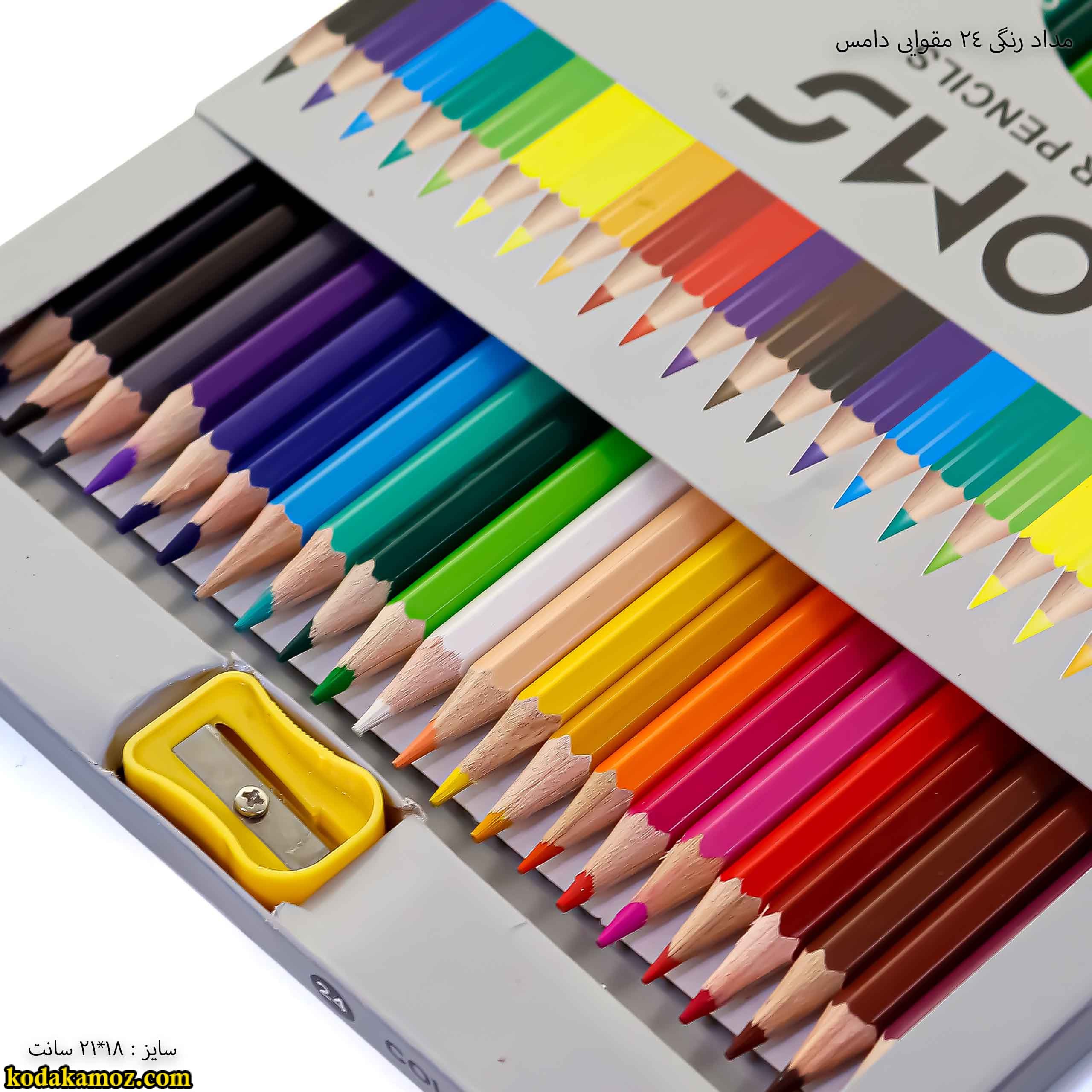 مداد رنگی 24 مقوایی دامس جنس عالی و با کیفیتی داره . سالهاس که از این مارک استفاده میکنم رنگهاش واقعی و زنده اند