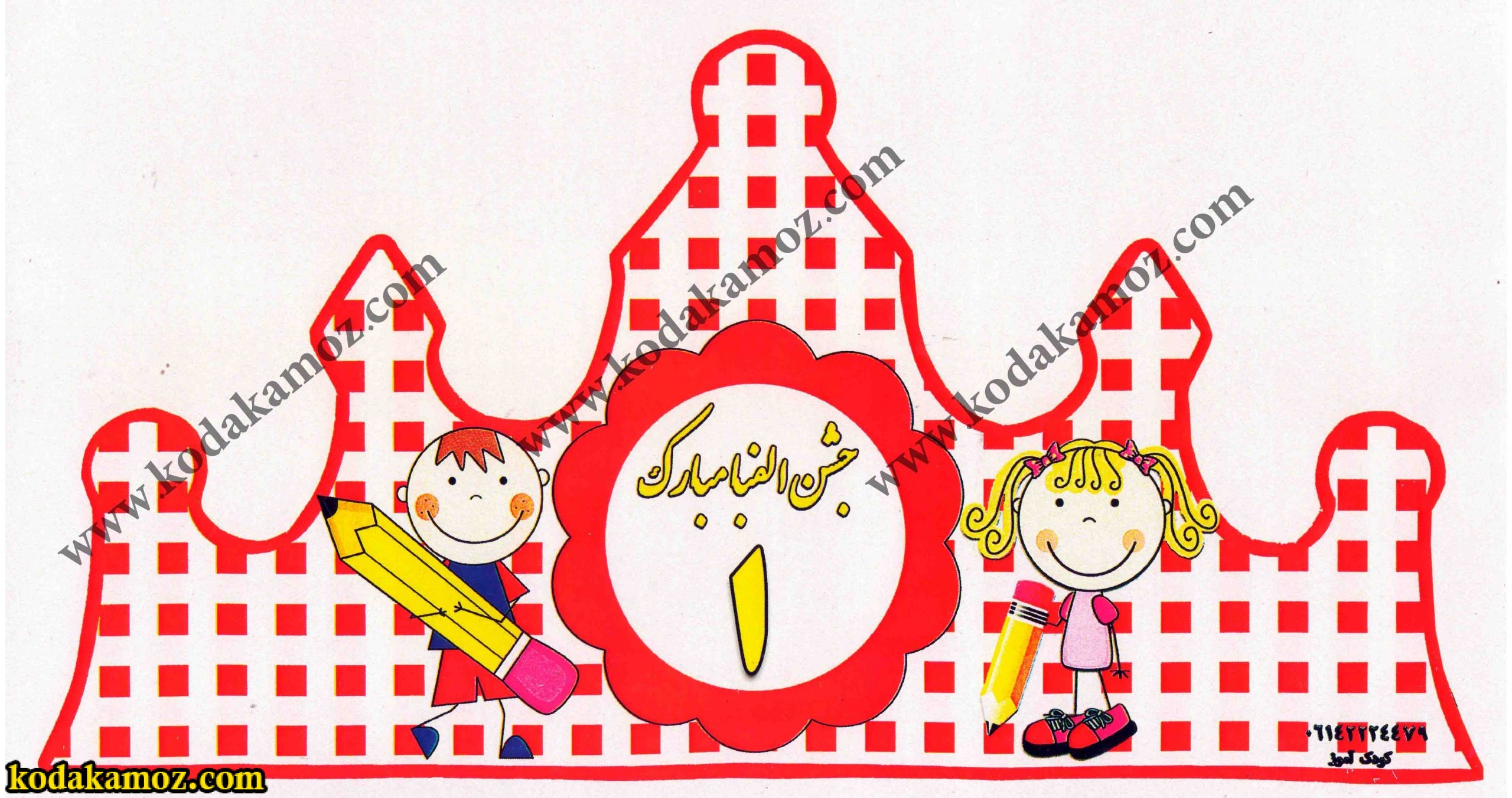 کلاه جشن الفبا را طوری طراحی کردیم تا بتوان داخل کادر آن حرف اول فامیل هر شخص رو بر آن قرار دهیم
