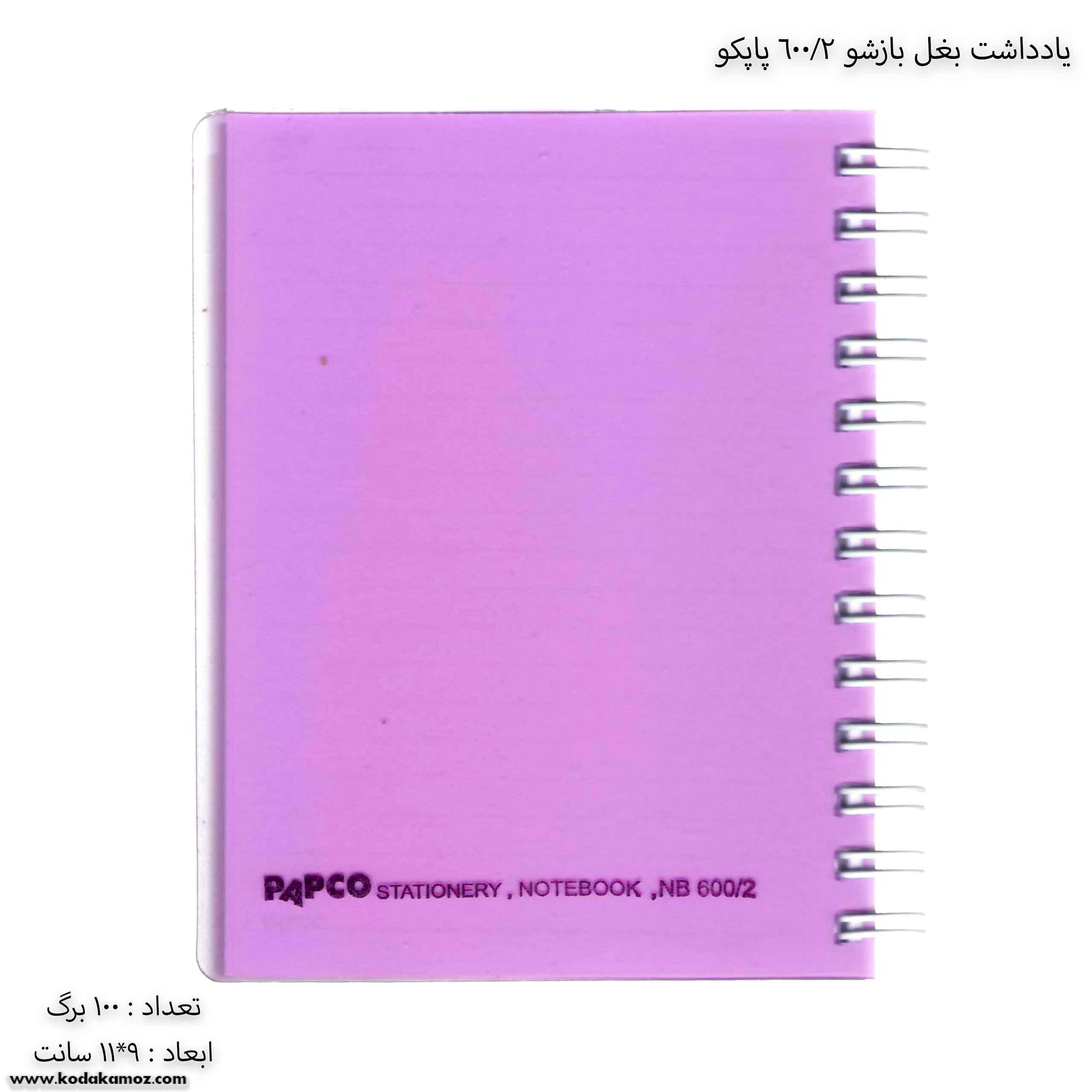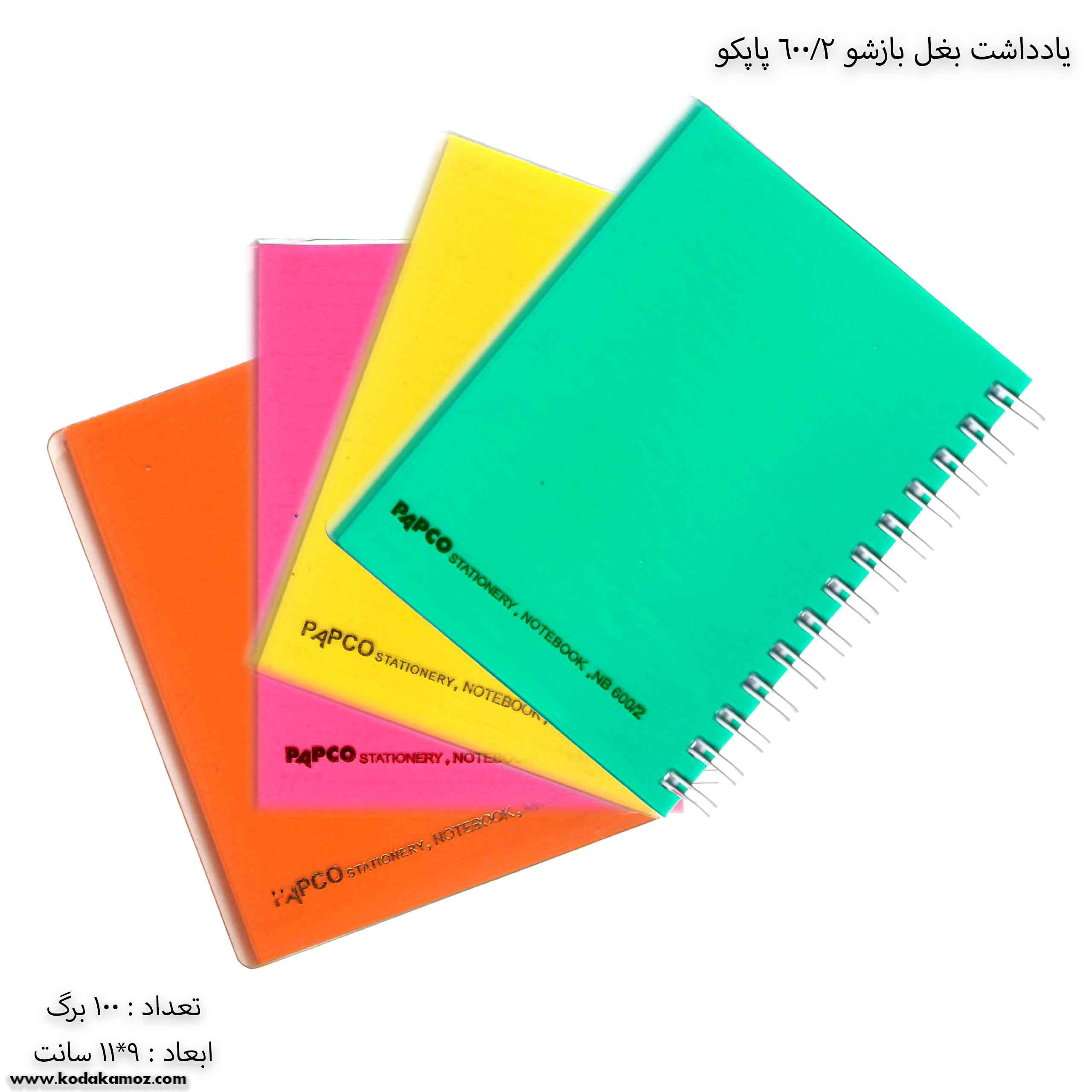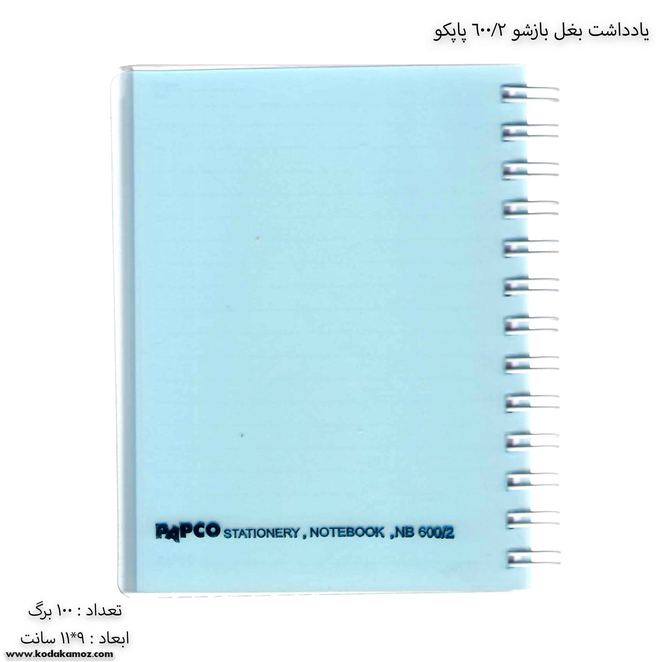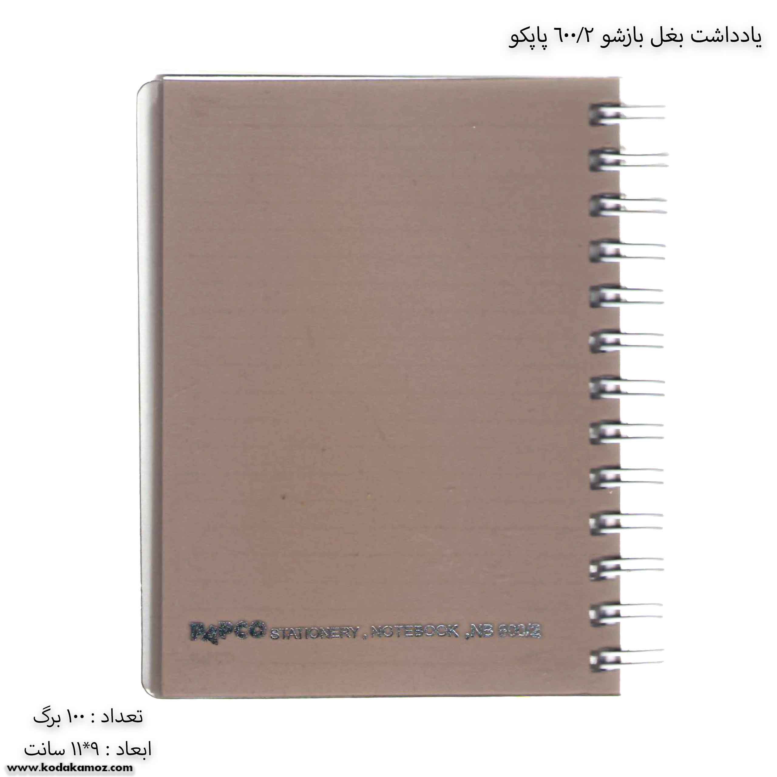 مشخصات یادداشت بغل باز شو 100 برگ 2/600