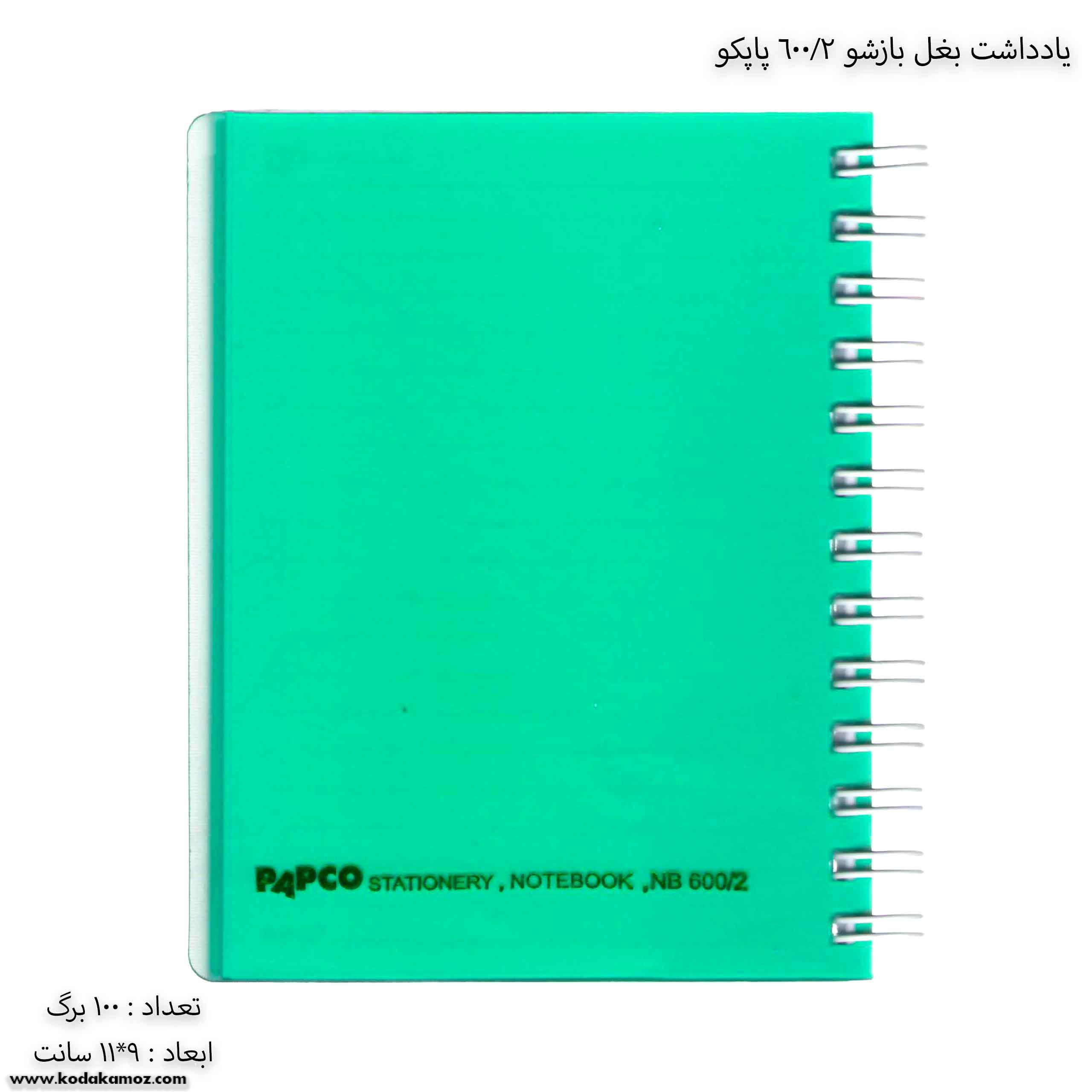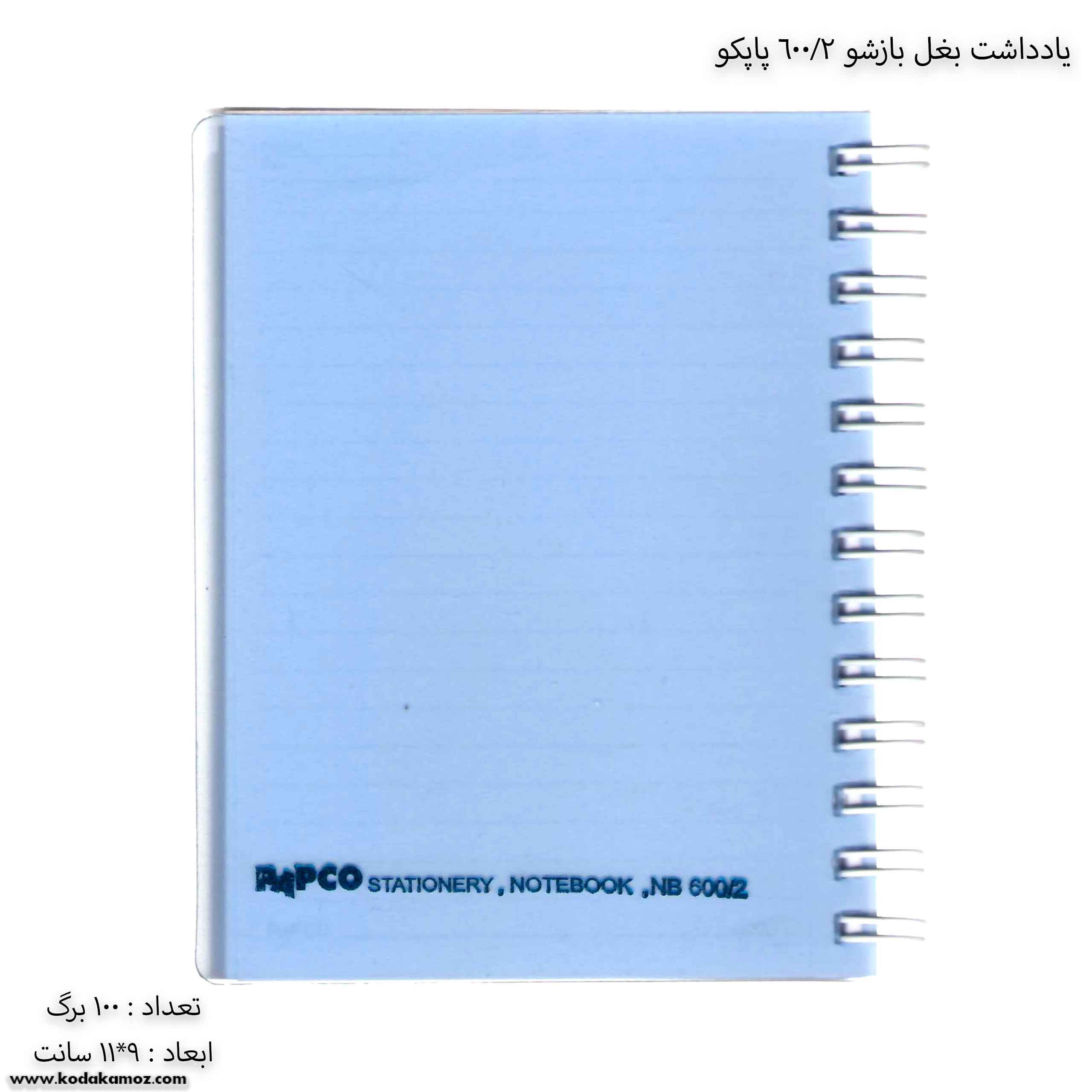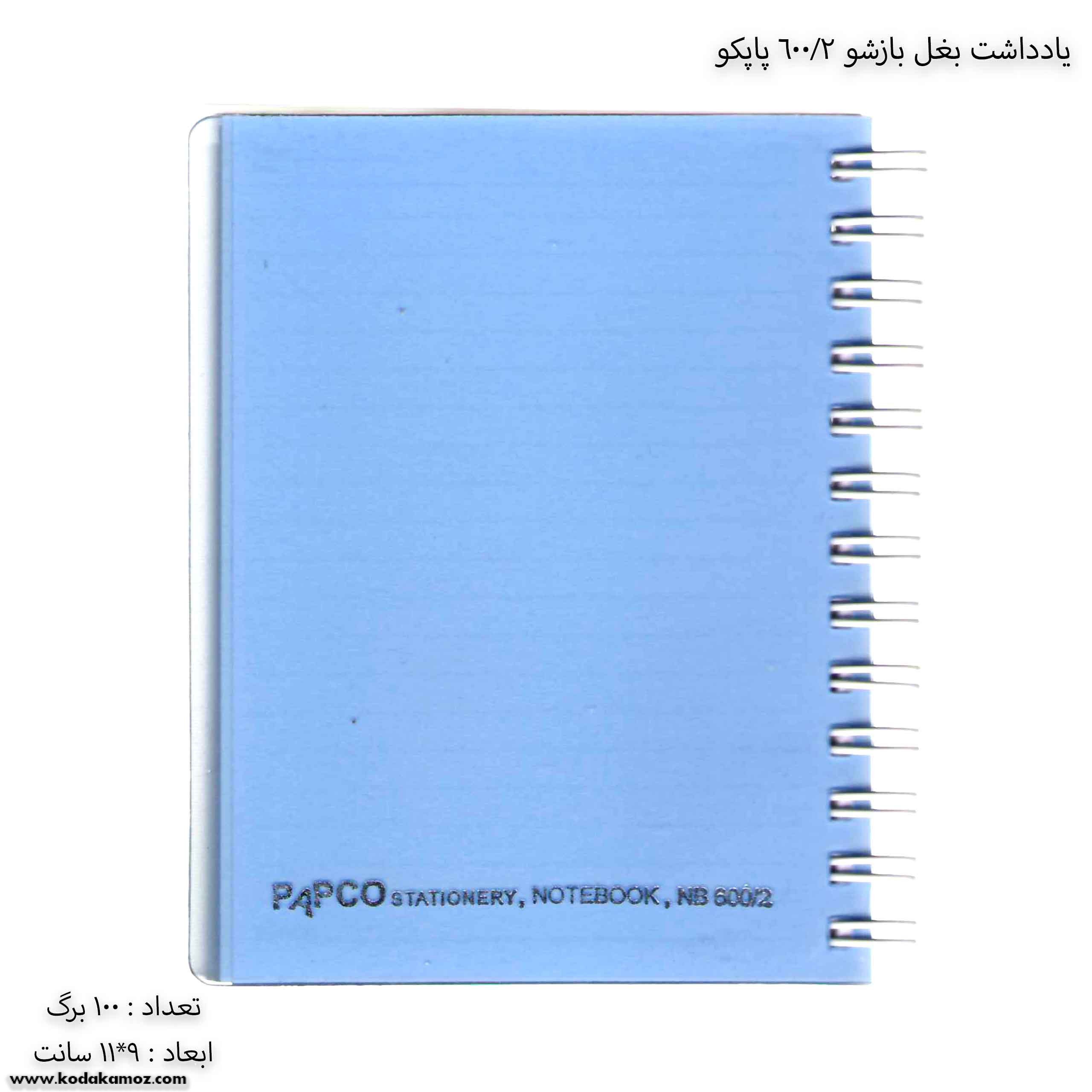 مشخصات یادداشت بغل باز شو 100 برگ 2/600