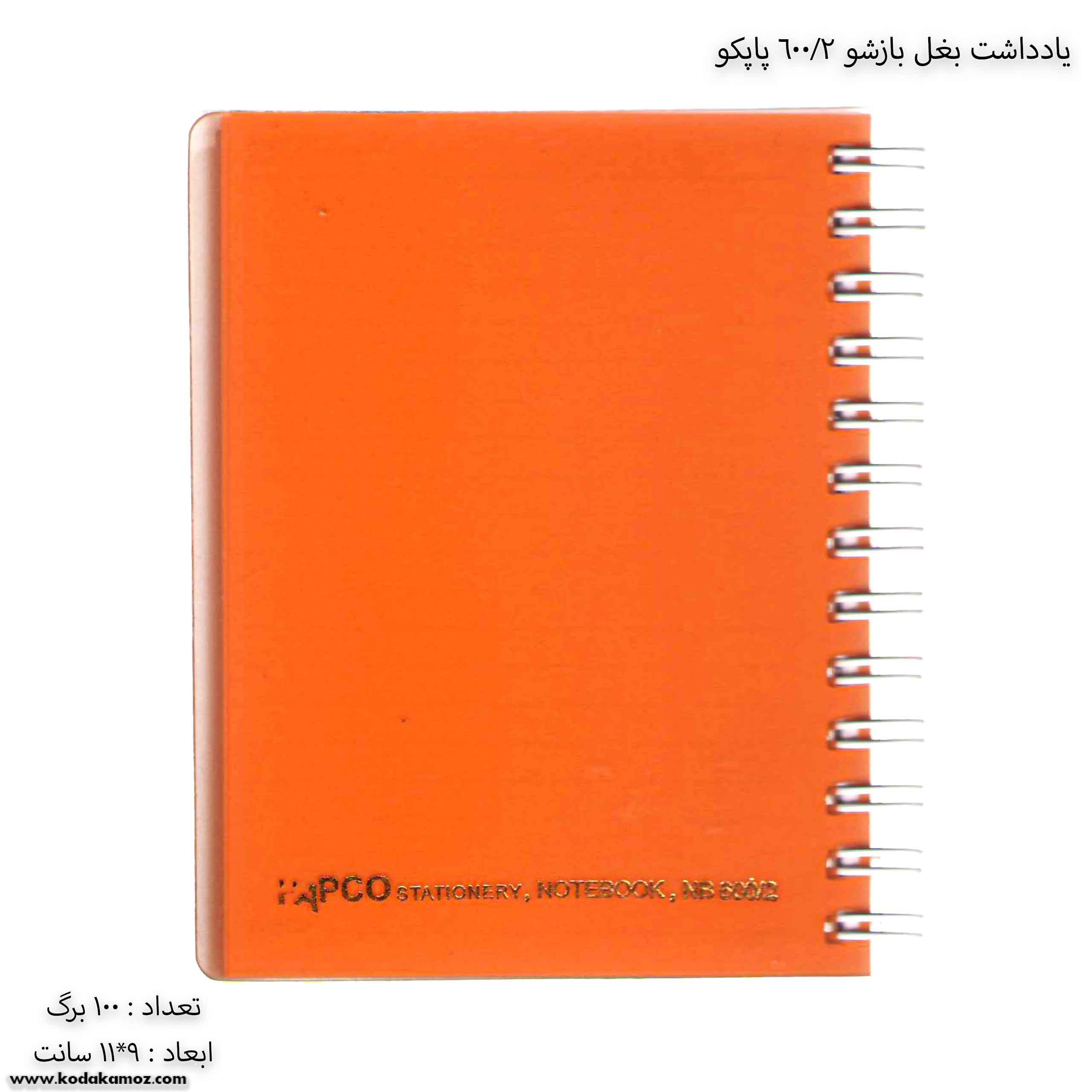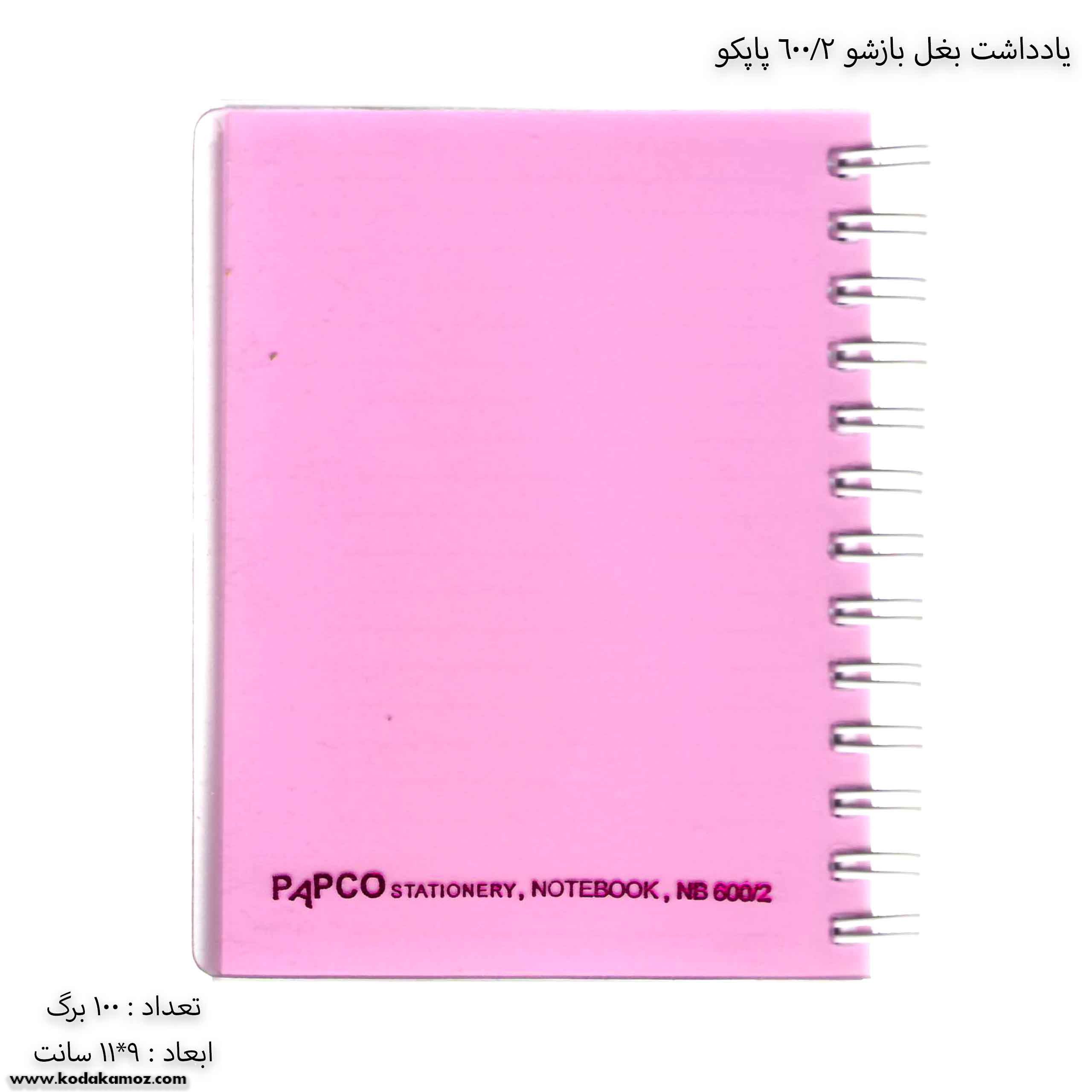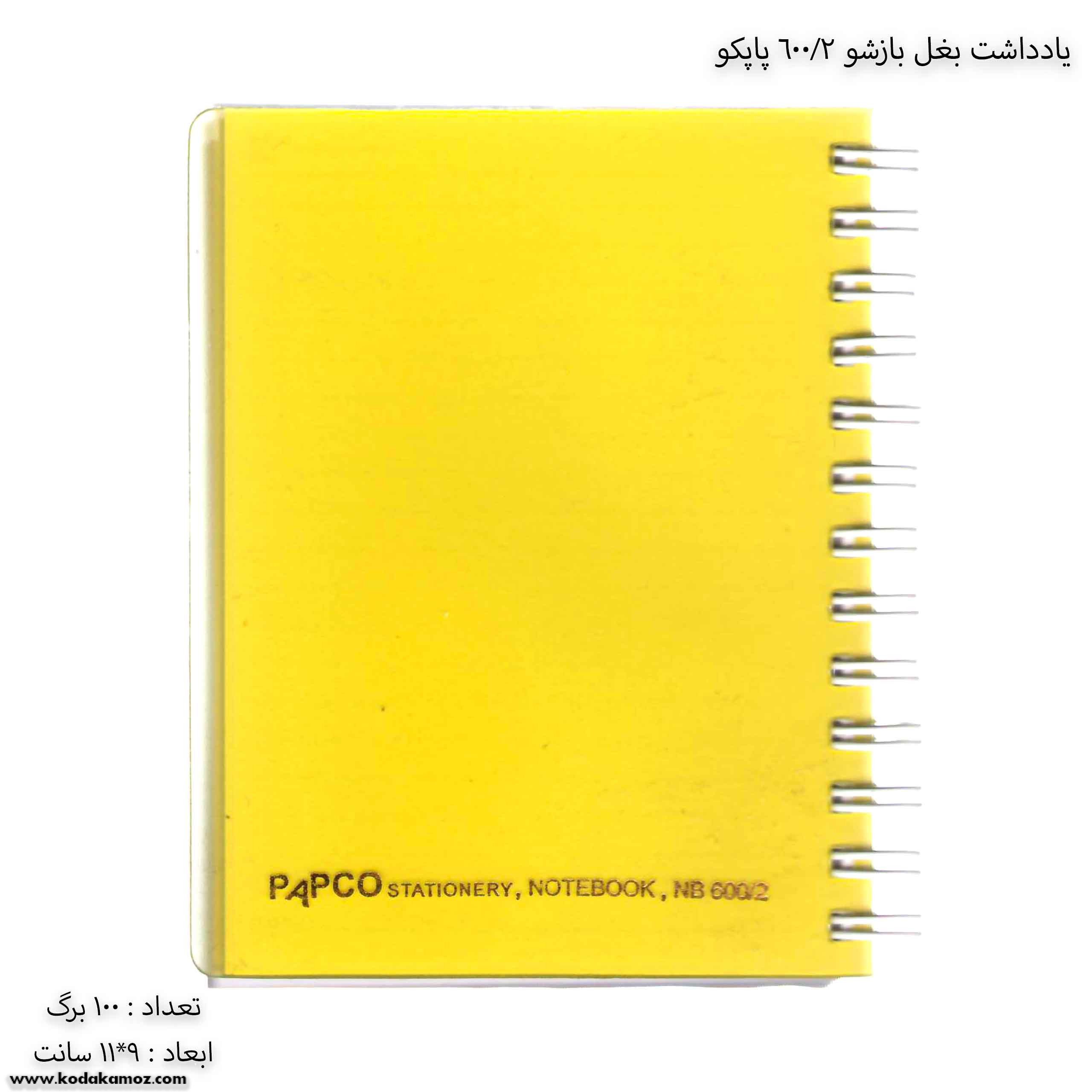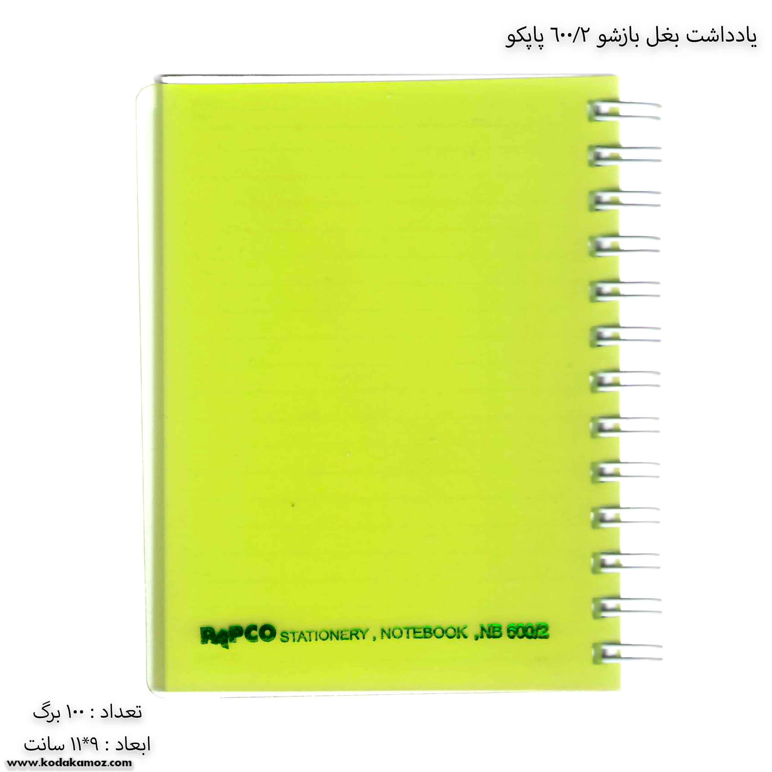 مشخصات یادداشت بغل باز شو 100 برگ 2/600