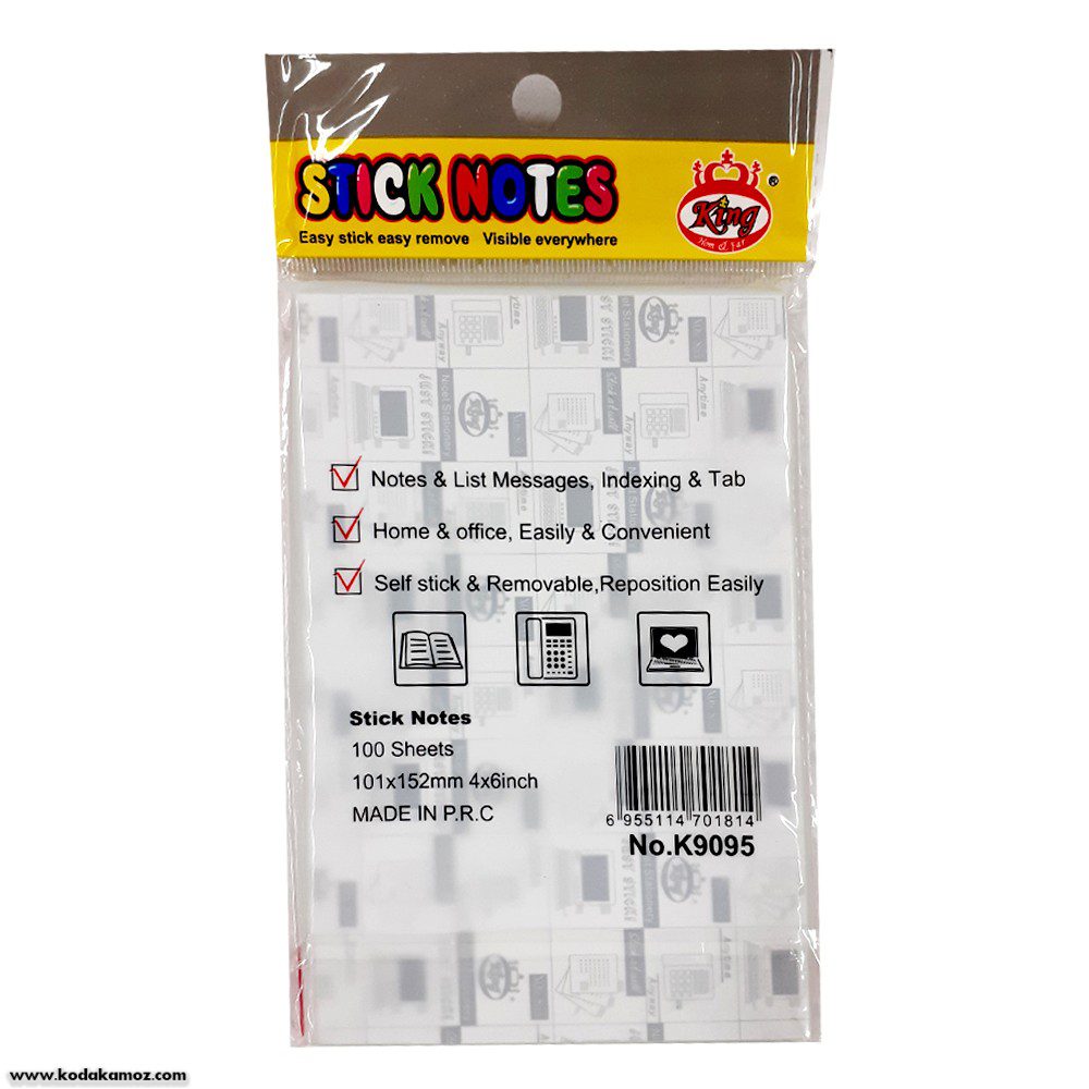یادداشت چسبی 152*101 ساده 9095 کینگ