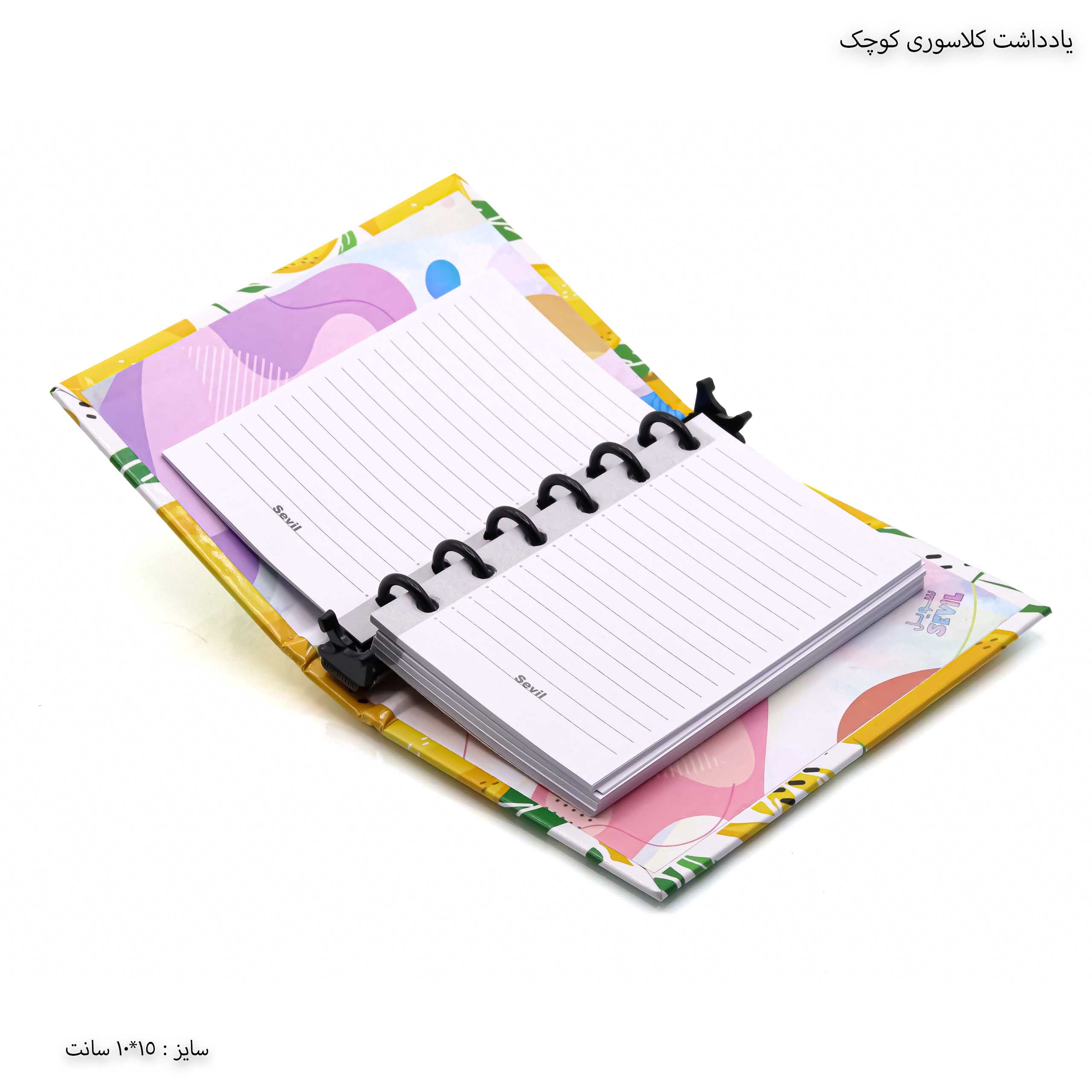 یادداشت کلاسوری کوچک سایز مناسبی برای کارای روزمره داره .جلد محکمی داره. کیفیت برگه هم خوبه
