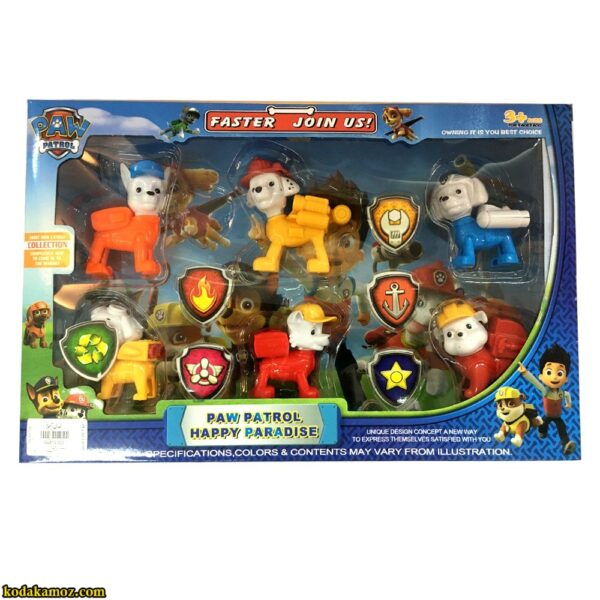 انیمیشن سگ های نگهبان پرطرفدارترین انمیشن حال حاضر در بین کودکان است ، Paw Patrol داستان پسری به اسم «رایدر» است، رایدر به همراه سگ هایش که هر کدام دارای مهارتی خاص هستند در یک برج شیشه ای در بالای جهانی متمدن زندگی می کنند. تمامی قسمت های این مجموعه جذاب دارای فرایند شش مرحله ای است 1) مسأله ای وجود دارد 2) تماس با گشت 3) پروسه جالب حرکت توله ها به سمت برج مراقبت 4) تشریح مشکل توسط رایدر و تقسیم وظایف همه در جریان مأموریت 5) حل مسأله 6) شادی تمام انیمیشن گشت پنجولی پر از ایده کمک و همکاری است و قرار است بچه های ما را برای دنیای بهتر تربیت کند. دنیایی که همه مسائل قابل حل هستند و همکاری و مدیریت (در یک کلمه عقلانیت) کلید حل مشکلات است مجموعه 8 عددی فیگورهای Paw Patrol شامل رایدر و هفت سگ نگهبان مکانیکی است ، روی سینه سگ ها دکمه ای وجود دارد که با فشار آن بال های آنها باز میشود . مجموعه سگ های نگهبان هدیه ای فوق العاده برای کودکان خواهد بود.