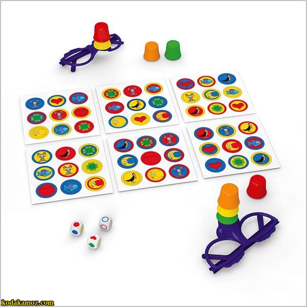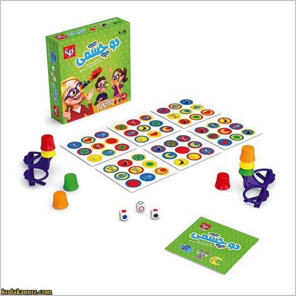 بازی دوچشمی 4 نفره بازی خیلی خوبیه برای افزایش تمرکز عالیه. هر بازیکن یک عینک دارد که روی آن لیوان هایی رنگی نصب می شود. با انداختن سه تاس که روی یکی رنگ دور شکل، یکی دیگر رنگ داخل شکل و در تاس آخری طرح شکل نشان داده می شود. هر فردی که زودتر آن ترکیب (شکل ترکیبی) را پیدا کند، یک لیوان ازش کم می شود و اگر کسی اشتباه گفته باشد، به او منتقل می شود. برنده ی بازی کسی است که زودتر لیوان هایش تمام شود. (هر کس در ابتدای بازی 5 لیوان دارد.)