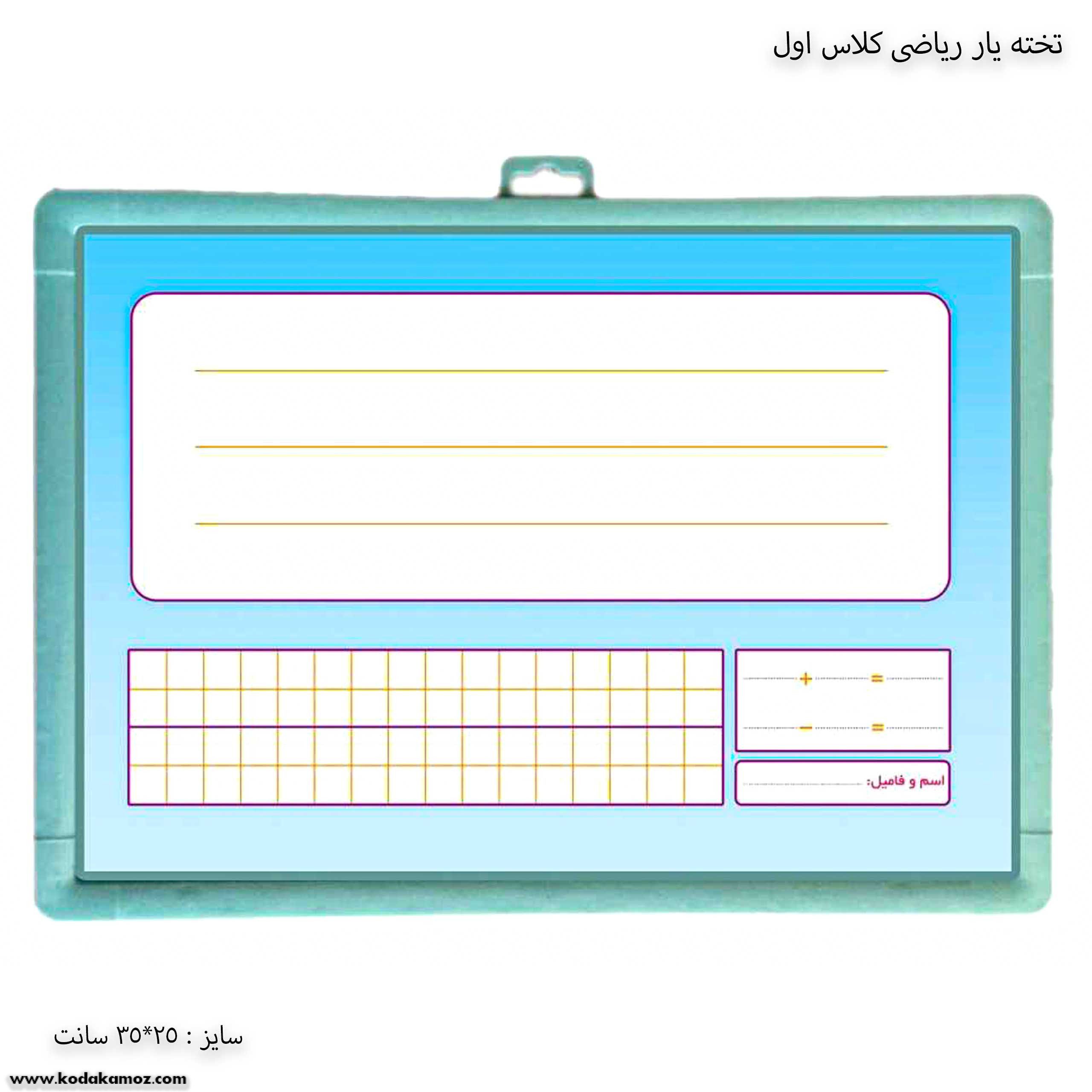 تخته یار ریاضی کلاس اول  یک تخته وایت‌بوردآموزشی است که روی دو طرف آن تقریباً تمامی جداول و الگوهایی که برای دانش‌آموزان کلاس اول ابتدایی لازم است، از جمله یک محور اعداد، جدول اعداد ۱ تا ۱۰۰، جدول ارزش مکانی یکی و ده‌تایی، تساوی جمع و تفریق و تصویر یک ساعت بدون عقربه و دارای ارقام ساعت‌شمار و دقیقه‌شمار برای آموزش ساعت وجود دارد.