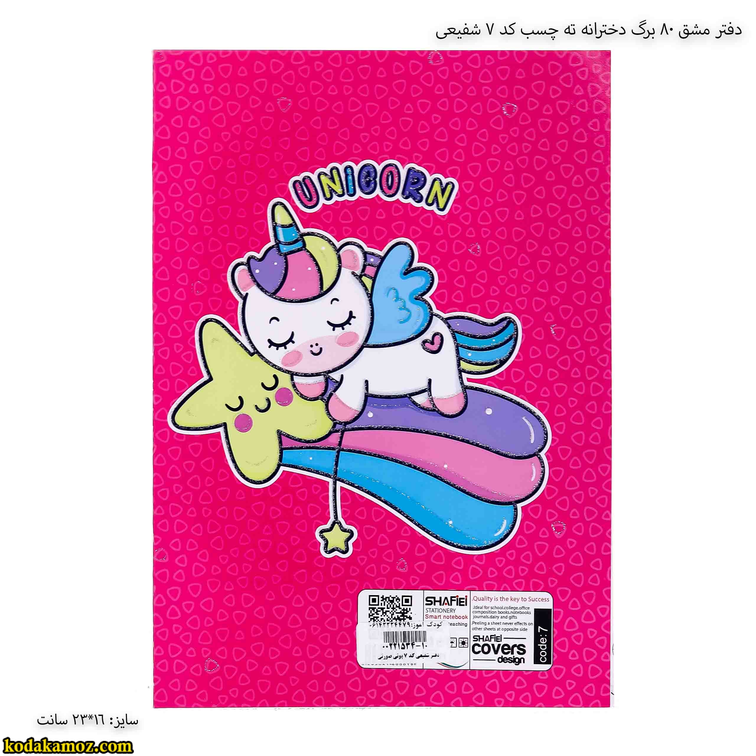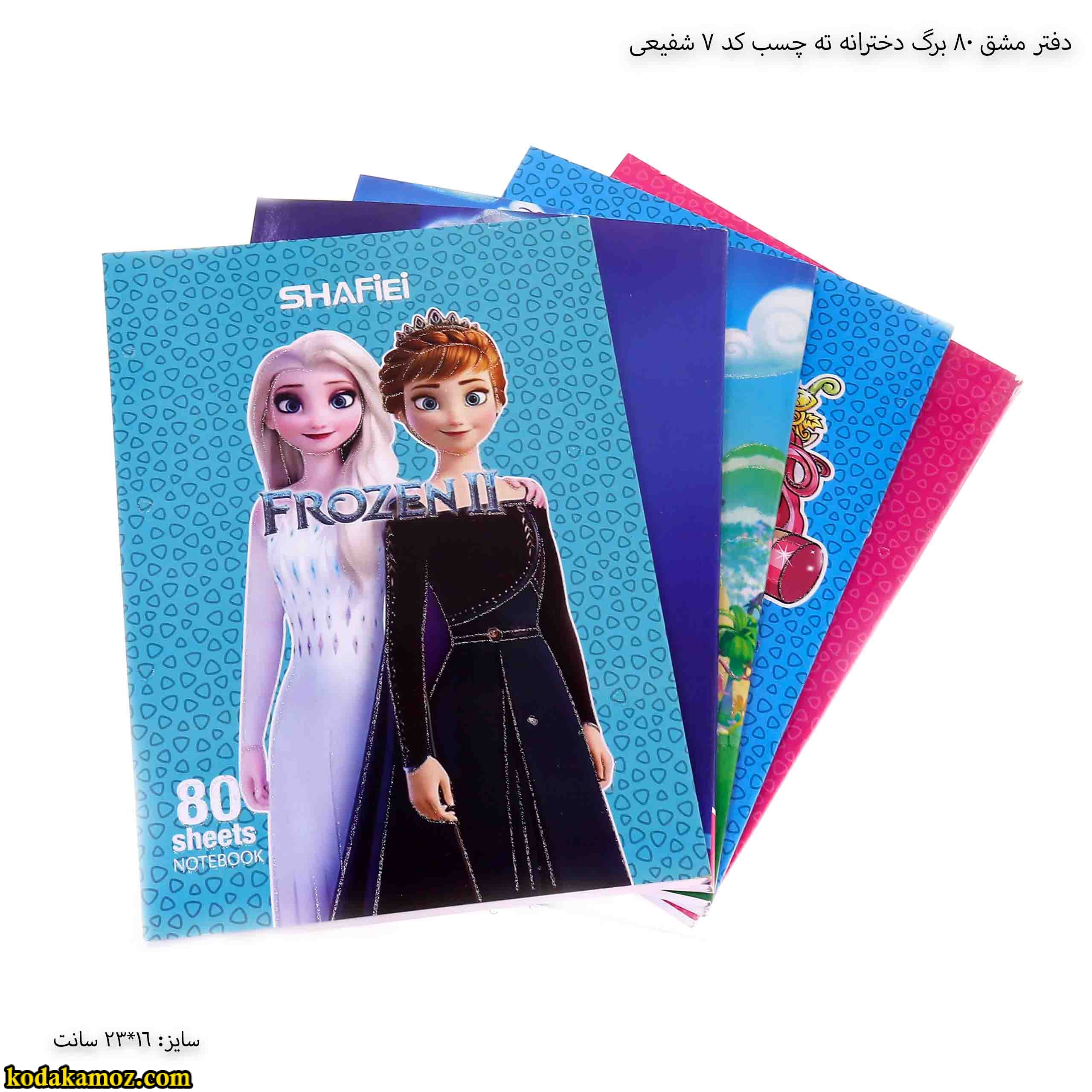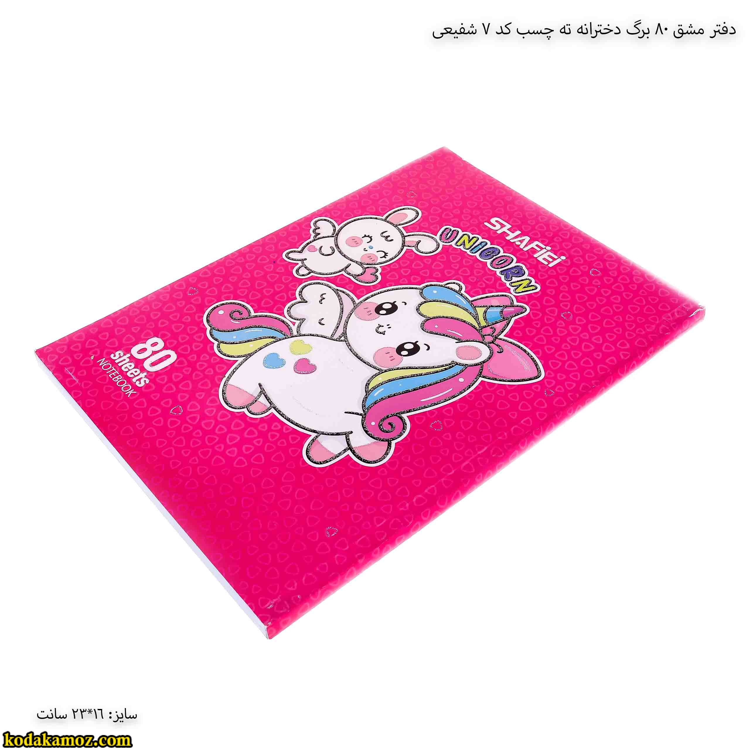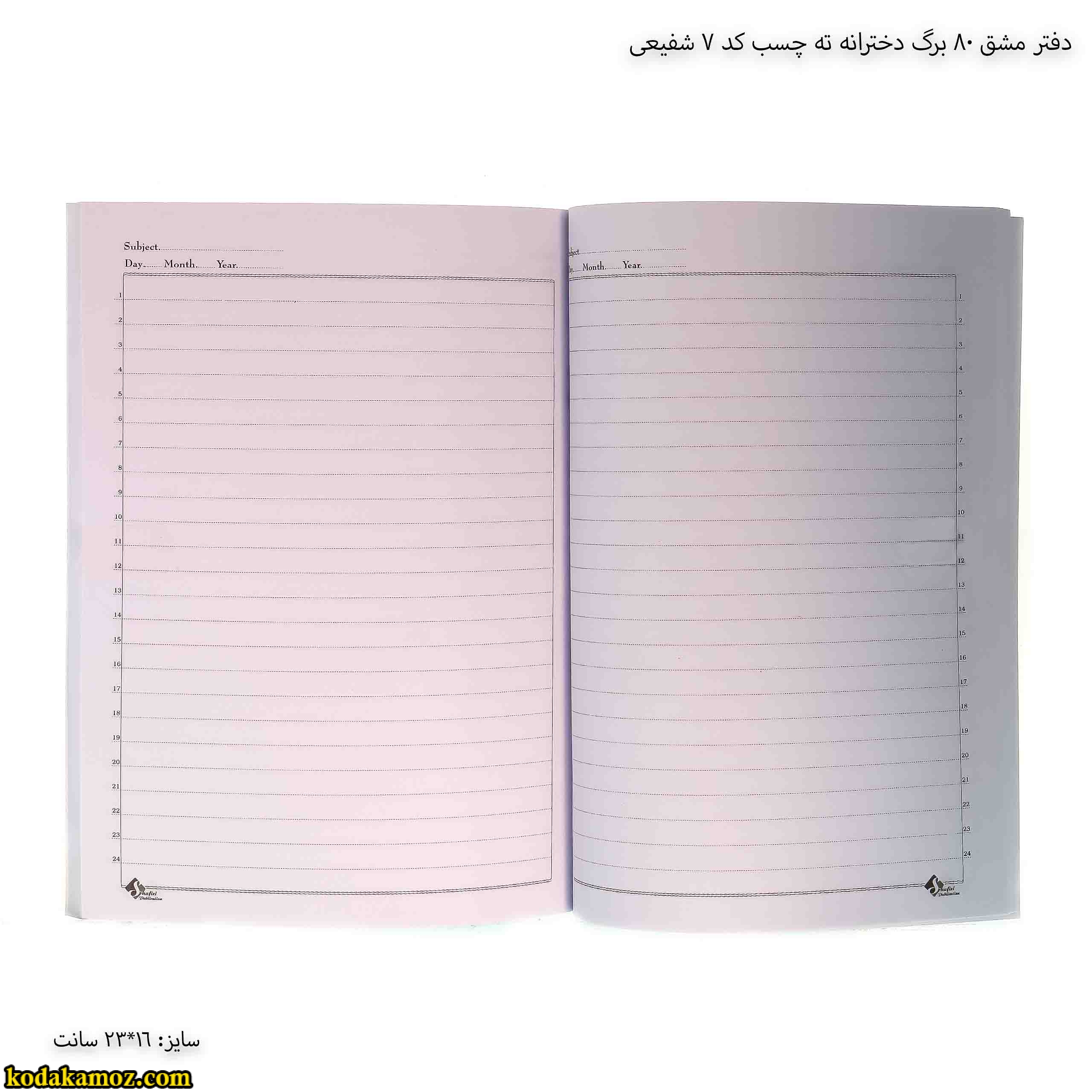 دفتر مشق 80 برگ دخترانه ته چسب کد 7 شفیعی