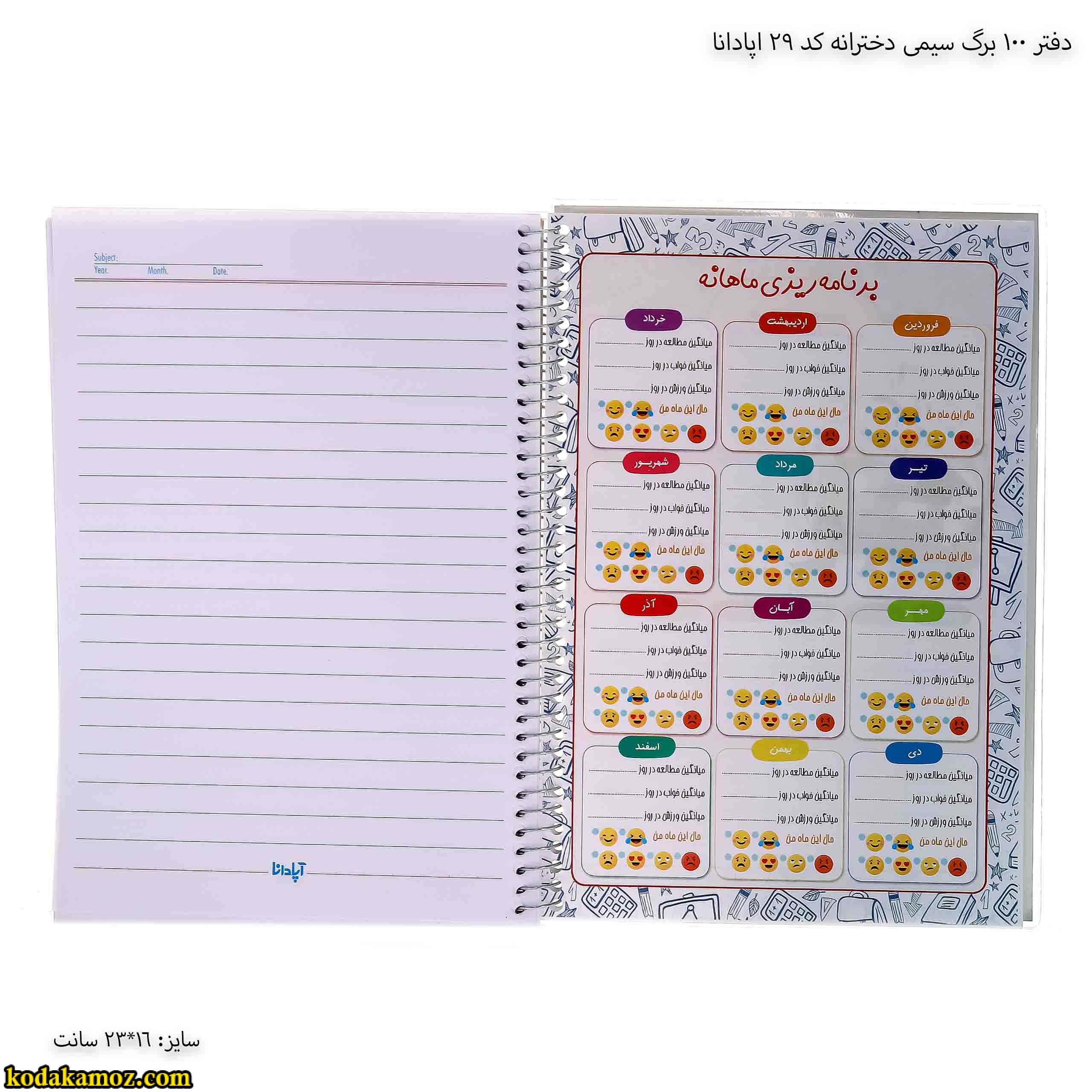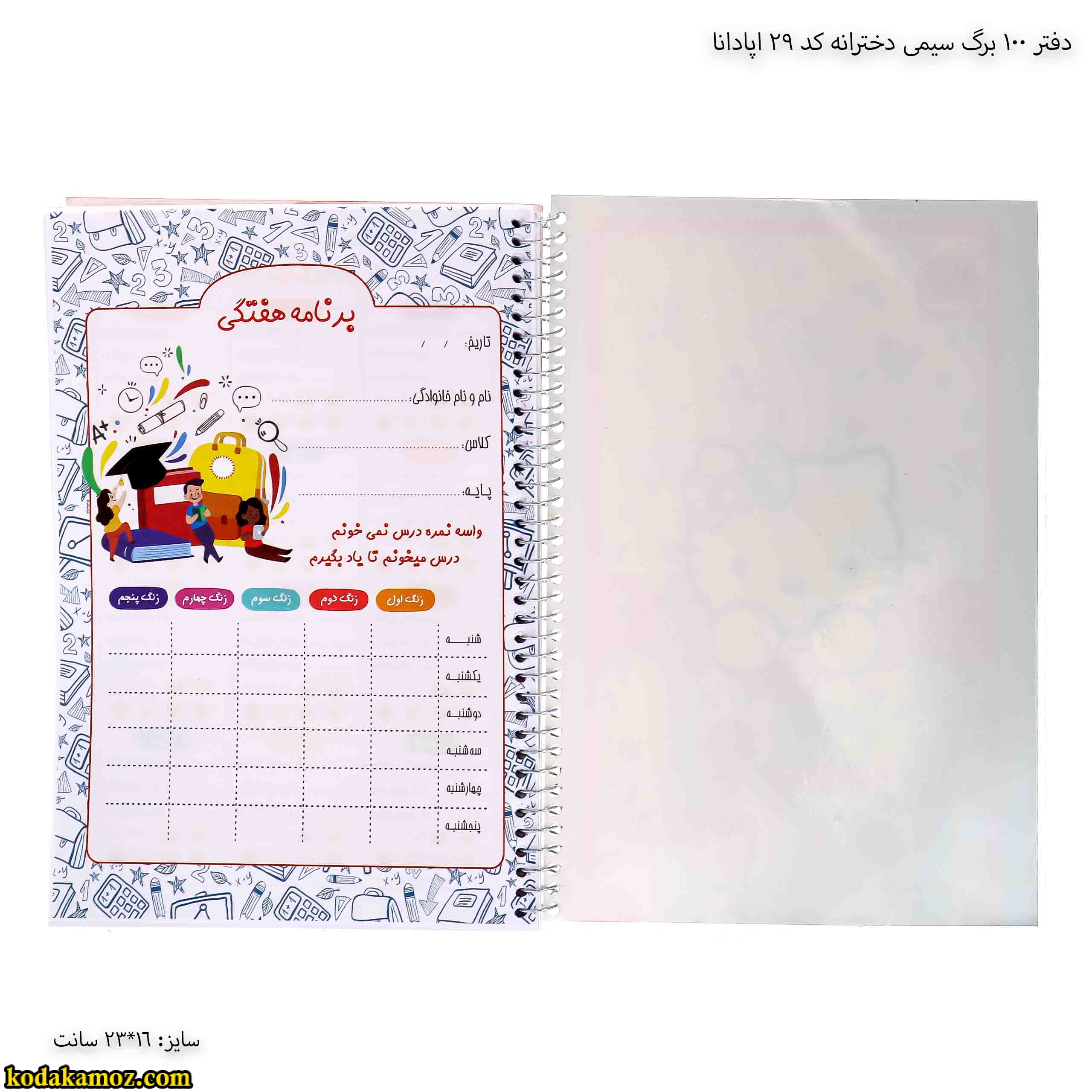 دفتر 100 برگ سیمی دخترانه کد 29 اپادانا