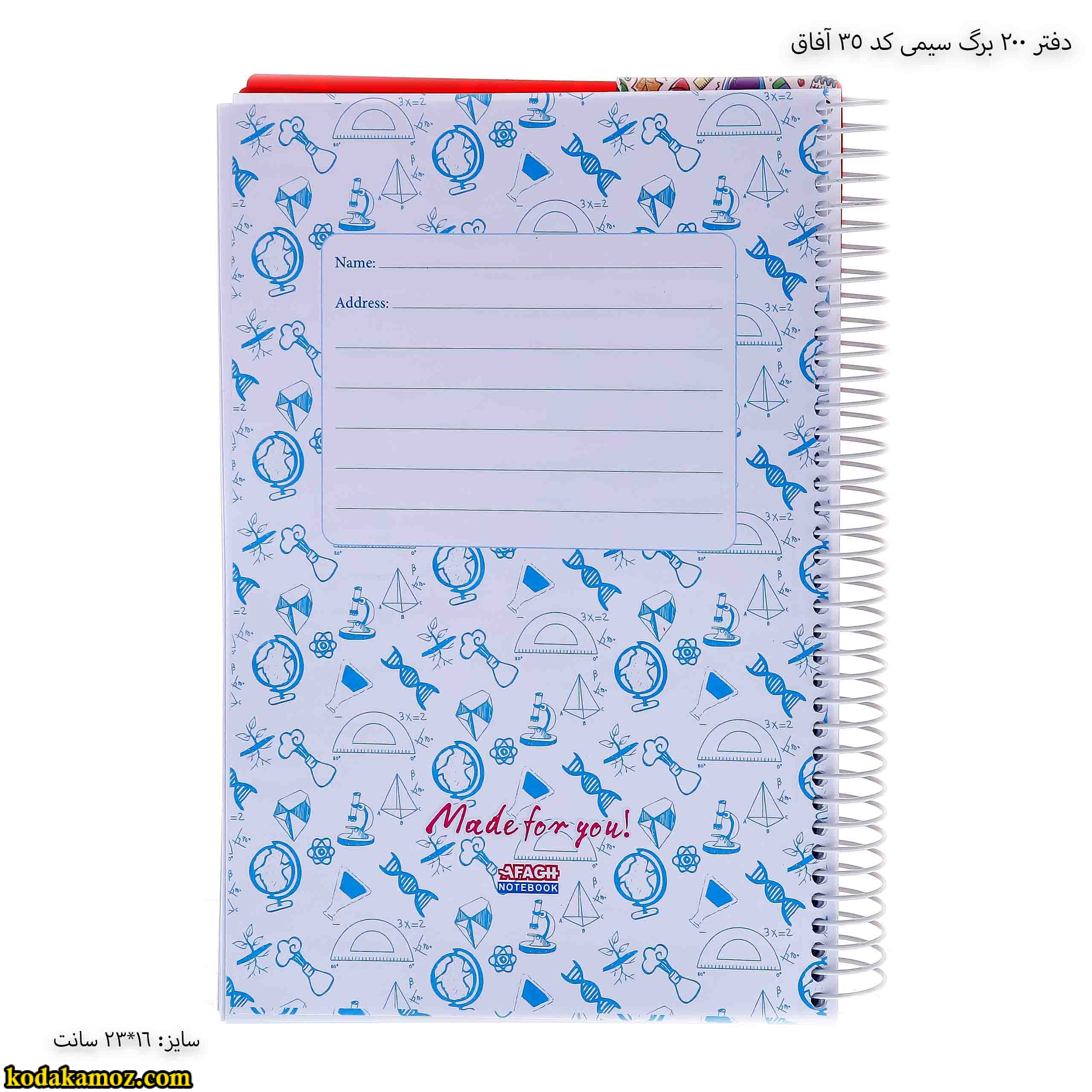 دفتر 200 برگ سیمی کد 35 آفاق
