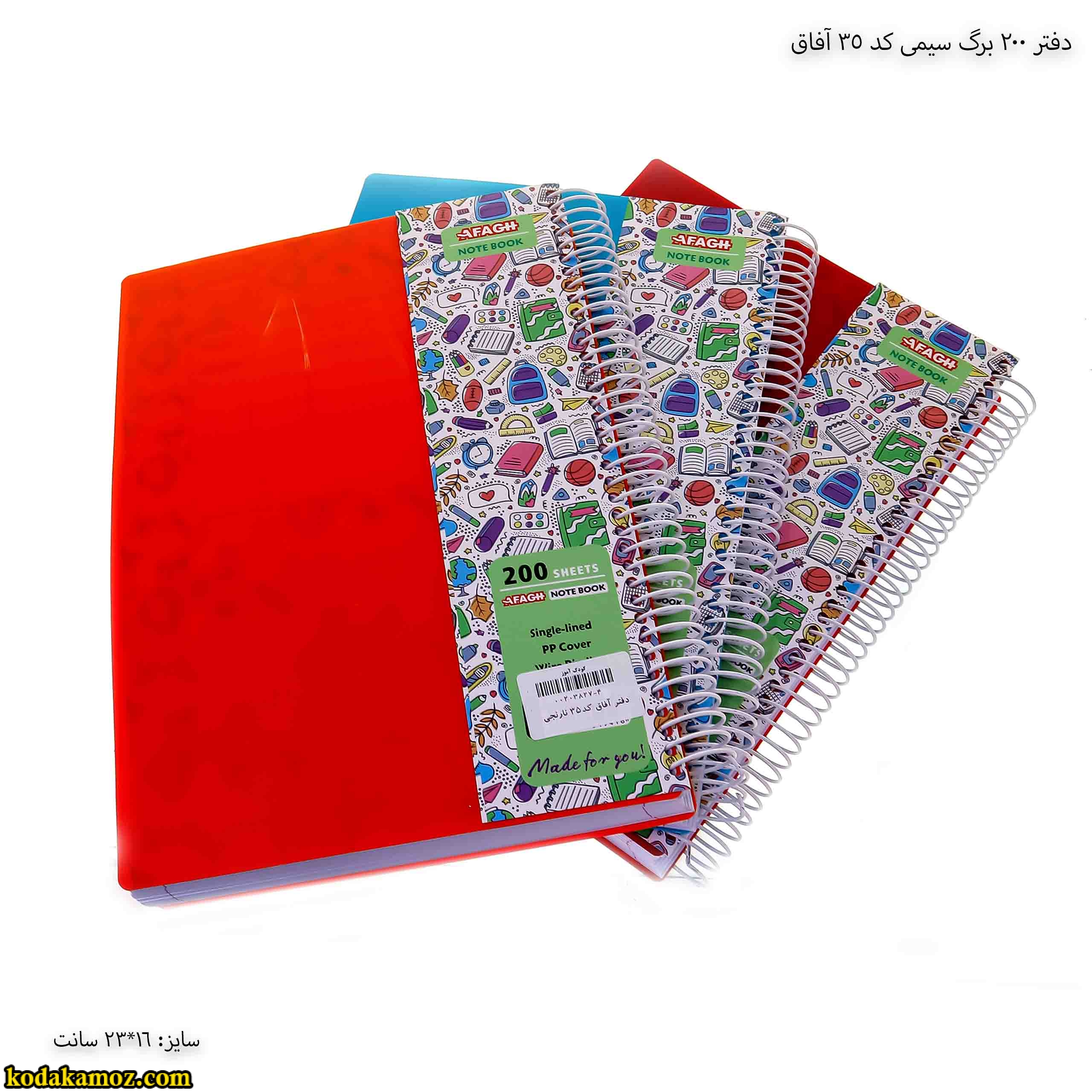 دفتر 200 برگ سیمی کد 35 آفاق خیلی قشنگ اما اگر کمی ارزان تر میشود خیلی بهتر بود