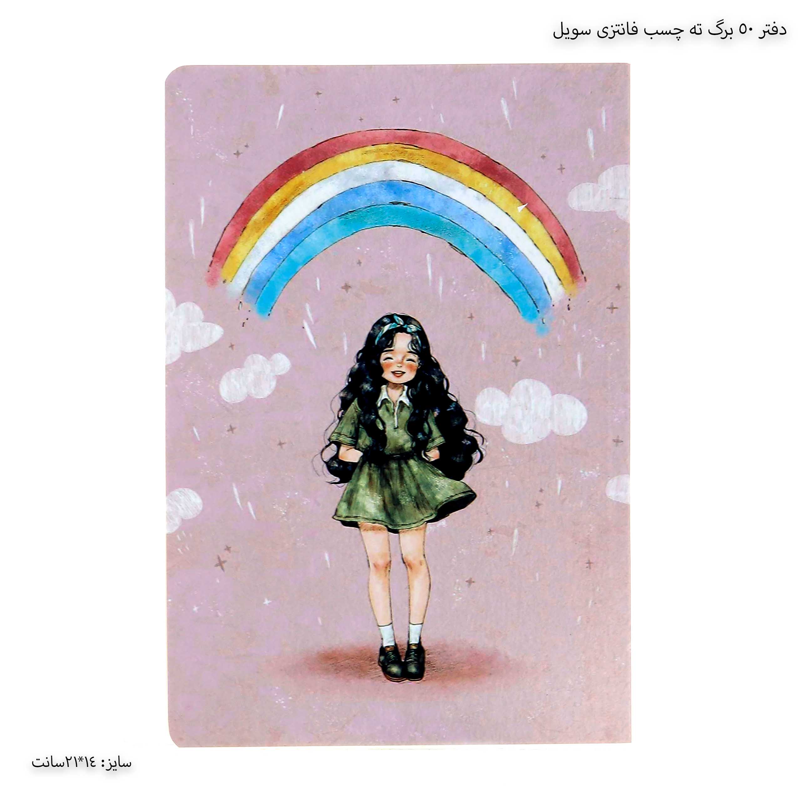 دفتر 50 برگ ته چسب فانتزی طرح دختر سویل رنگ کاغذش ی جوریه