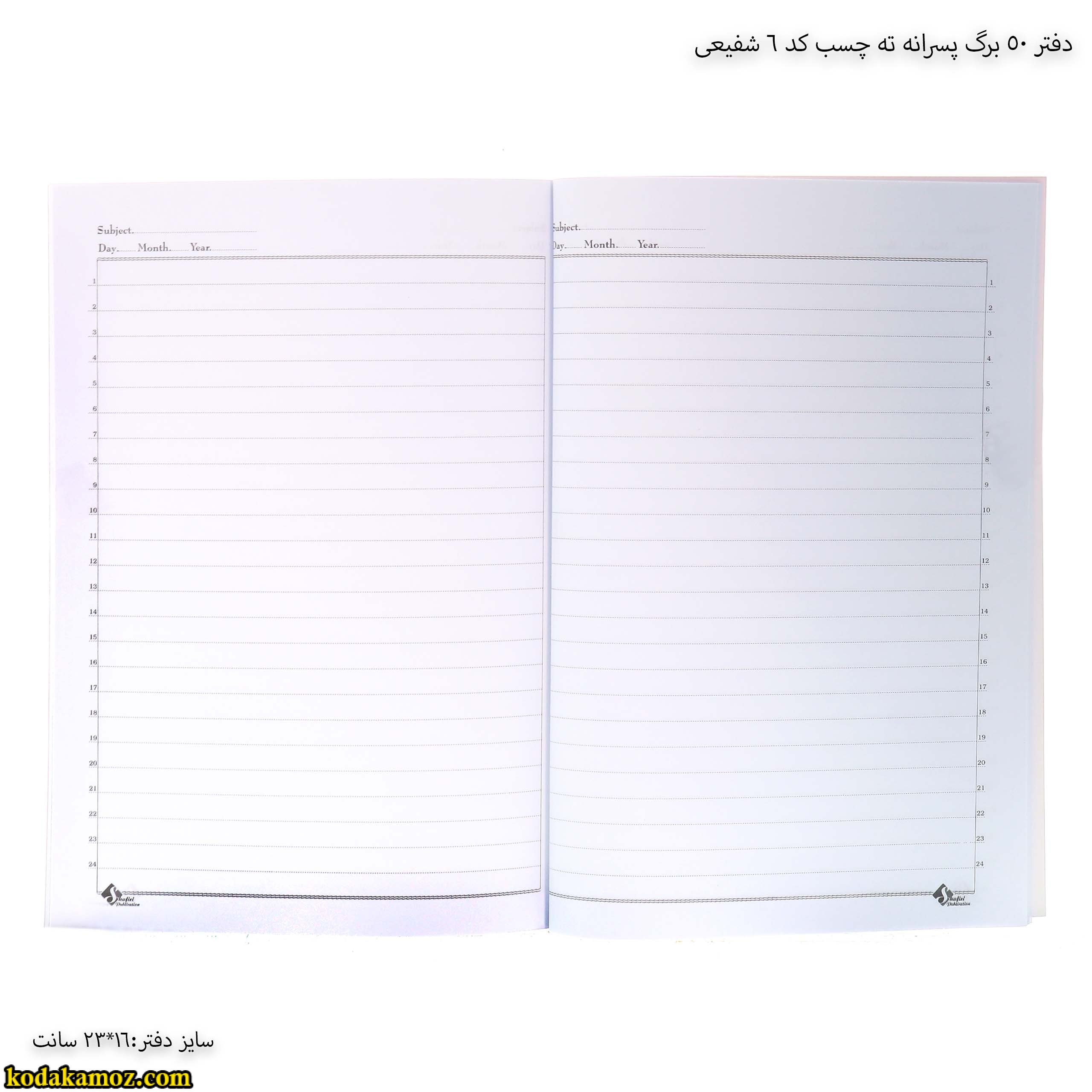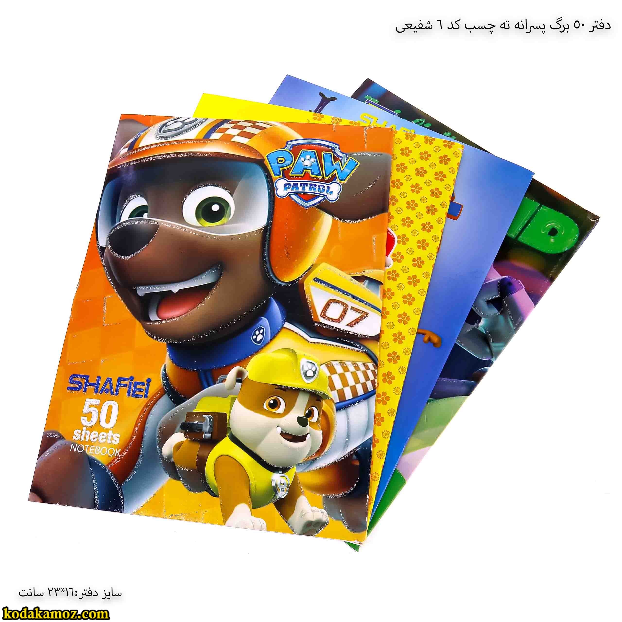 دفتر 50 برگ پسرانه ته چسب کد 6 شفیعی
