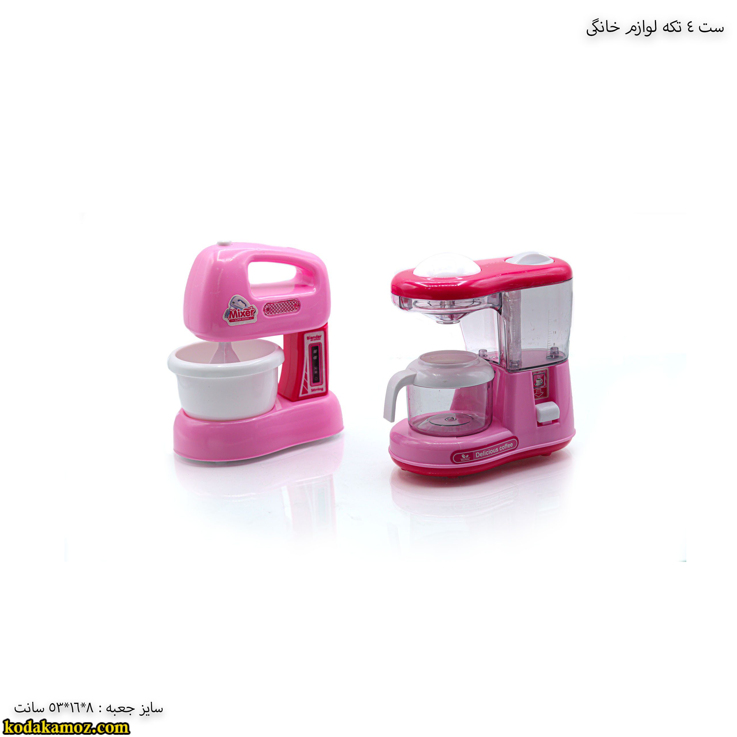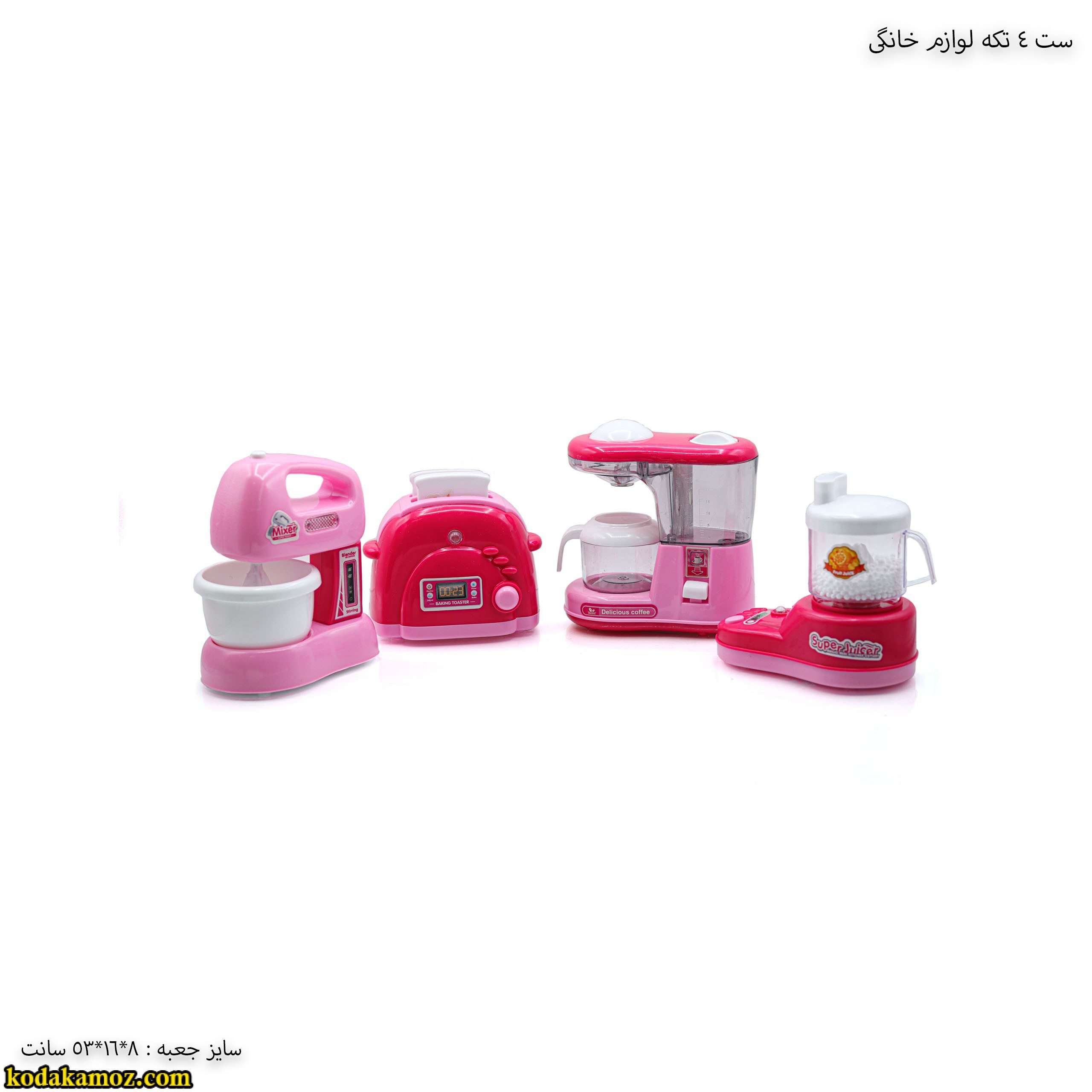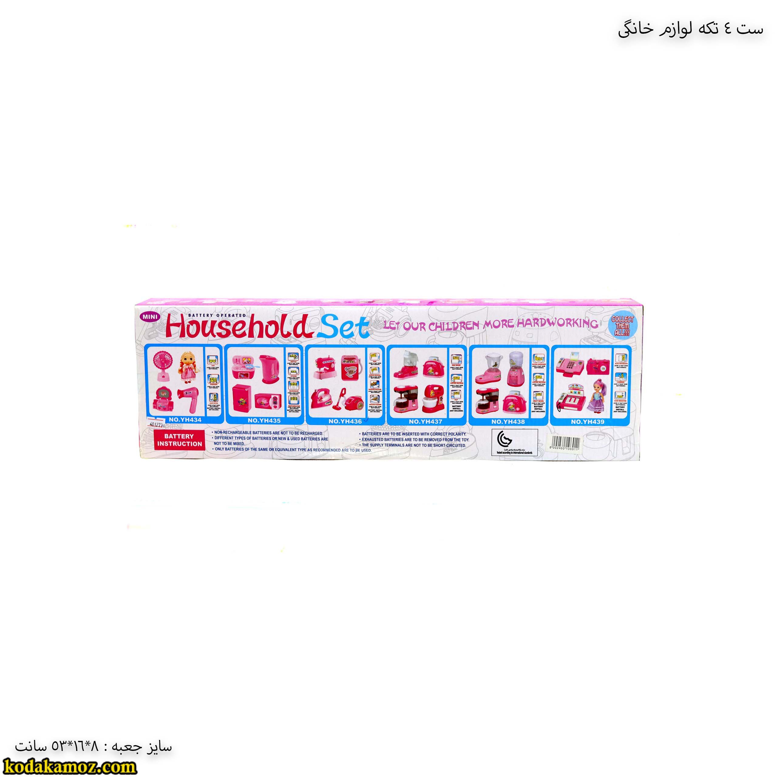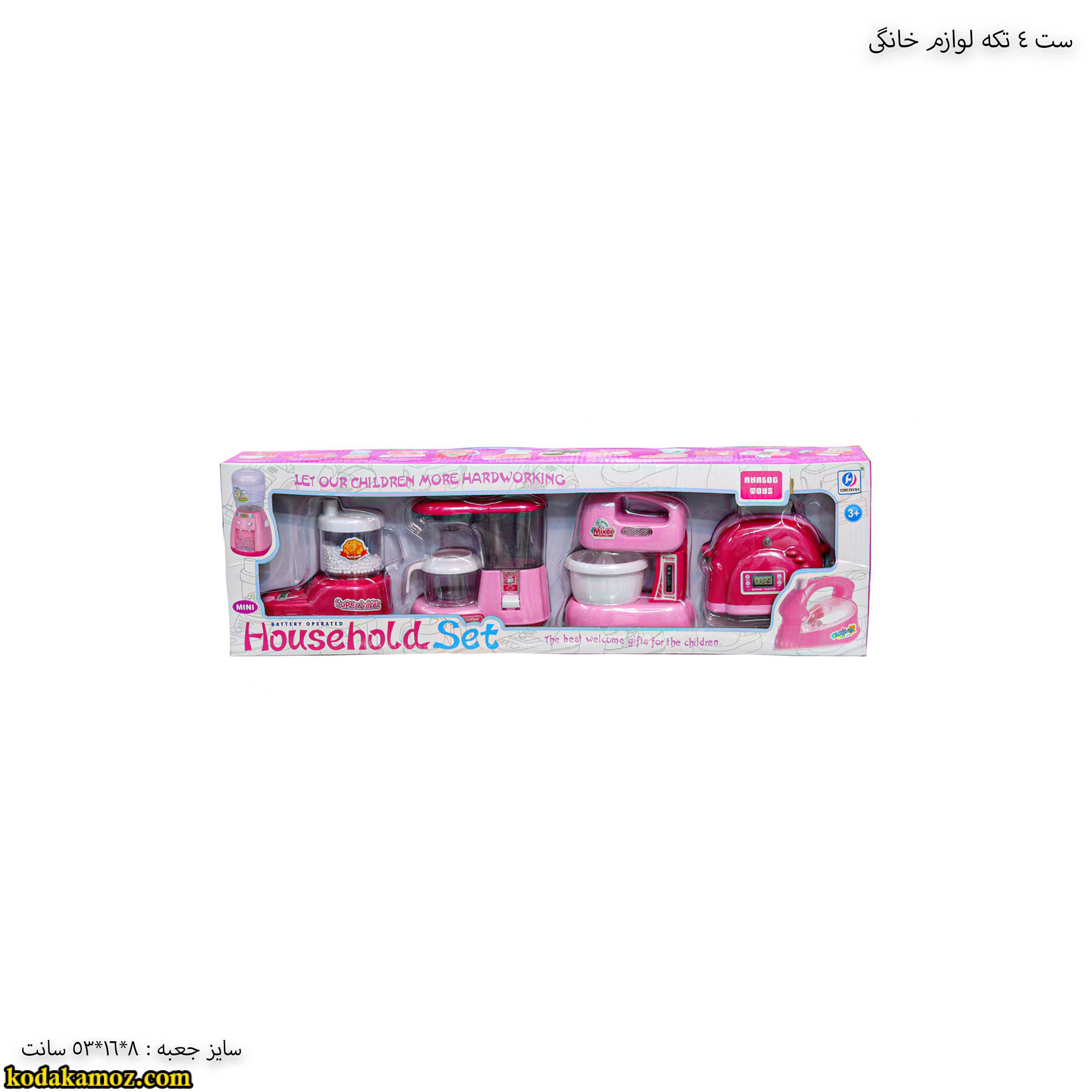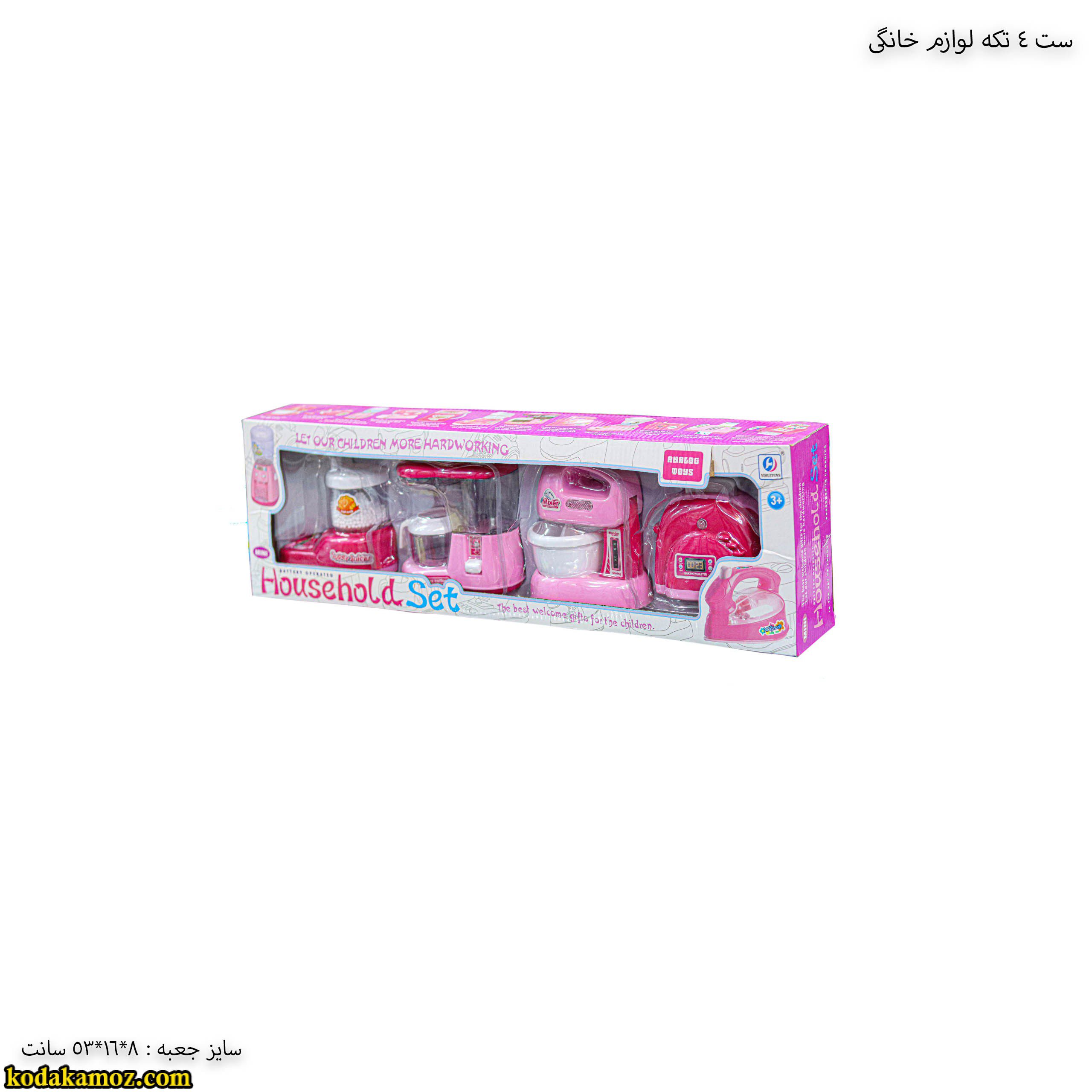 ست ۴ تکه لوازم خانگی اسباب بازی  به وسیله باتری قلمی روشن می شود و