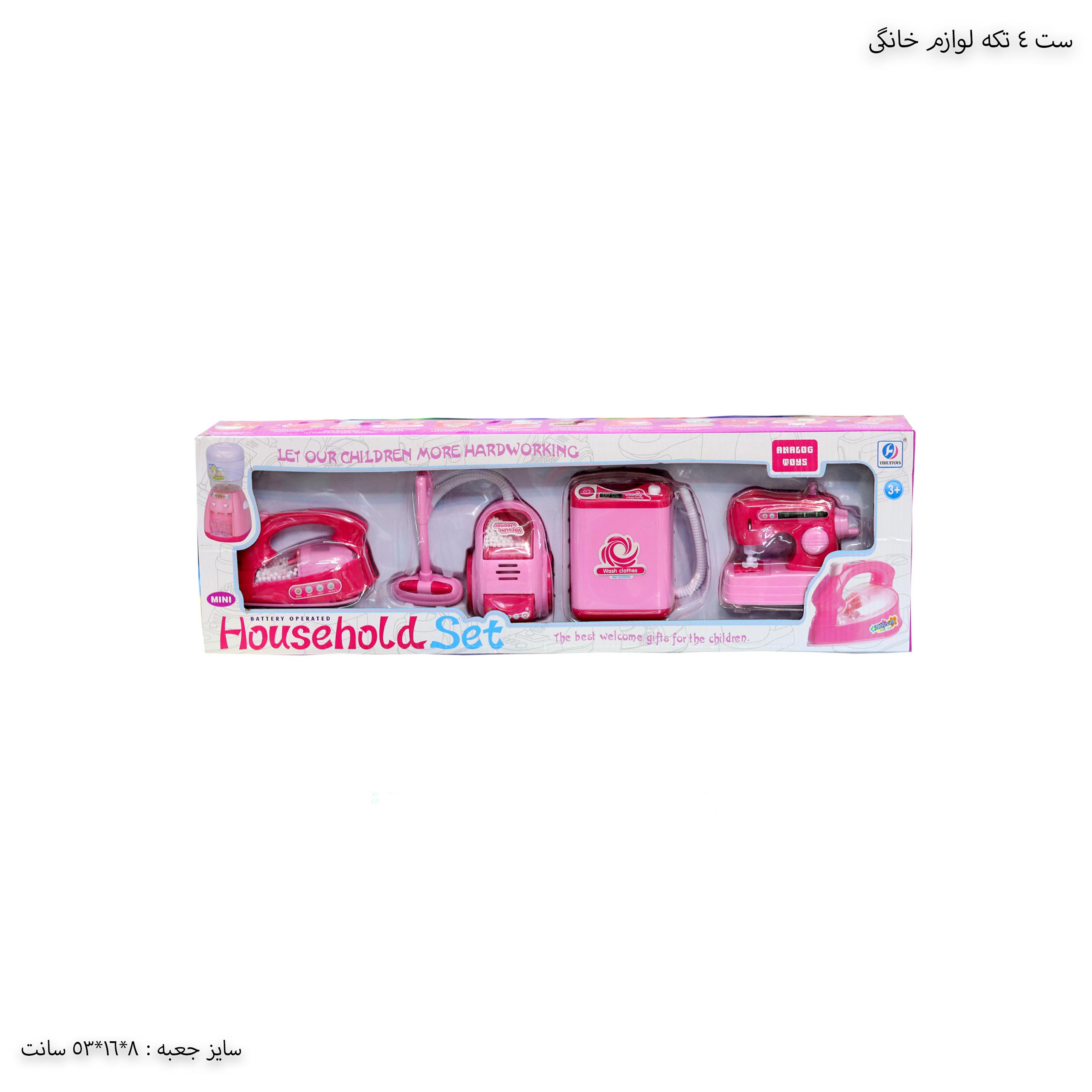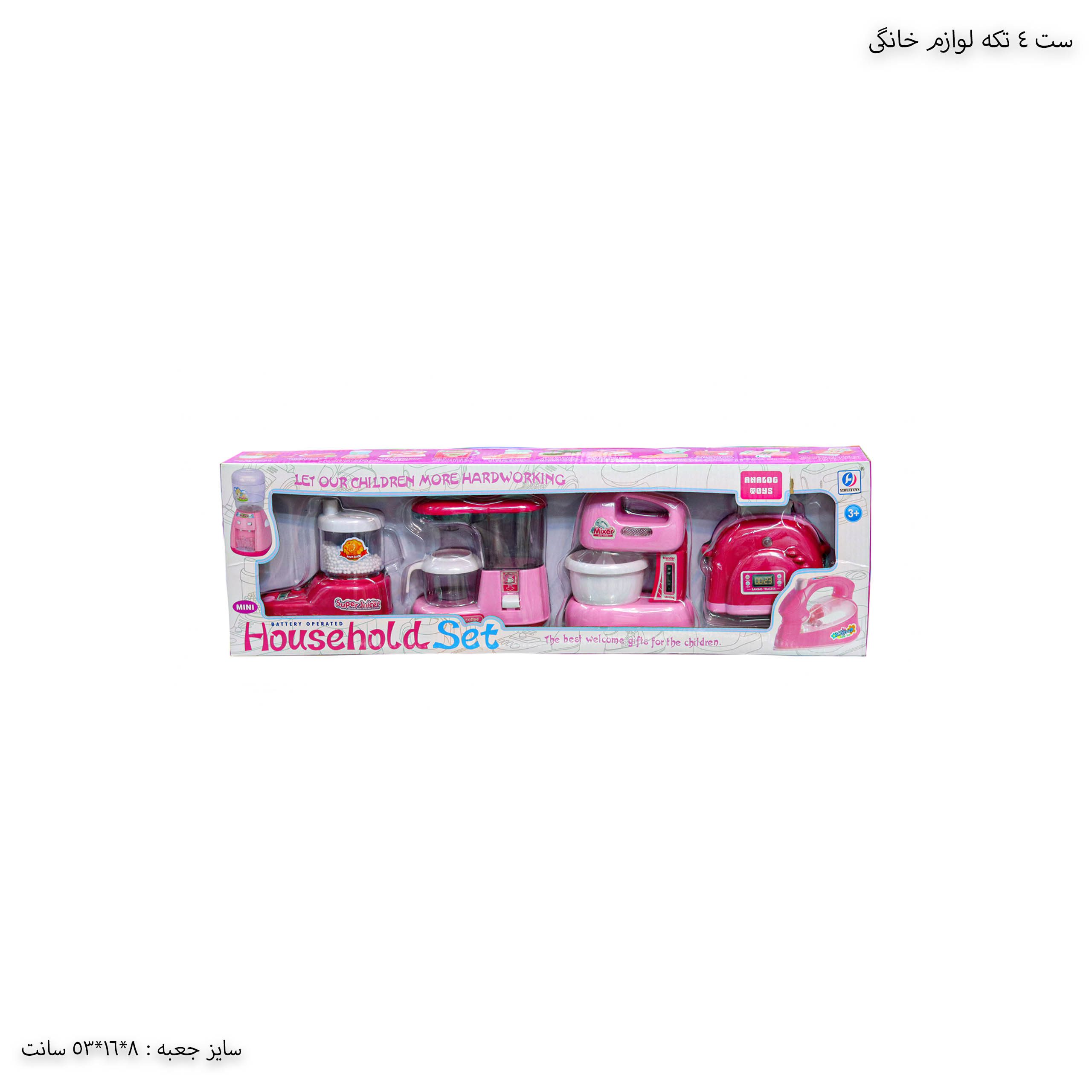 ست ۴ تکه لوازم خانگی اسباب بازی از سری اسباب ‌بازی‌های لوازم خانگی کودکان این کارخانه است.