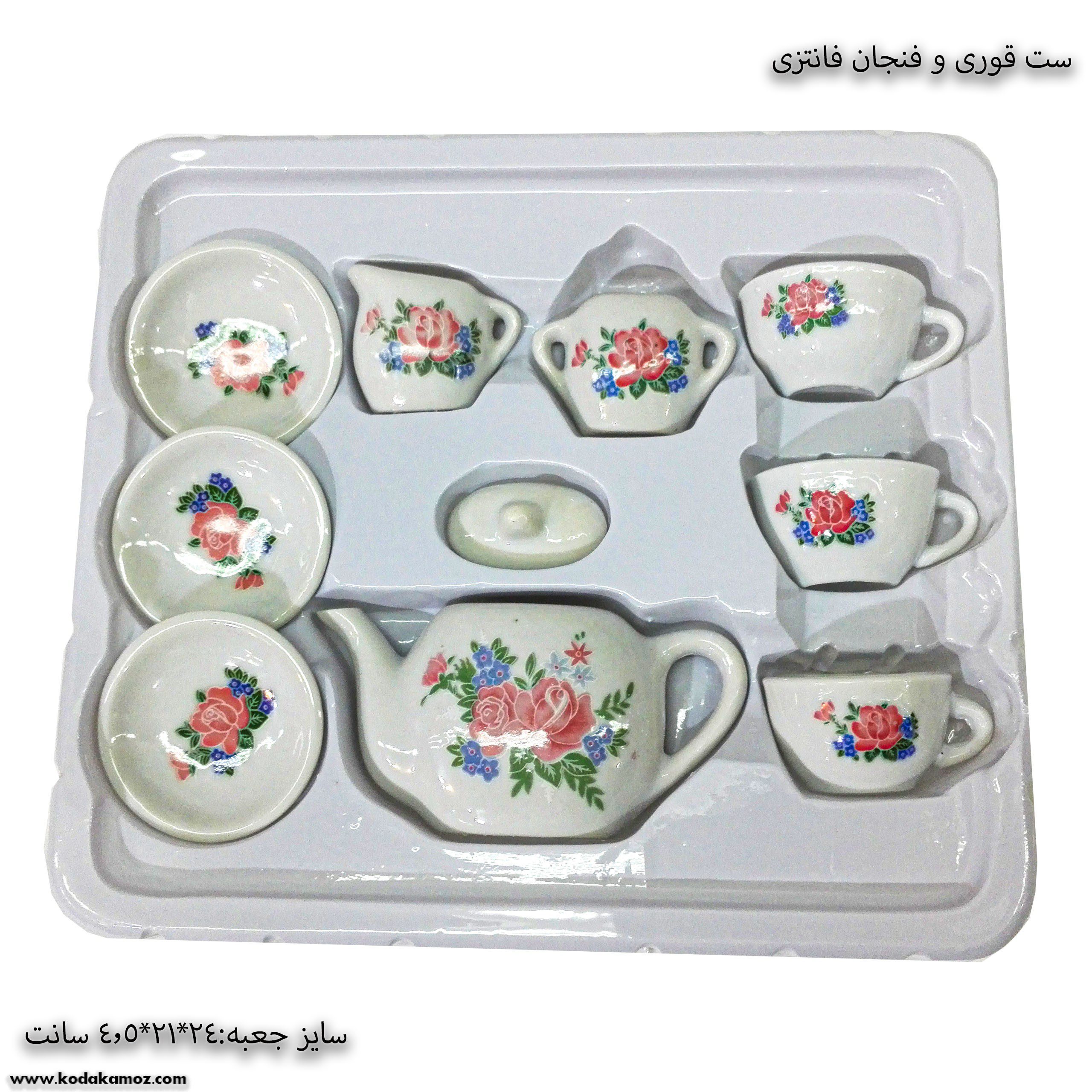 شامل ۴ نعلبکی و فنجان  و قوری است.