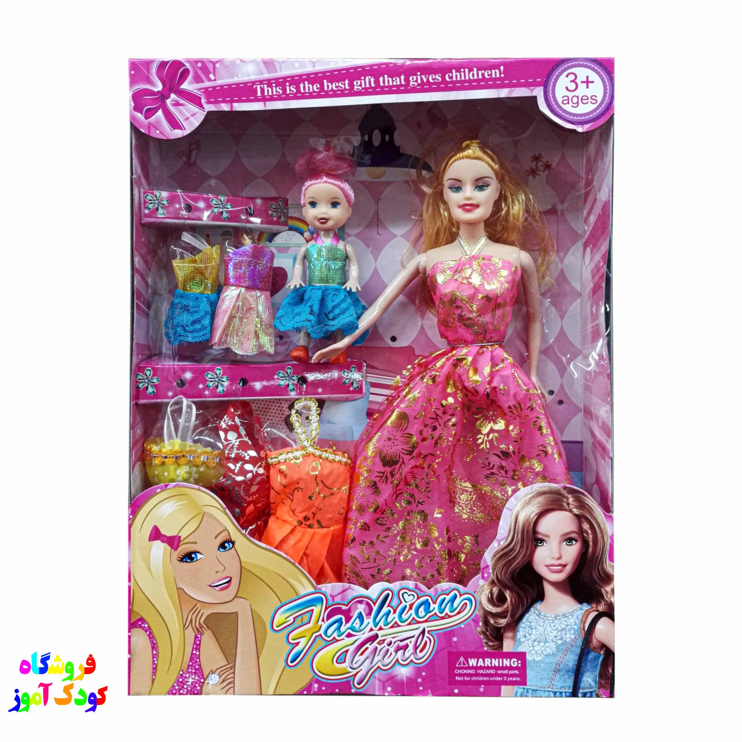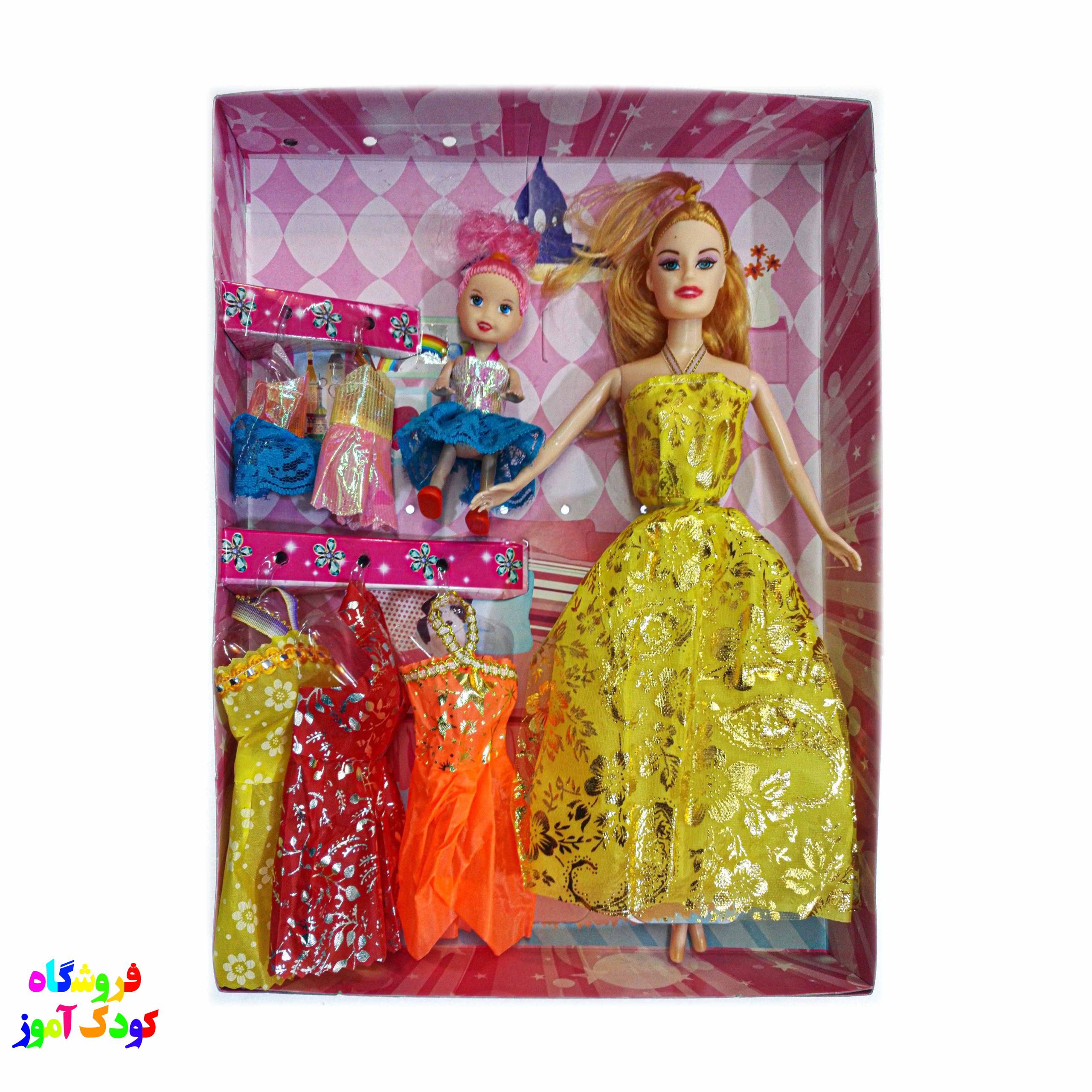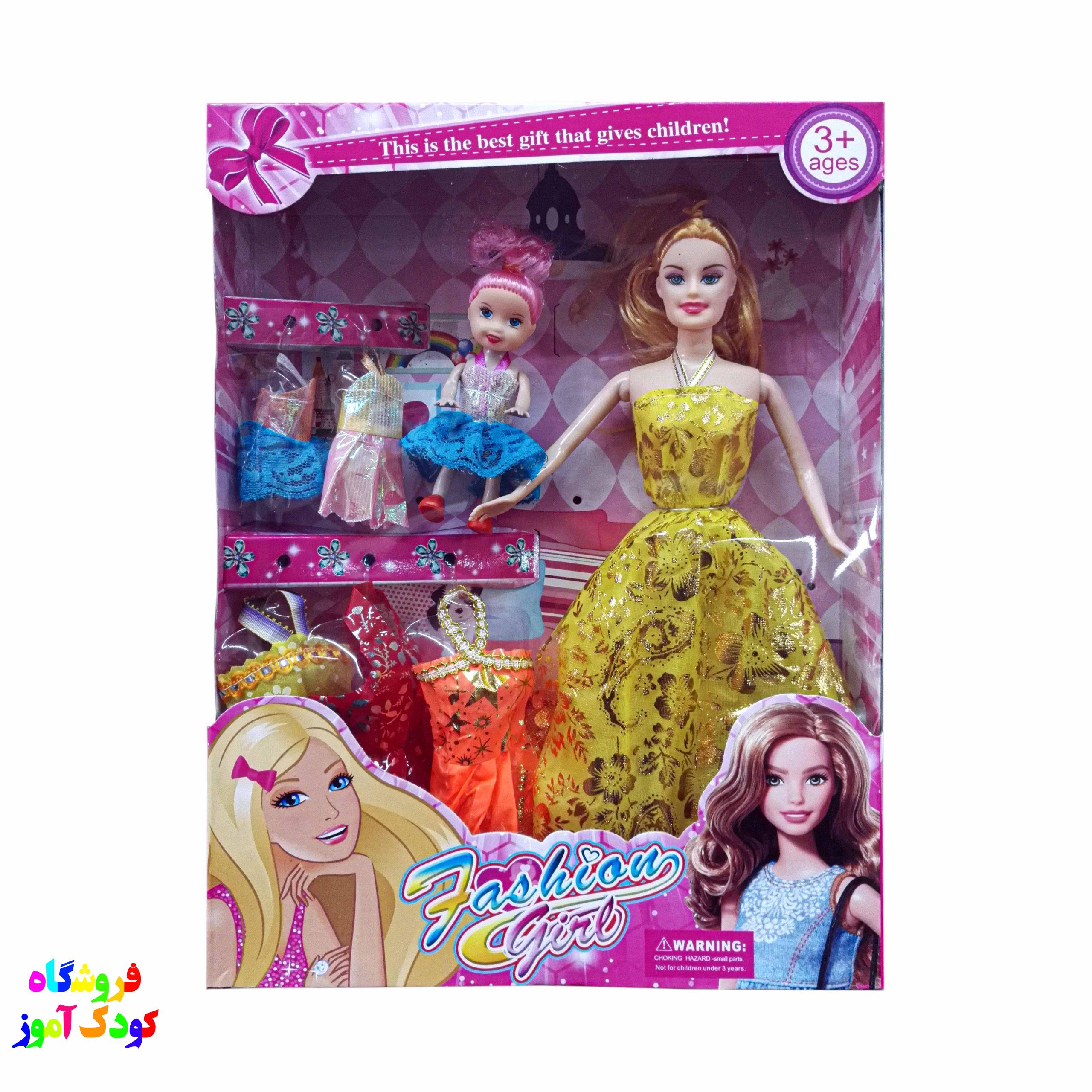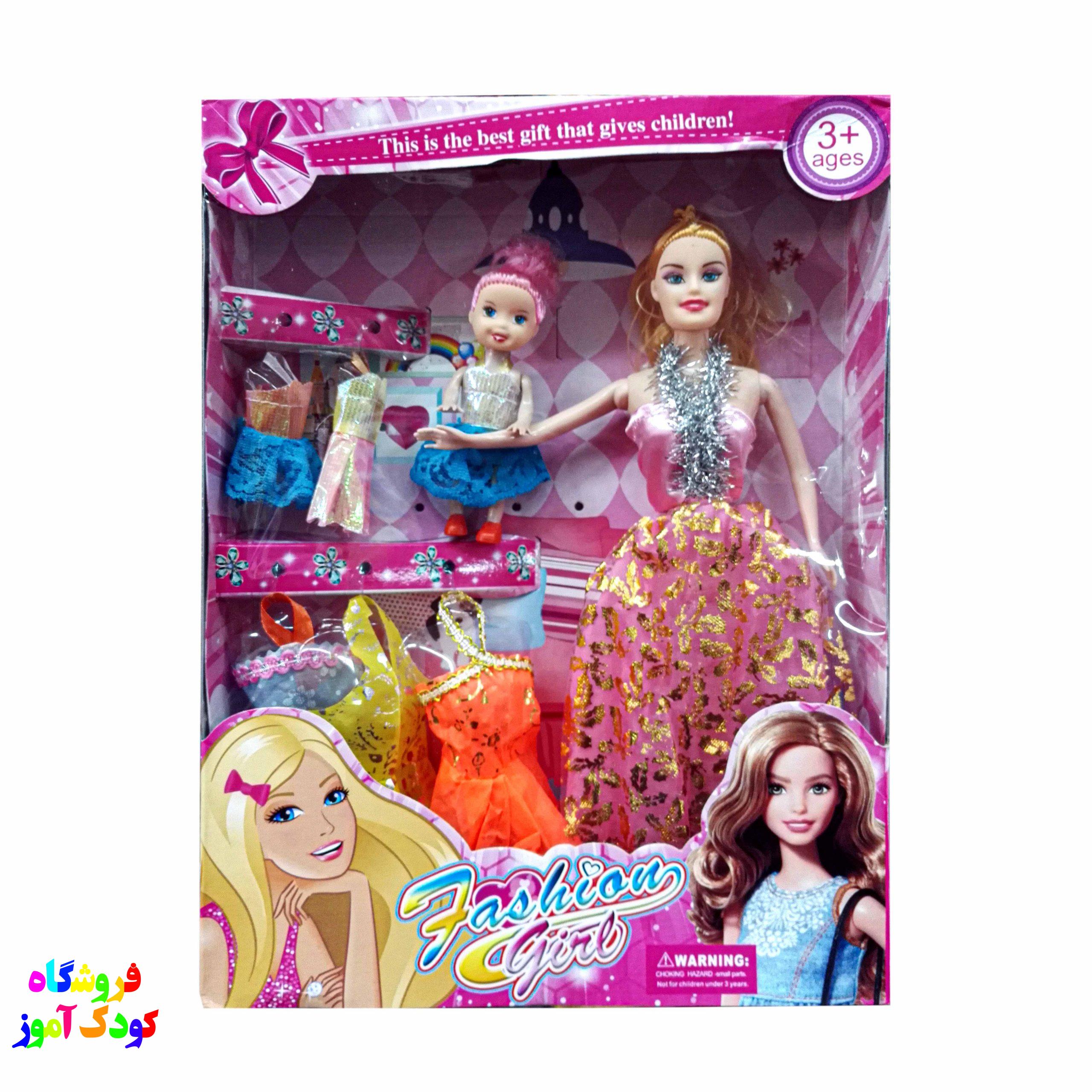 باربی مفصلی با لباس و بچه عروسک محبوب دختر بچه های عزیز میباشد .
