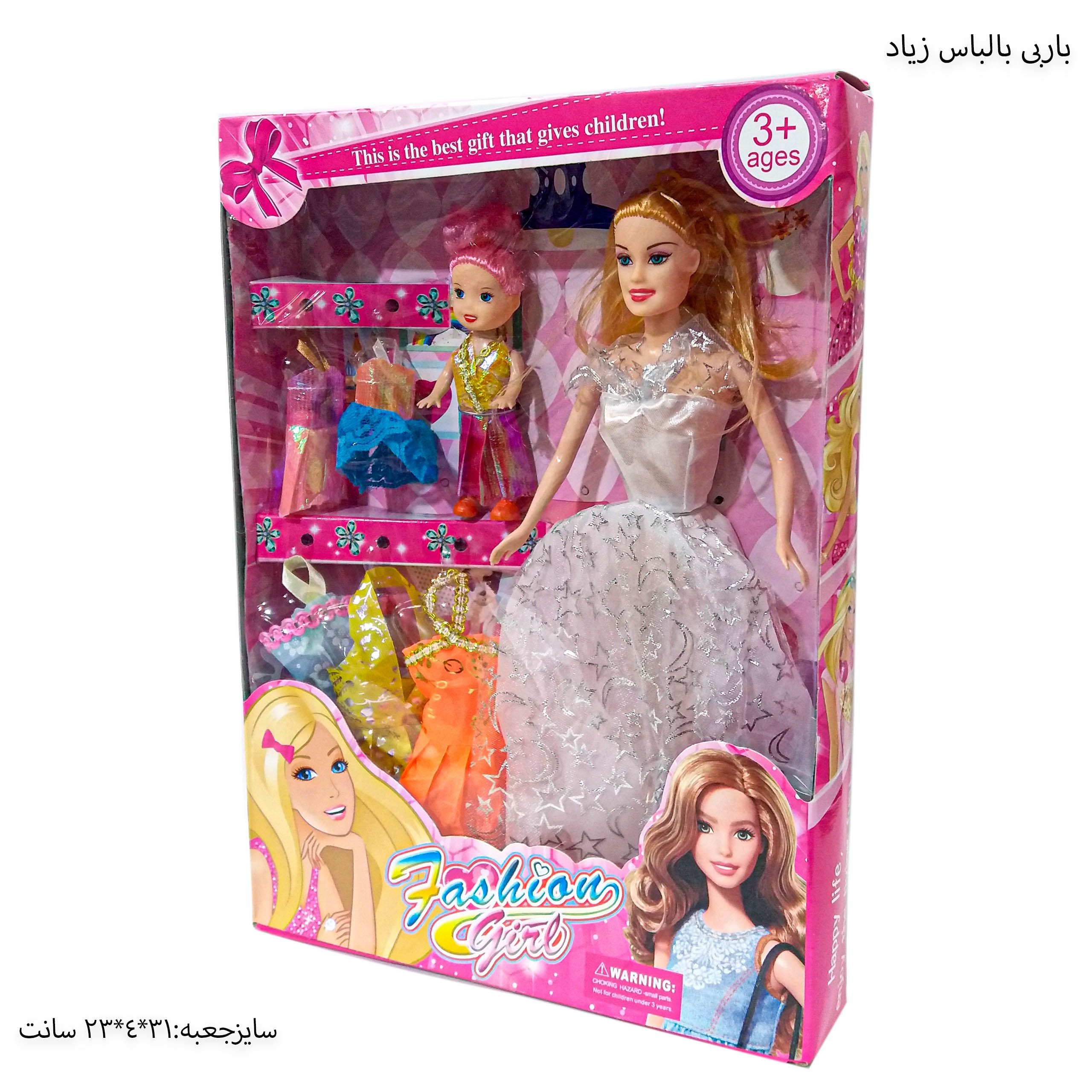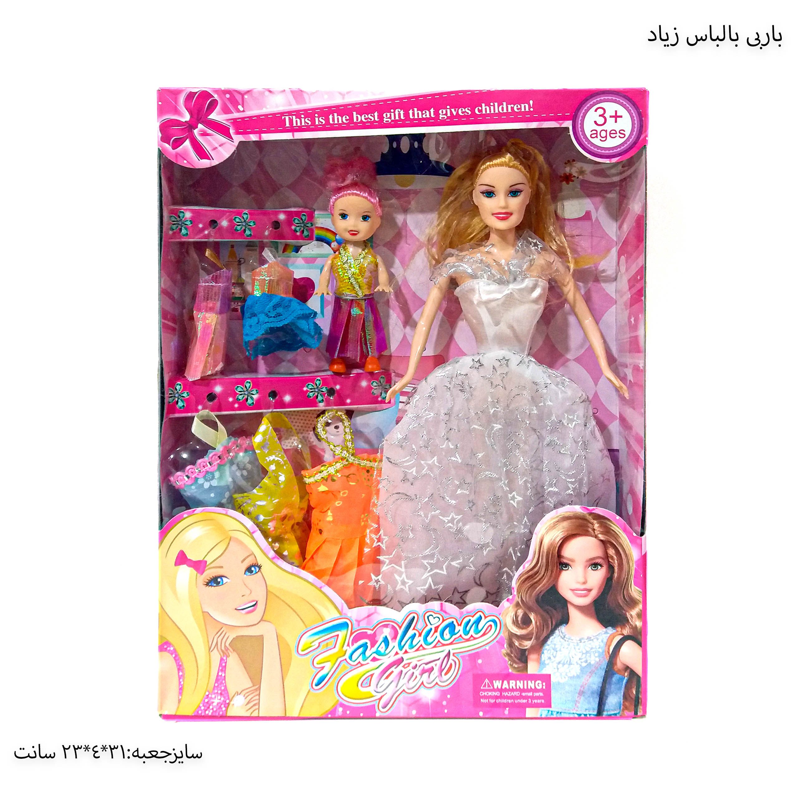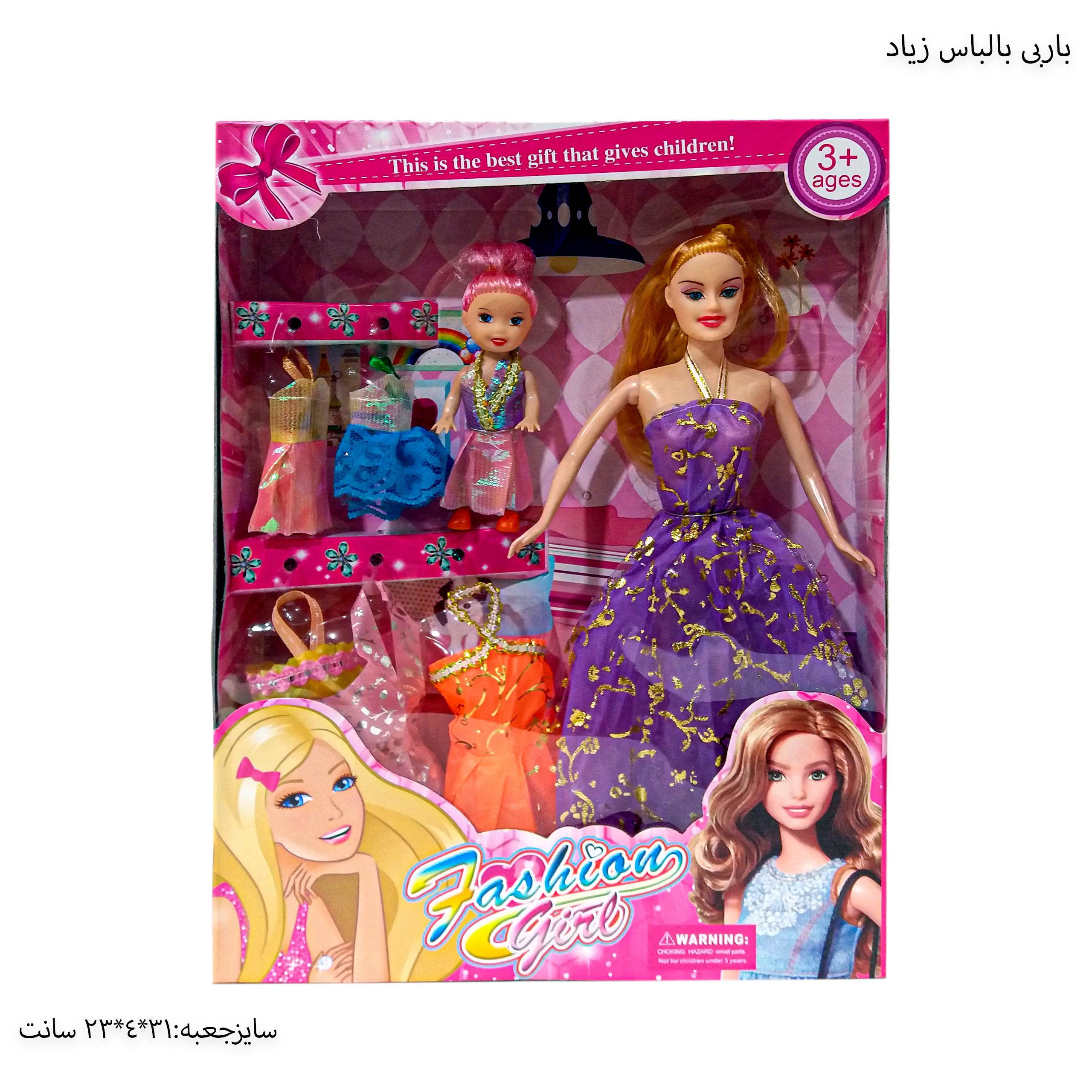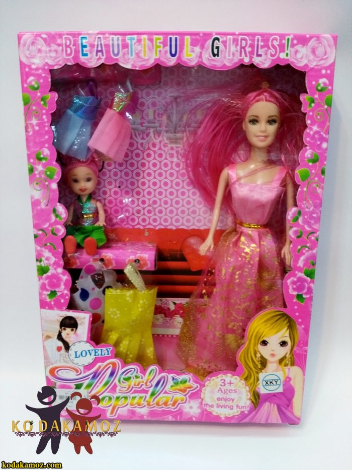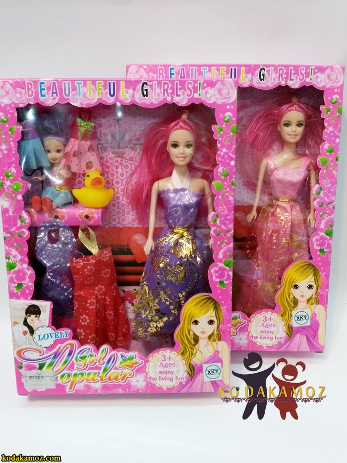 باربی مفصلی با لباس و بچه عروسک محبوب دختر بچه های عزیز میباشد .