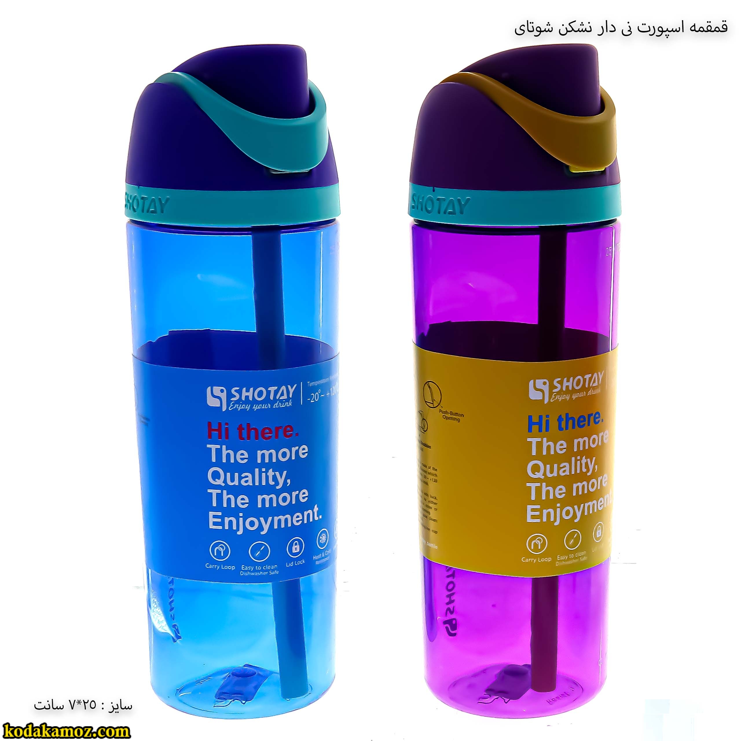 - در همه ی بخش های بطری از درب، بدنه و نی از مواد اولیه درجه یک استفاده شده تا ضمن حفاظت از سلامتی شما، بتوان بطری های شوتای را در ماشین ظرفشویی شست