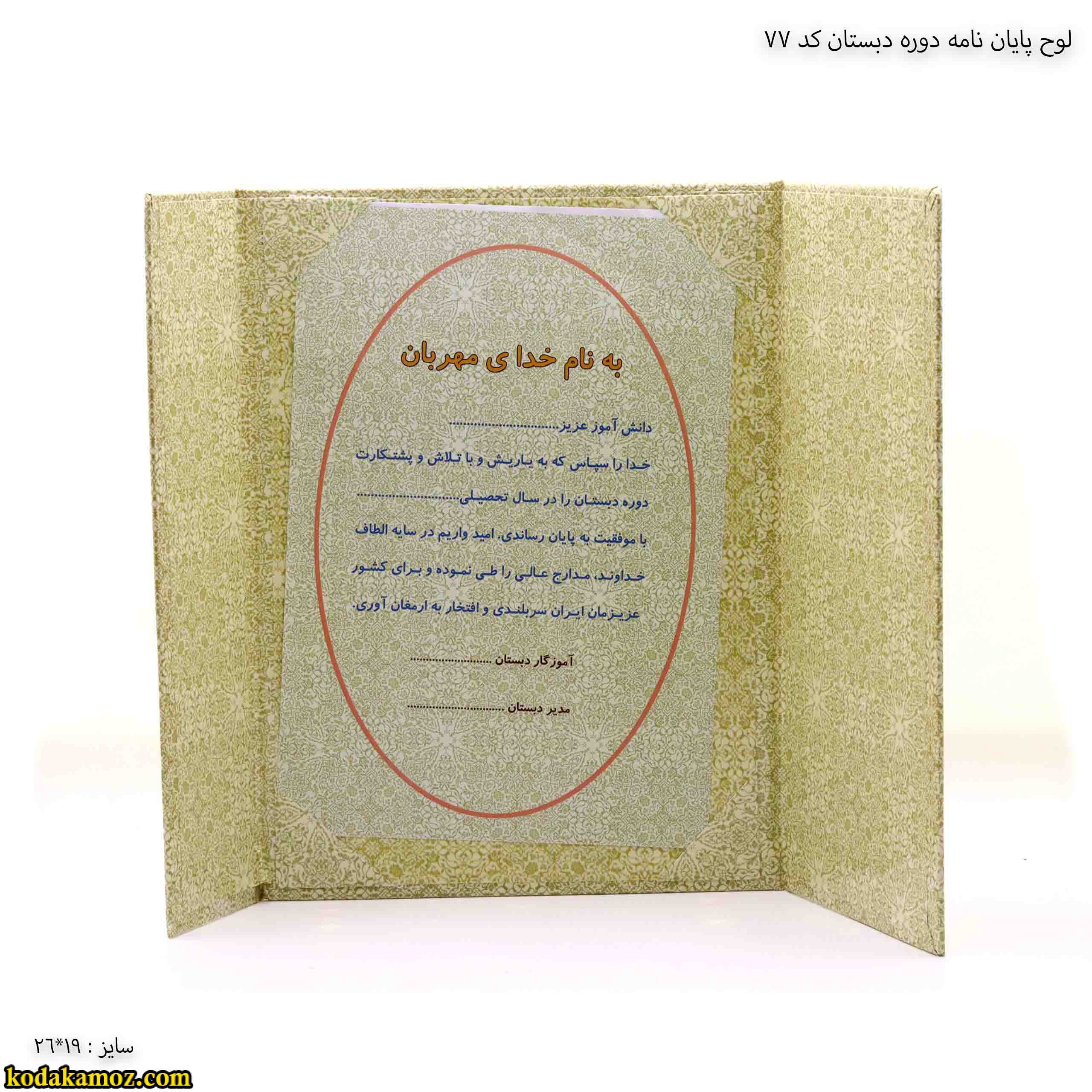 خدا را سپاس که به یاریش و با تلاش و پشتکارت دوره دبستان را در سال تحصیلی ………………. با موفقیت به پایان رساندی امید وارم در سایه الطاف خداوند ، مدارج عالی را طی نموده و برای کشور عزیزمان ایران سربلندی و افتخار به ارمغان آوری .