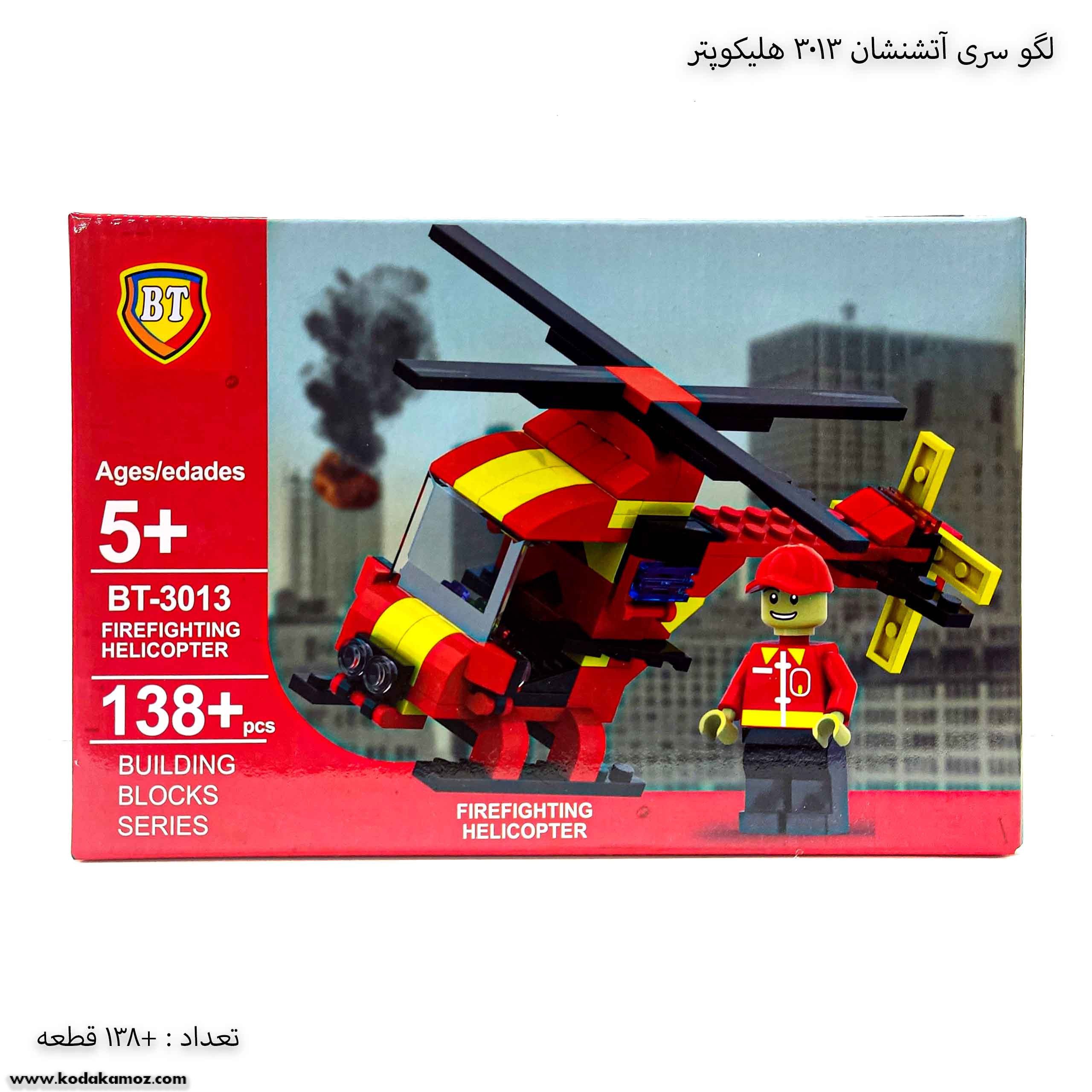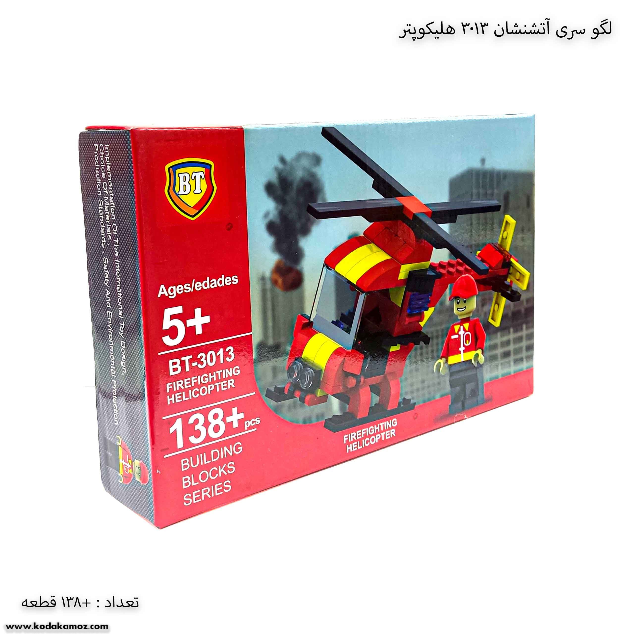 لگو سری آتشنشان هلیکوپتر 3013 جنس با کیفیتی داره و کودک رو سرگرم میکنه پیسنهاد میکنم برای زیر شش سال نخرید چون ممکنه قطعات ررو بذاره دهنش