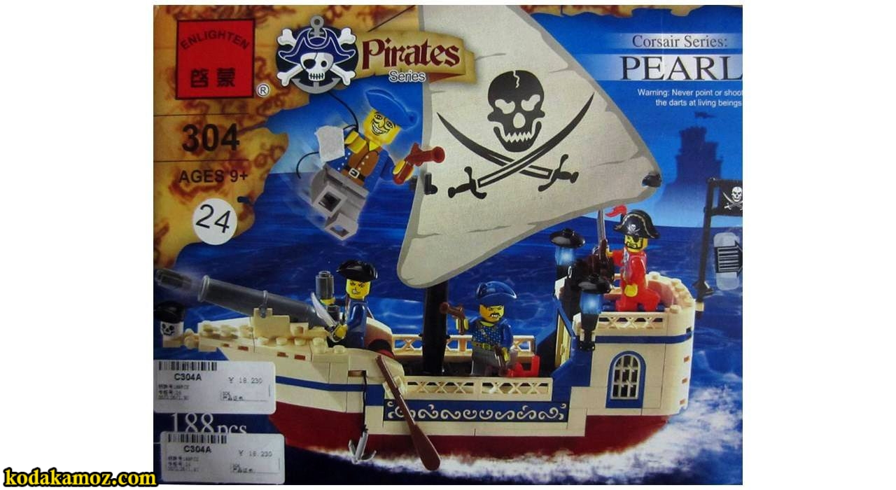 لگو کشتی دزدان دریایی Enlighten مدل304 تعداد 188 قطعه پیشنهاد ما بعنوان هدیه ای ارزشمند است .کودک با لگوها چیزی می سازد و هر زمانی که دوست داشت آن را بدون ترس و واهمه خراب می کند.چون کودک در ساختن و خراب کردن آزادی عمل دارد احساس خستگی نمی کند .اشکال هندسی را می تواند با بعضی از لگوها بسازد و از این طریق پی به مفاهیم هندسی می برد .چون لگوها در رنگهای مختلف تهیه شده اند می تواند کودکان را در شناسایی و آموزش رنگها یاری دهد .وقتی کودک در اتصال قطعات موفق می شود و چیزی می سازد، احساس غرور و پیروزی می کند که در اعتماد به نفس کودک بسیار مؤثر است.کودک در نتیجه اتصال قطعات و خراب کردن آن با مفاهیم تجزیه و ترکیب اجسام بیشتر آشنا می شود .نکته با اهمیت در لگو این است که یادگیری و کار کودک جنبه تکراری و خسته کننده پیدا نمی کند .به وسیله مهره های لگو هر بار می تواند شکل جدیدی درست کند.زمینه تطابق و هماهنگی چشم و دست را فراهم می آورد.زمینه همکاری و رشد مهارتهای اجتماعی کودک را گسترش می دهد.همه کودکان به تناسب سن و هوش می توانند از این اسباب بازی استفاده کنند، کودک باهوش یک ساختمان پیچیده می سازد .به قدرت تفکر منظم و سازماندهی کودک کمک می کند.مناسب برای گروه سنی شش سال به بالا میباشد .