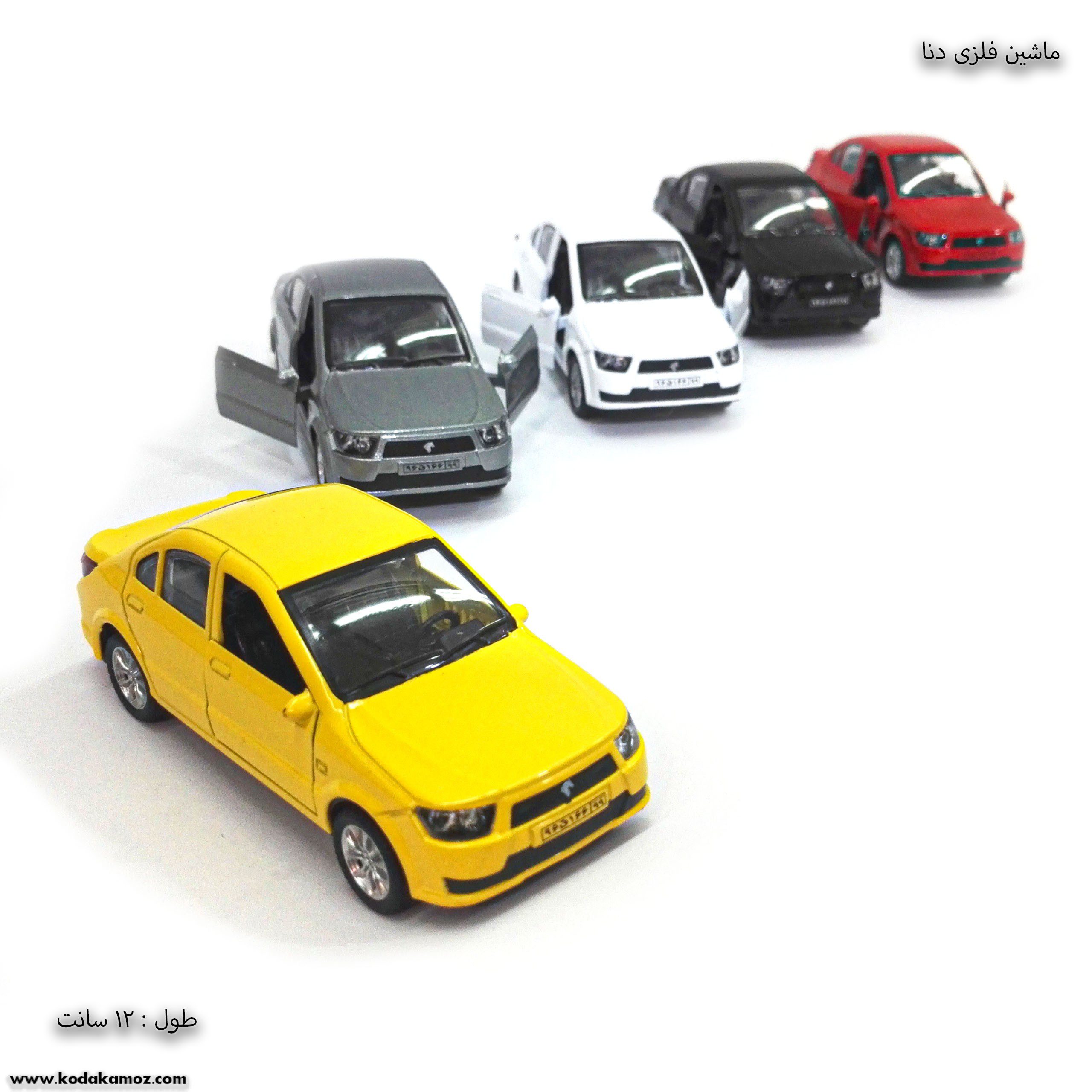 ماشین بازی «دنا » ماشینی فلزی و 12سانتی بوده که برای کودکان بالای سه سال طراحی شده است.