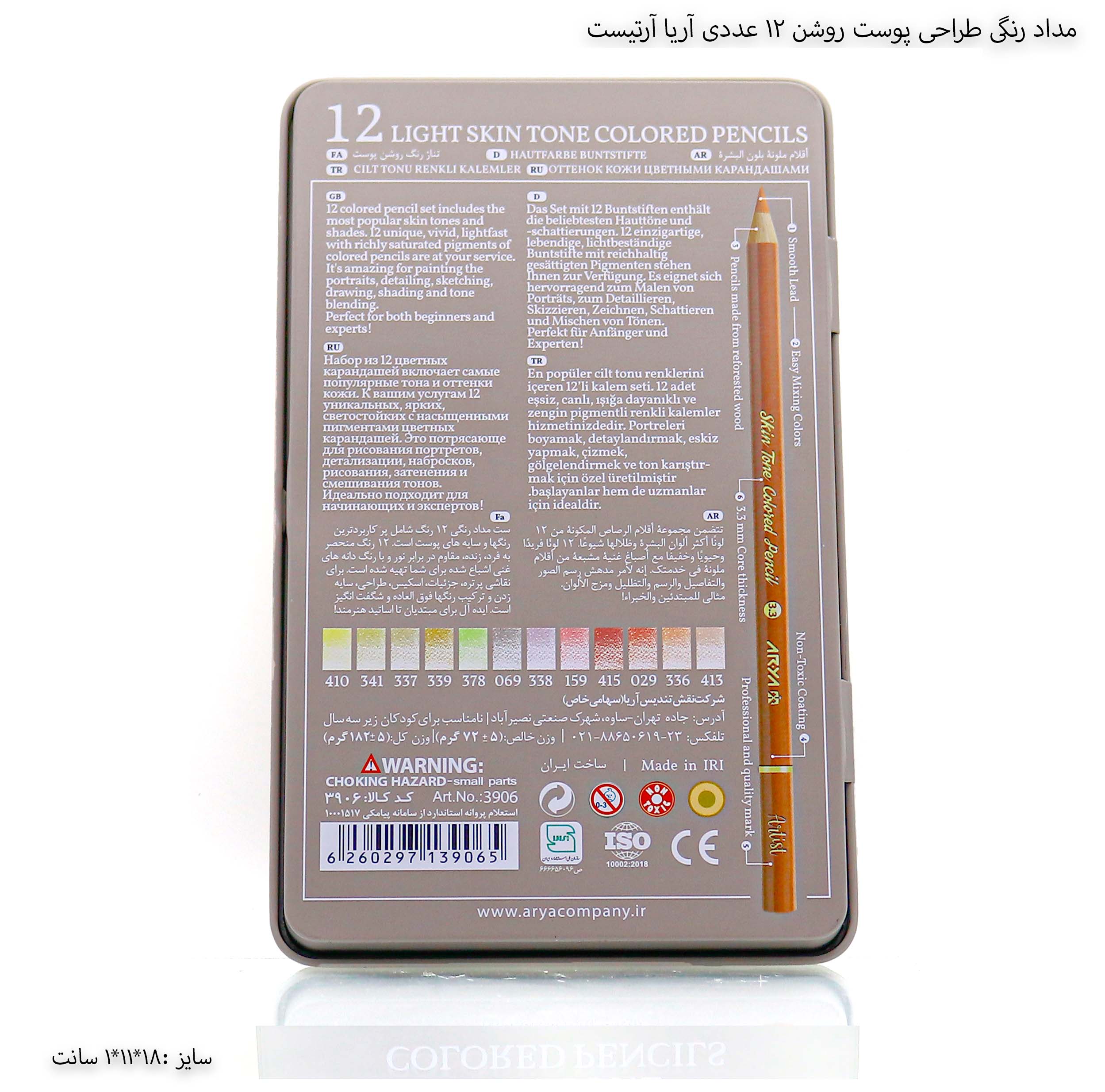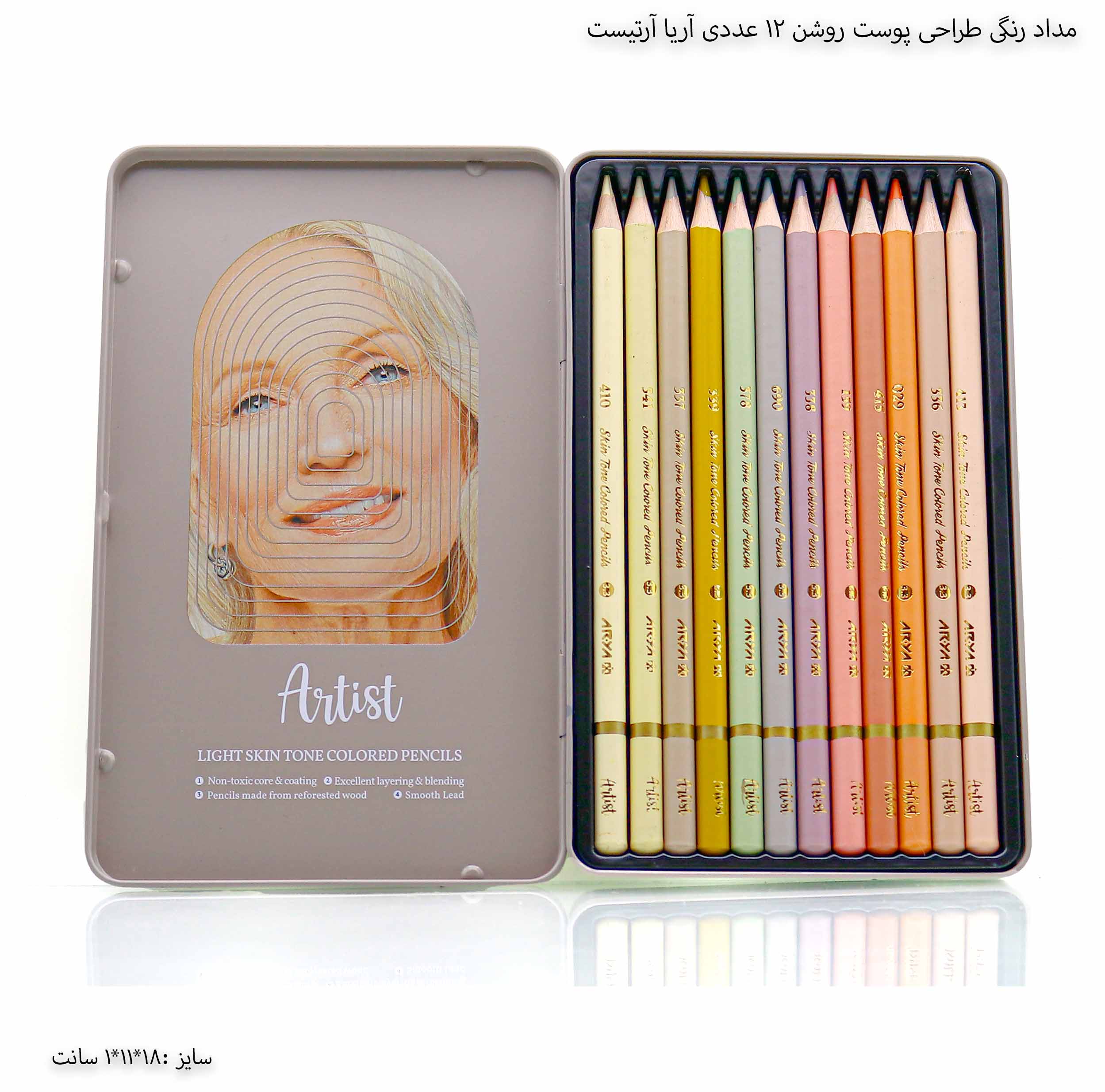 مداد رنگی آریا آرتیست 12 رنگ طیف پوست روشن