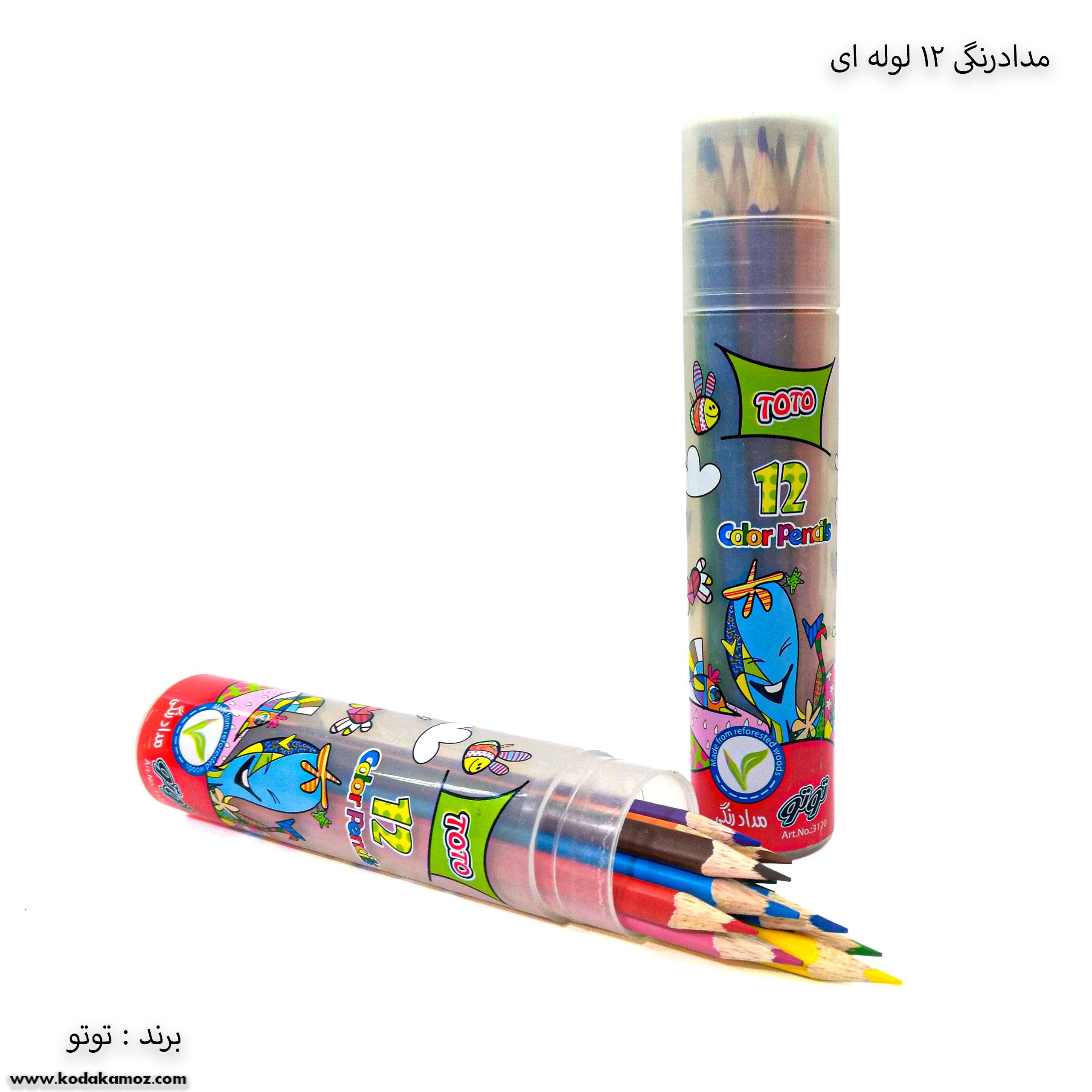 مشخصات مداد رنگی 12 رنگ لوله ای توتو