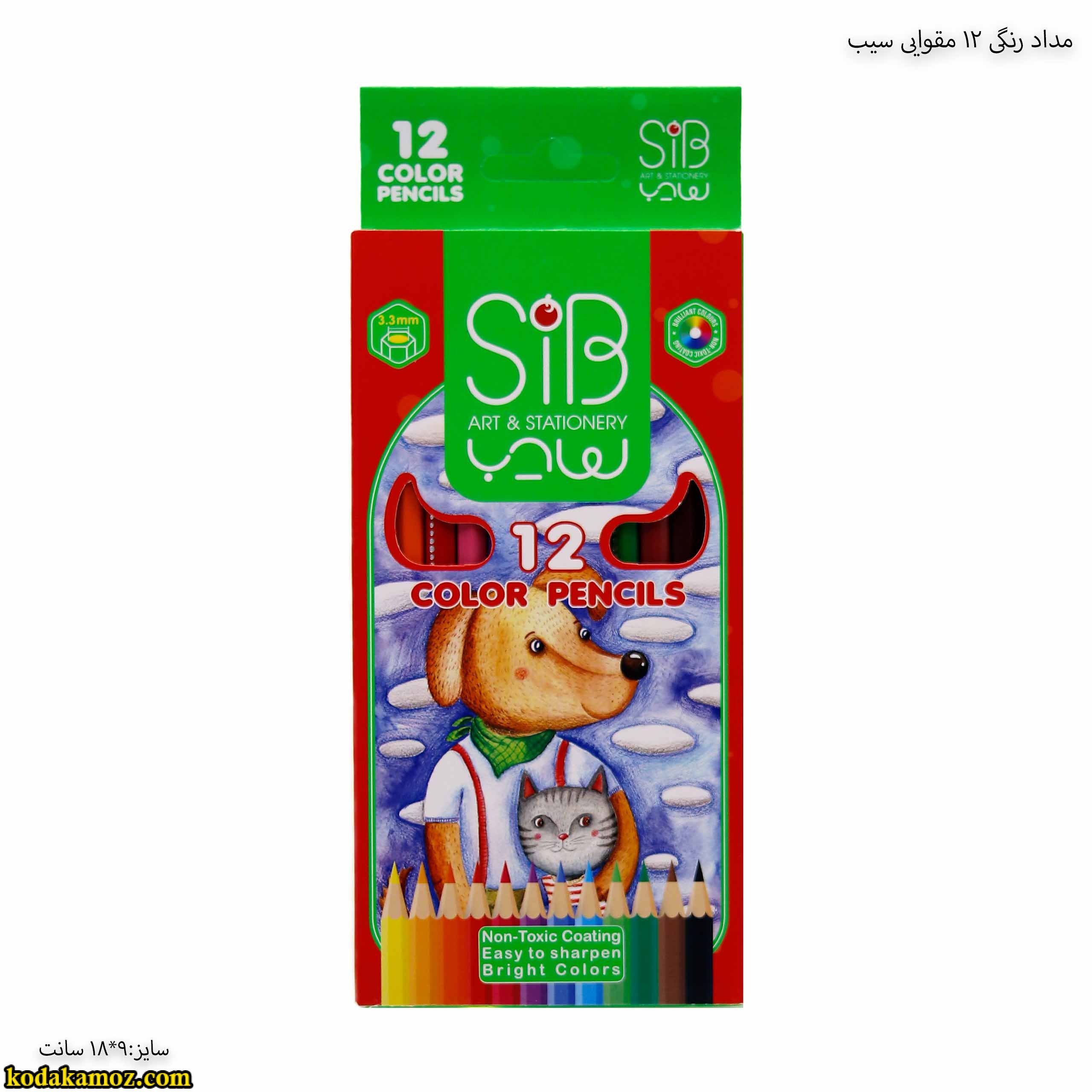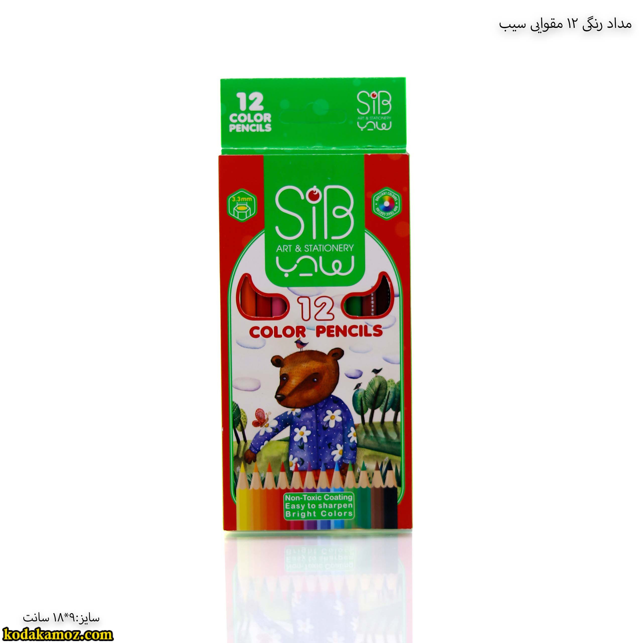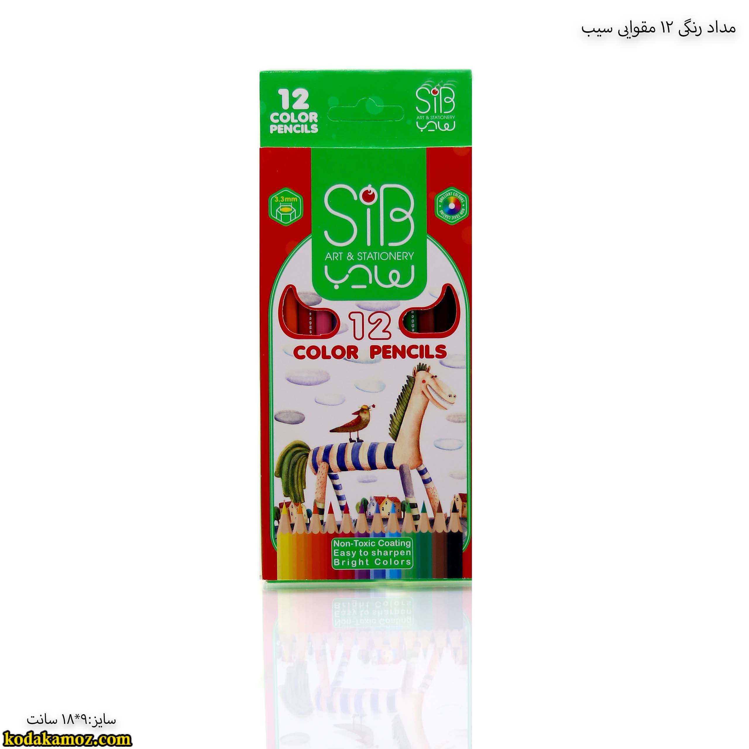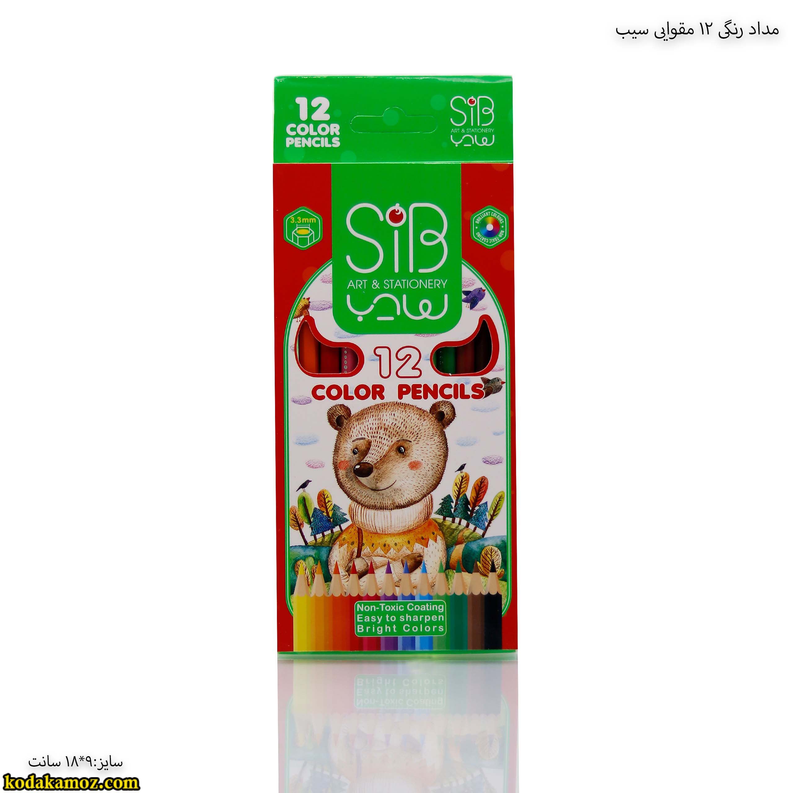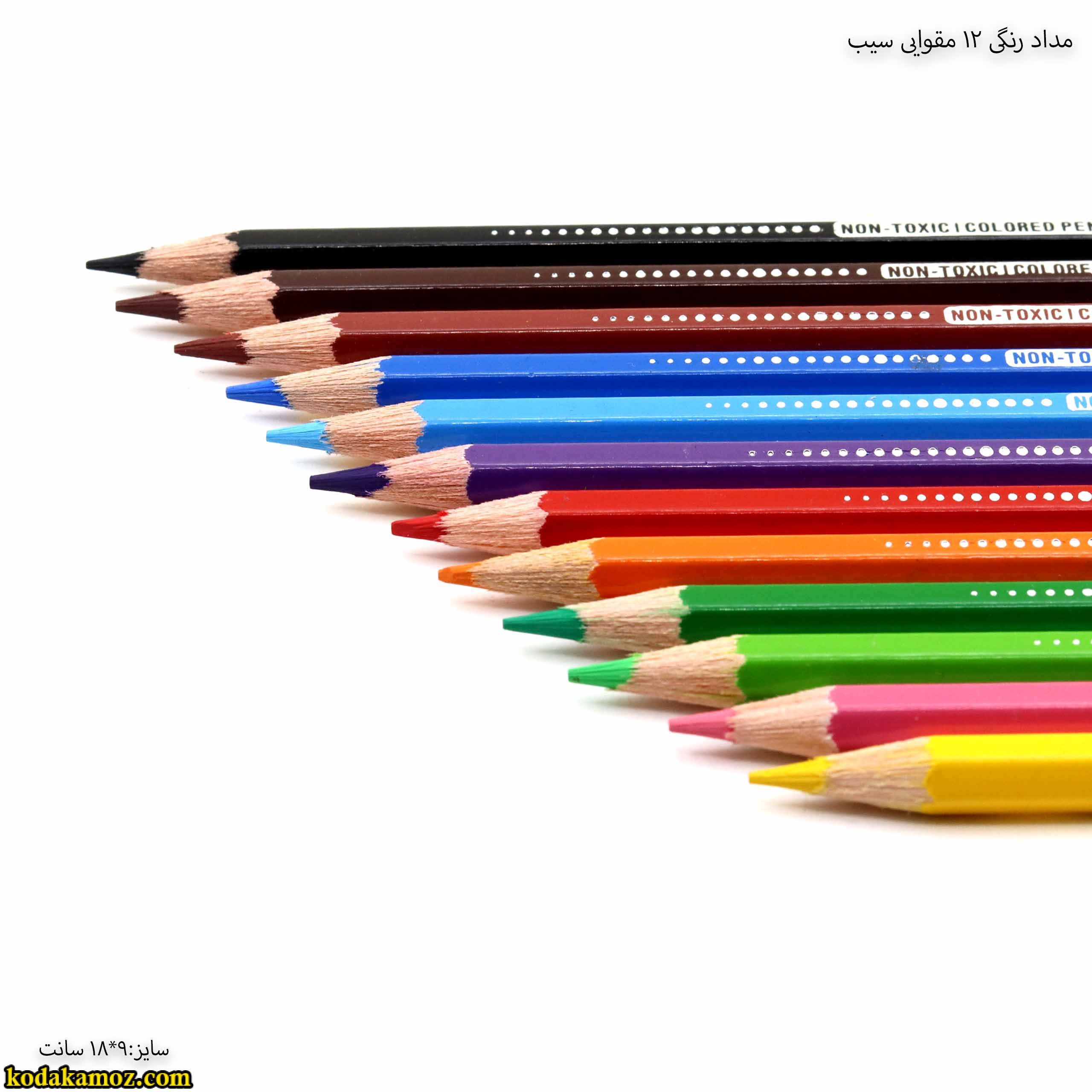 مداد رنگی 12 رنگ مقوایی سیب