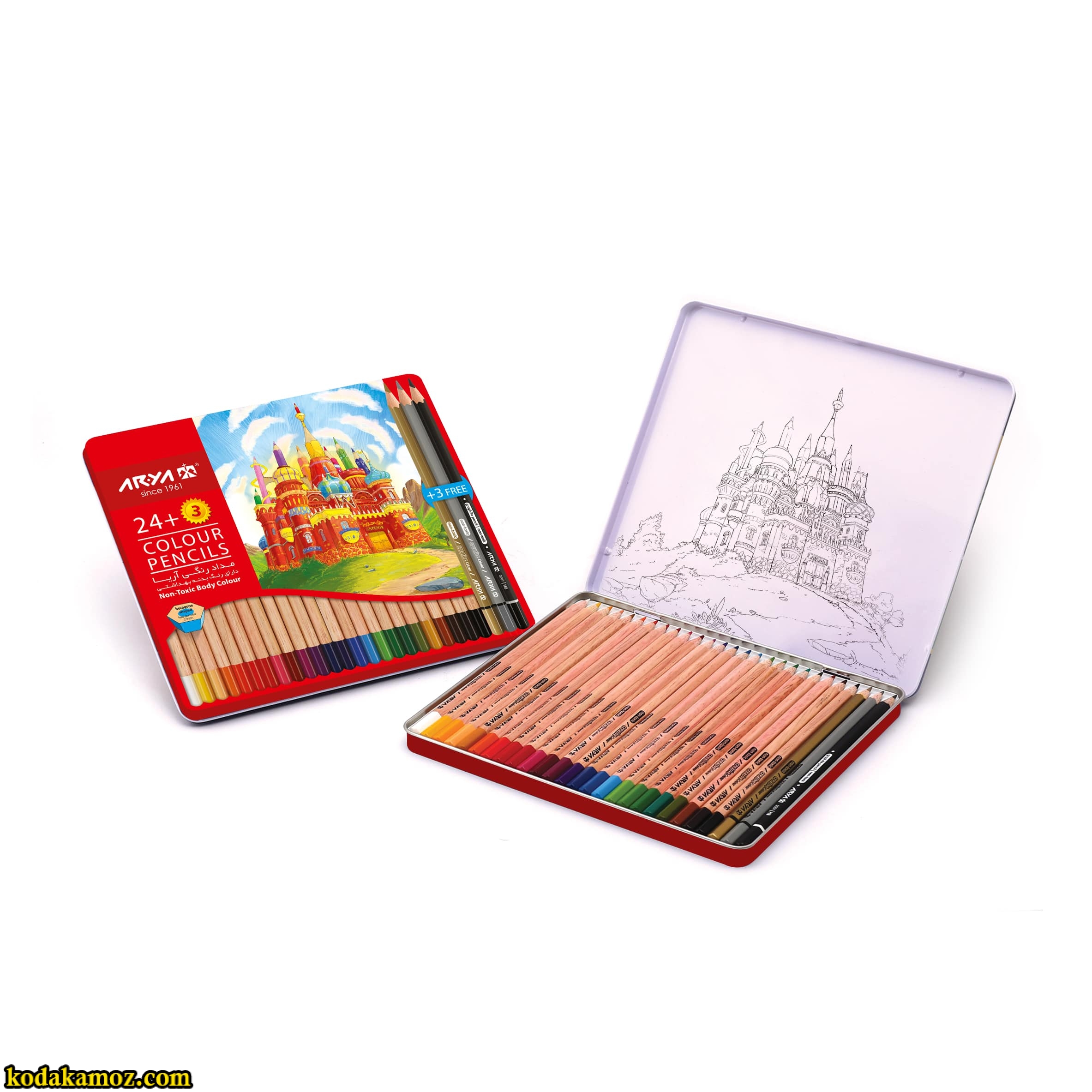 مداد رنگی 24 رنگ فلزی آریا برای هدیه گرفتم علیرغم قیمت بالا ولی راضی ام و دوست دارم