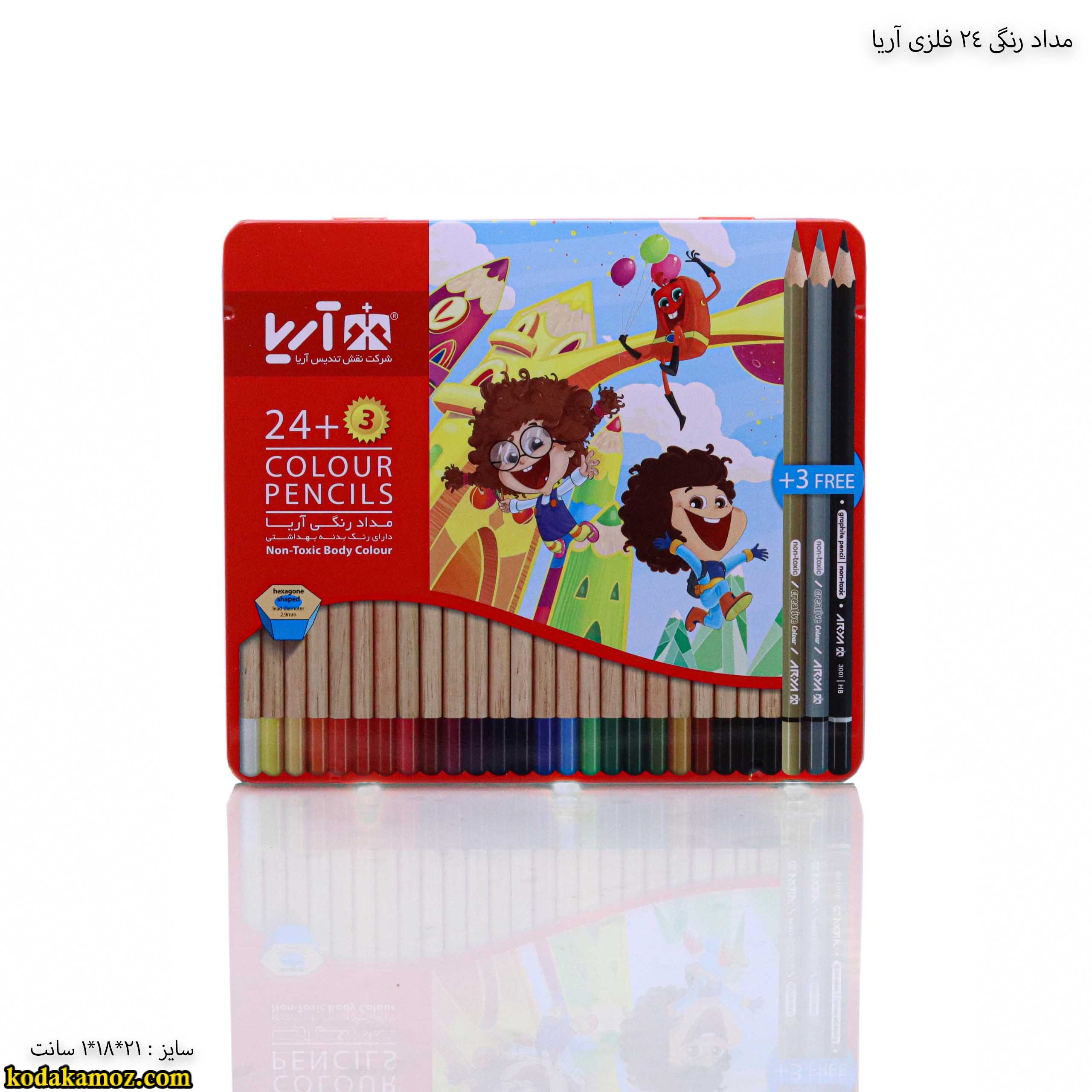مداد رنگی 24 رنگ فلزی آریا کیفیت خوبی داره