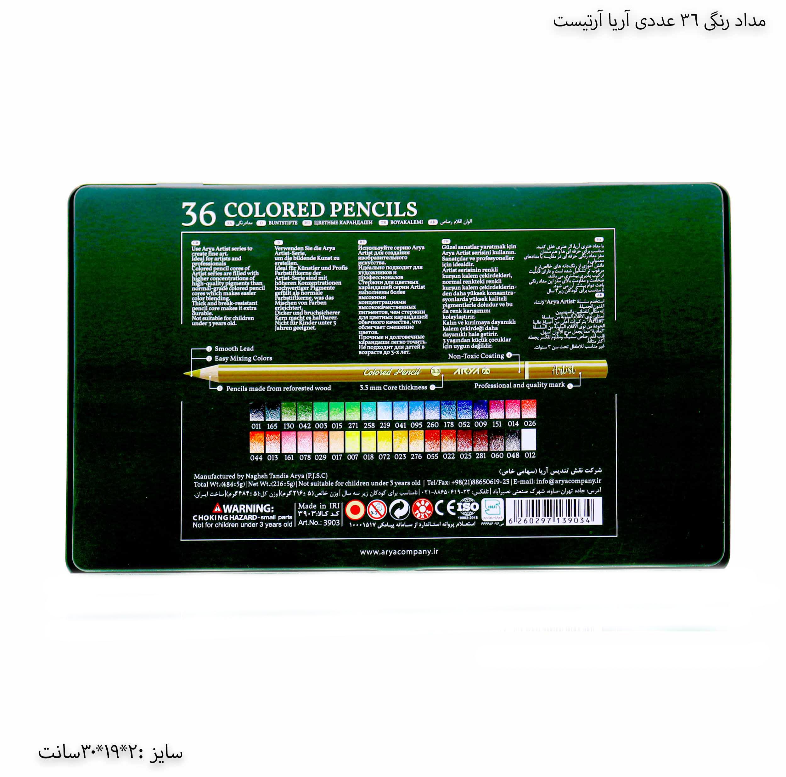 مداد رنگی 36 رنگ آریا آرتیست جعبه فلزی