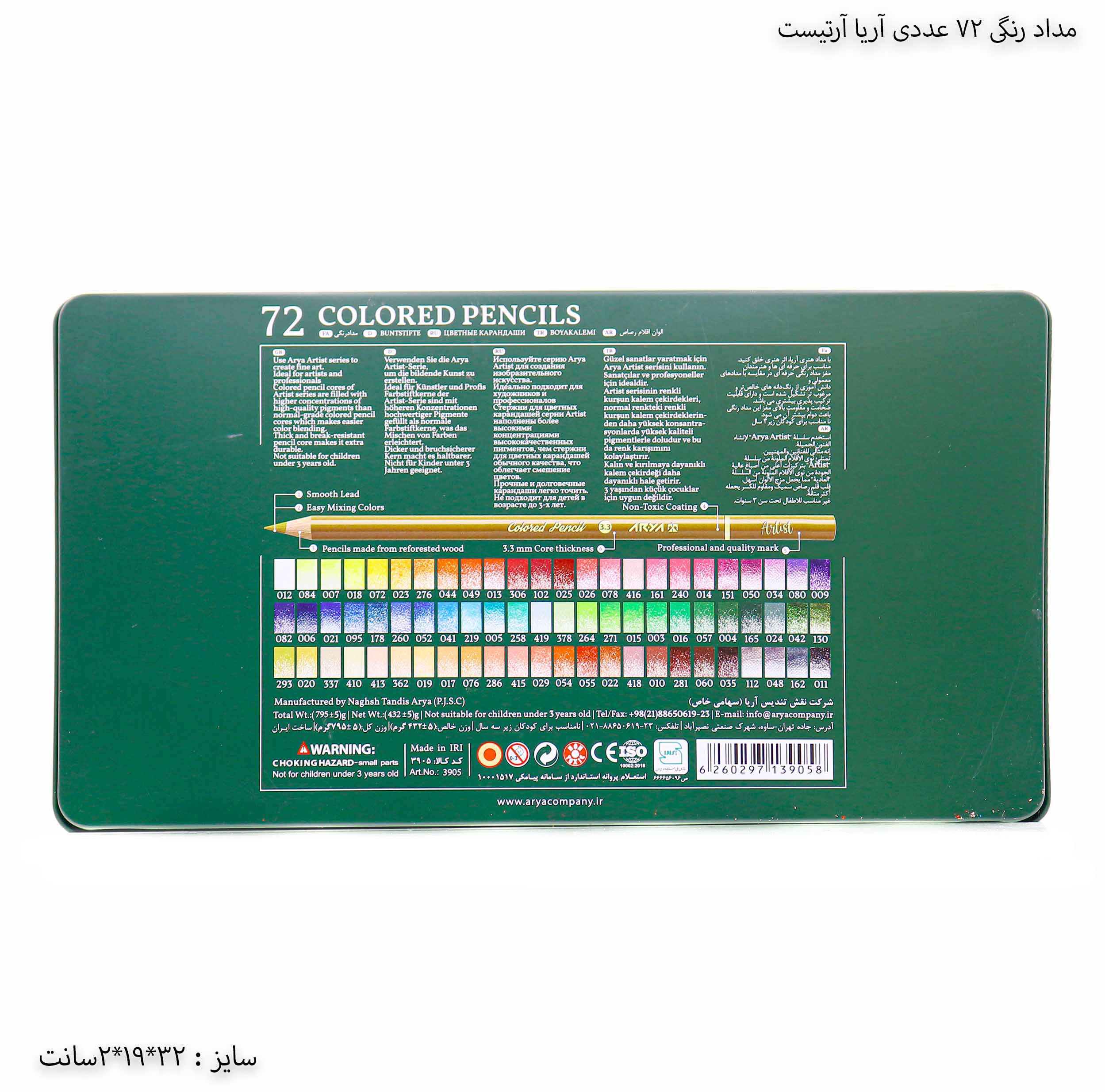 مداد رنگی 72 تایی آریا آرتیست جعبه فلزی