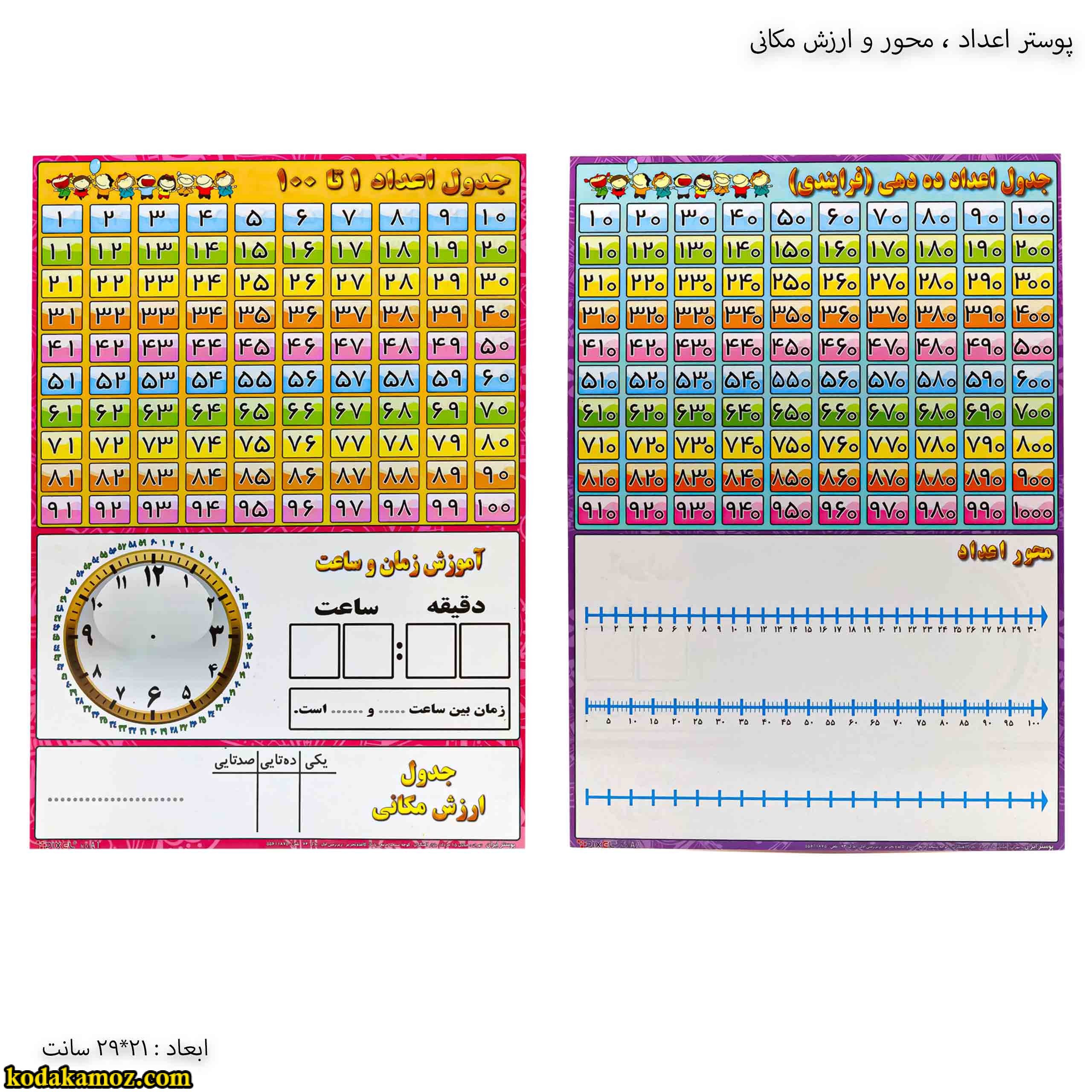 پوستر اعداد ، محور و ارزش مکانی سایز A4