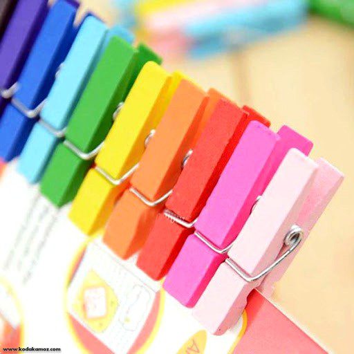 گیره چوبی رنگی بزرگ به طول 45میلیمتر در 8رنگ شاد قرمز ،نارنجی ،زرد ،صورتی ،سرخابی ،سبز ،آبی آسمانی ،بنفش