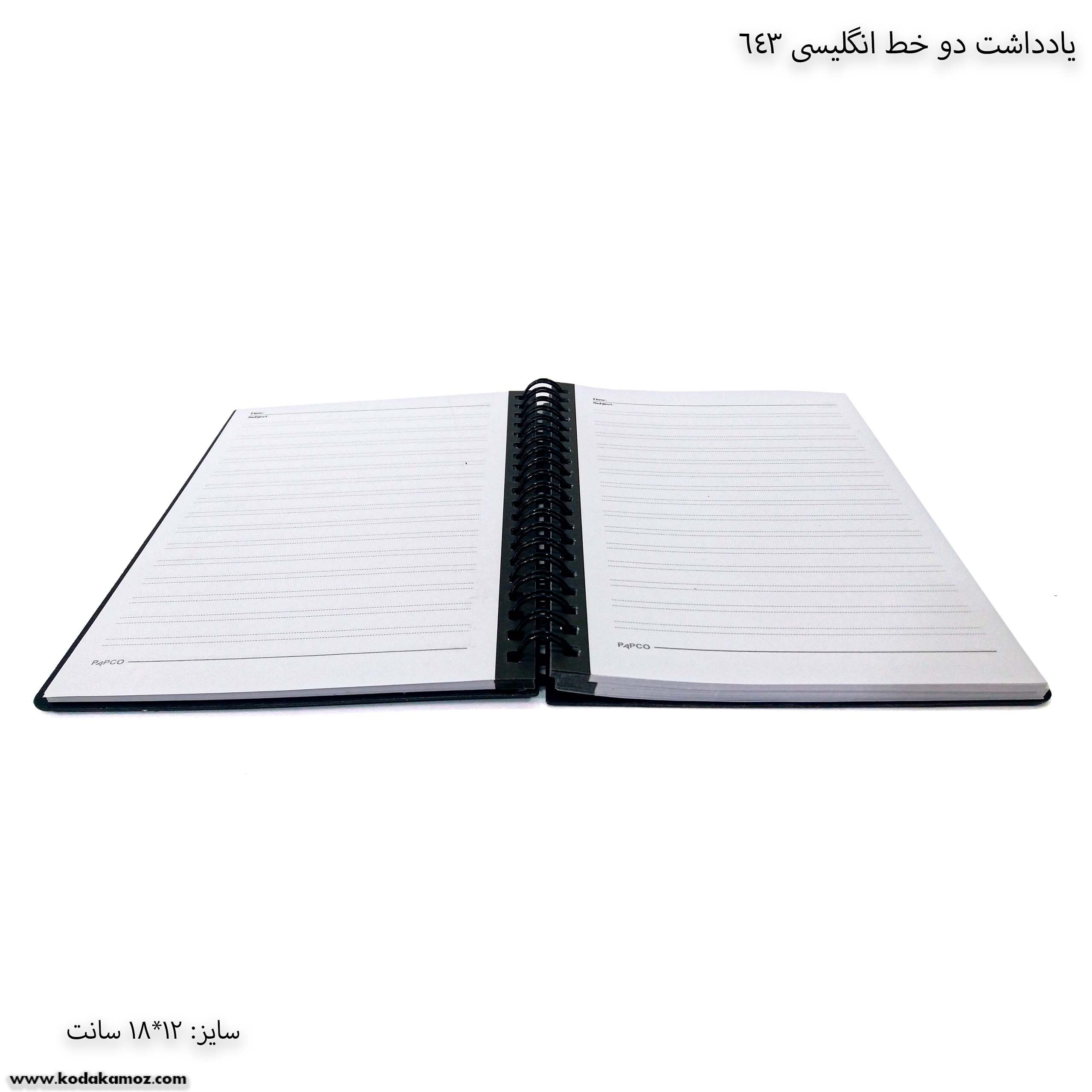 دفتر یادداشت دو خط انگلیسی 643 پاپکو  برای یادداشت‌های روزانه شما مناسب است.