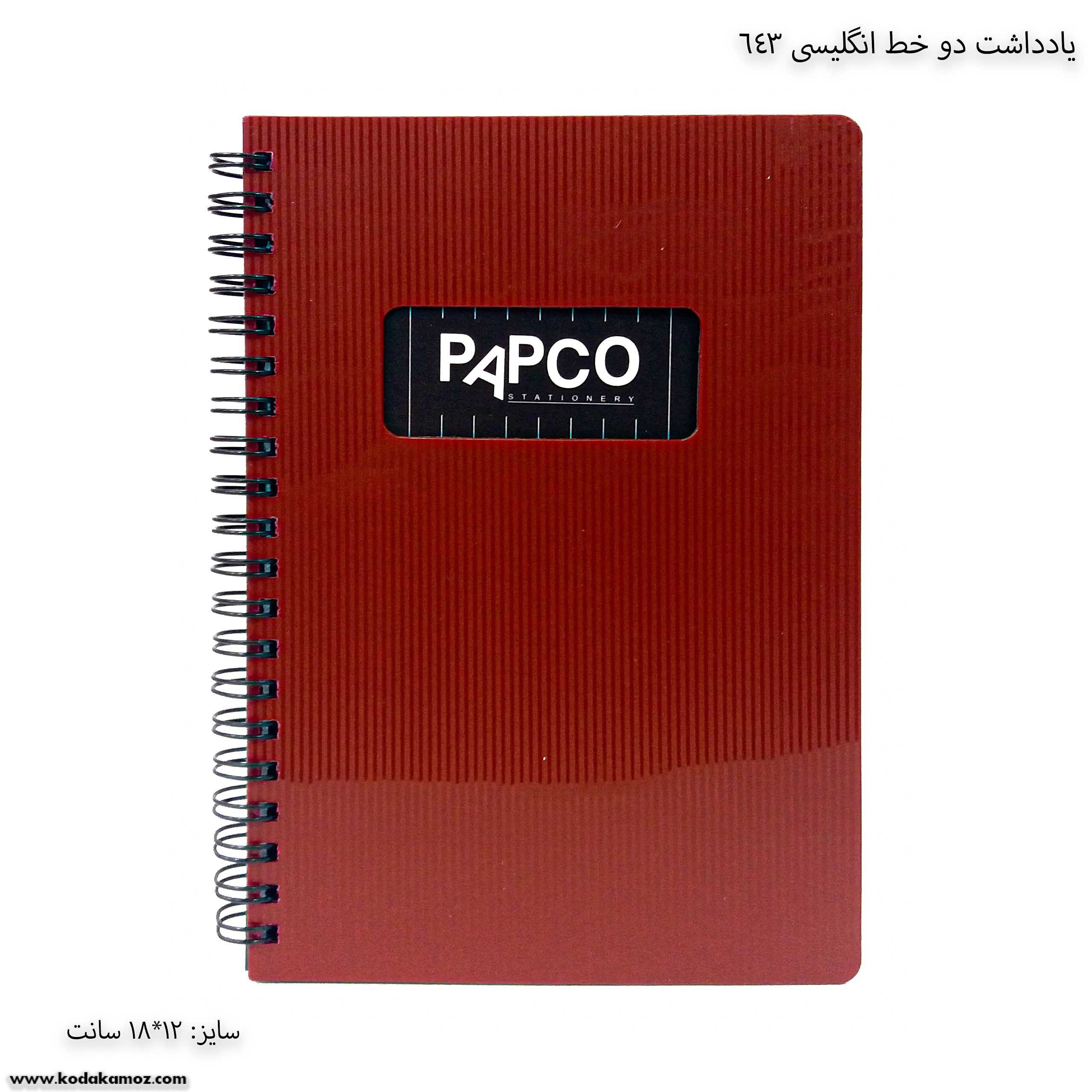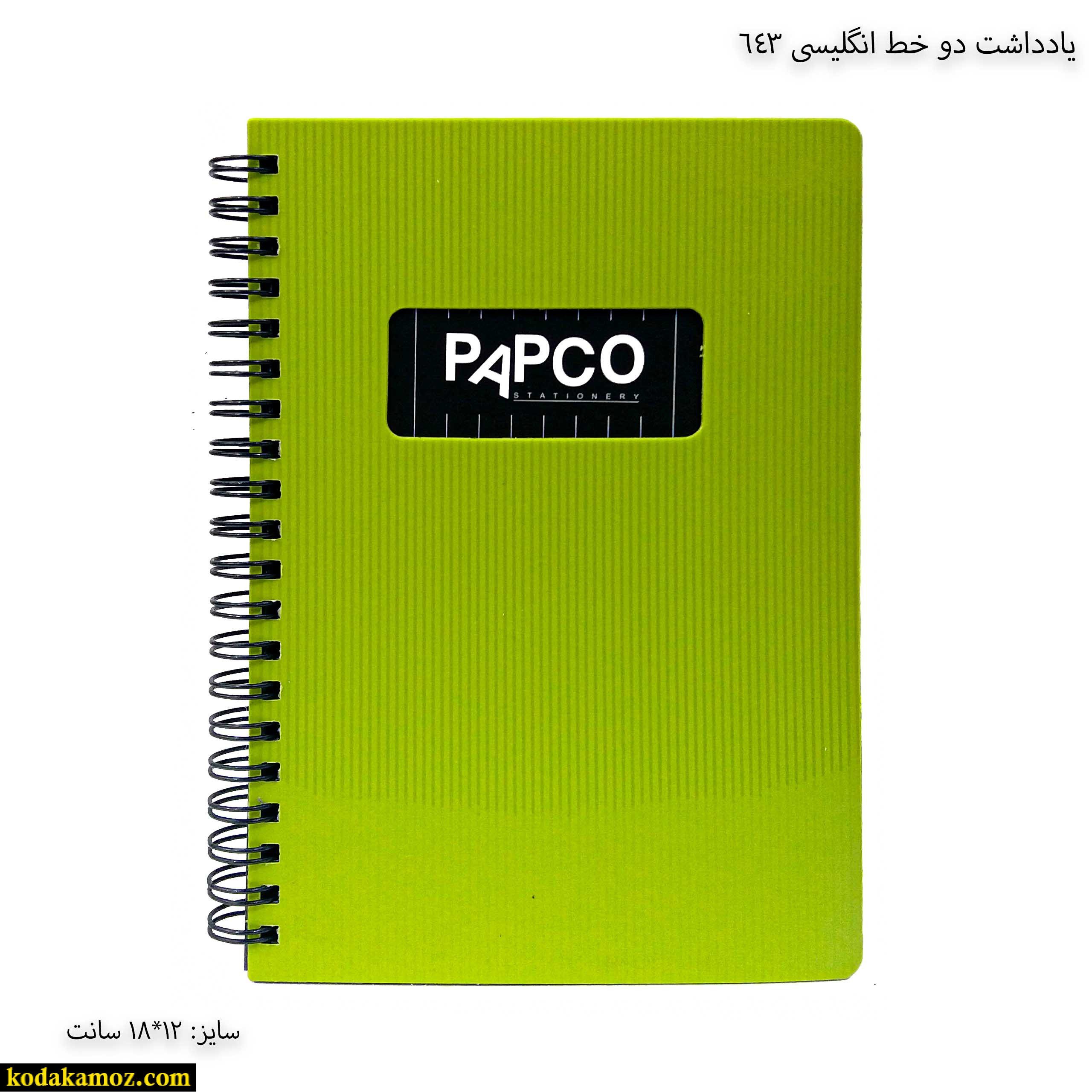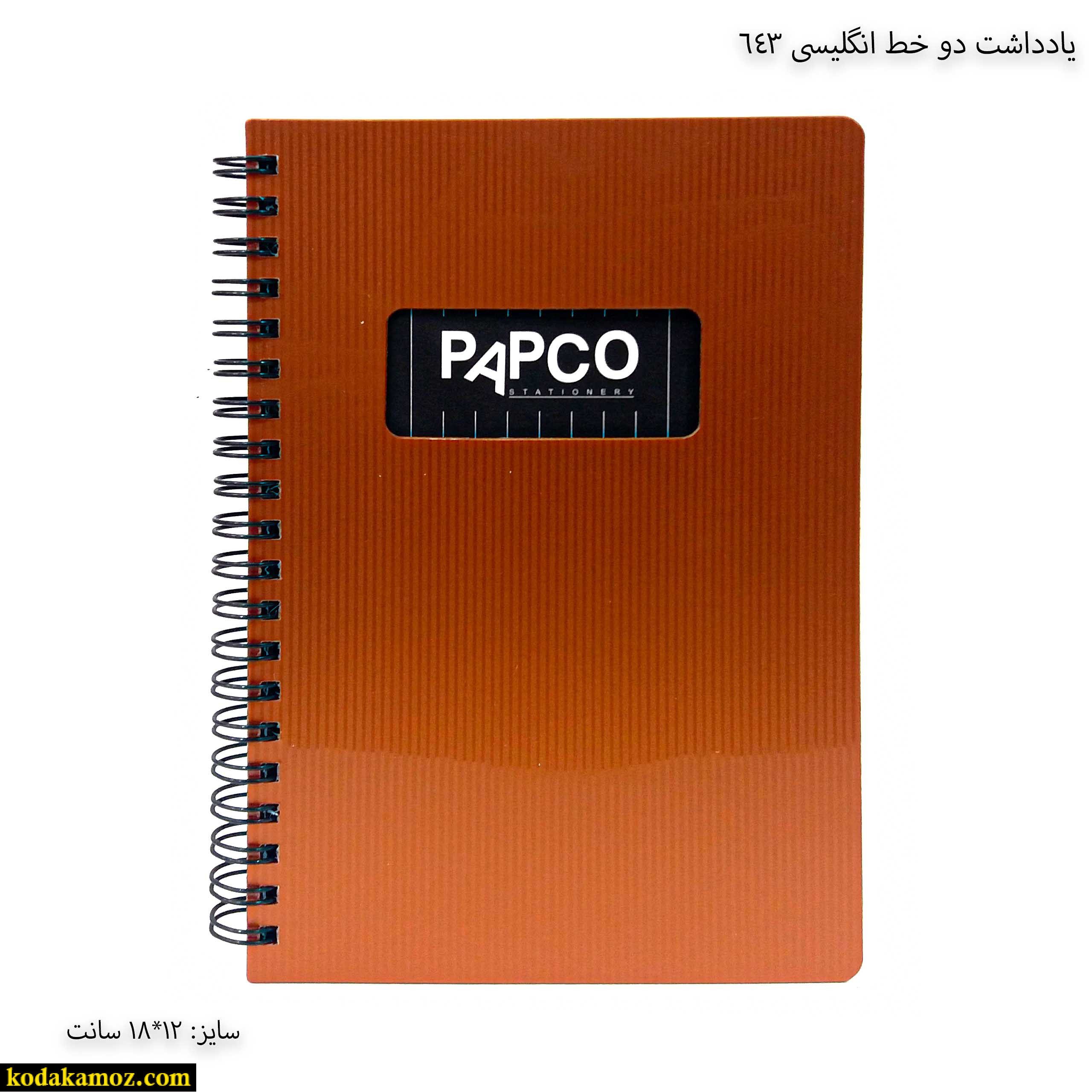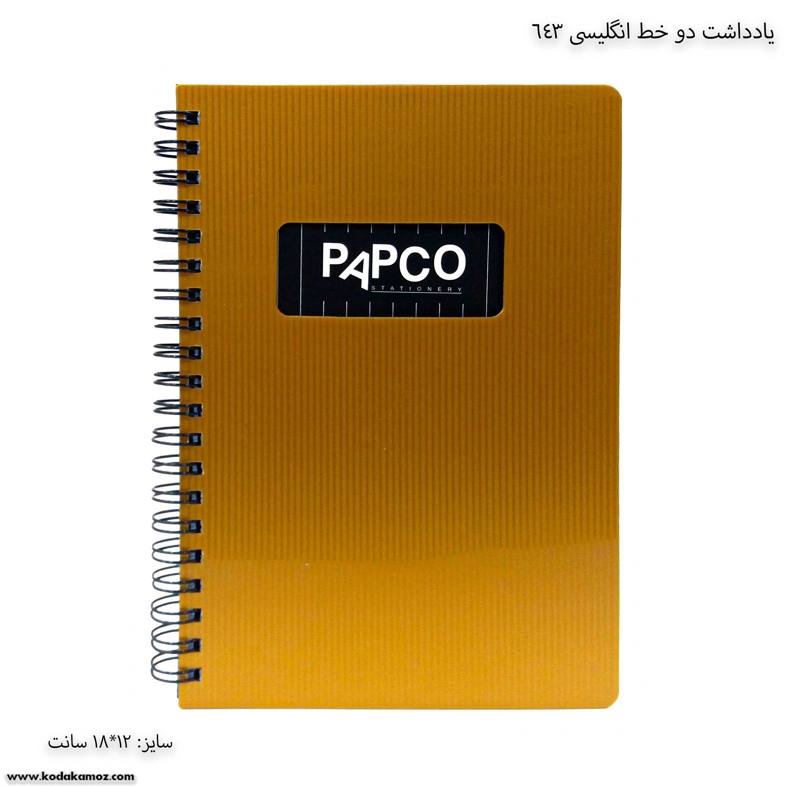یادداشت دو خط انگلیسی 643 پاپکو یک دفتر و نوشت افزار مناسب برای استفاده دانش آموزان و دانش جویان است.