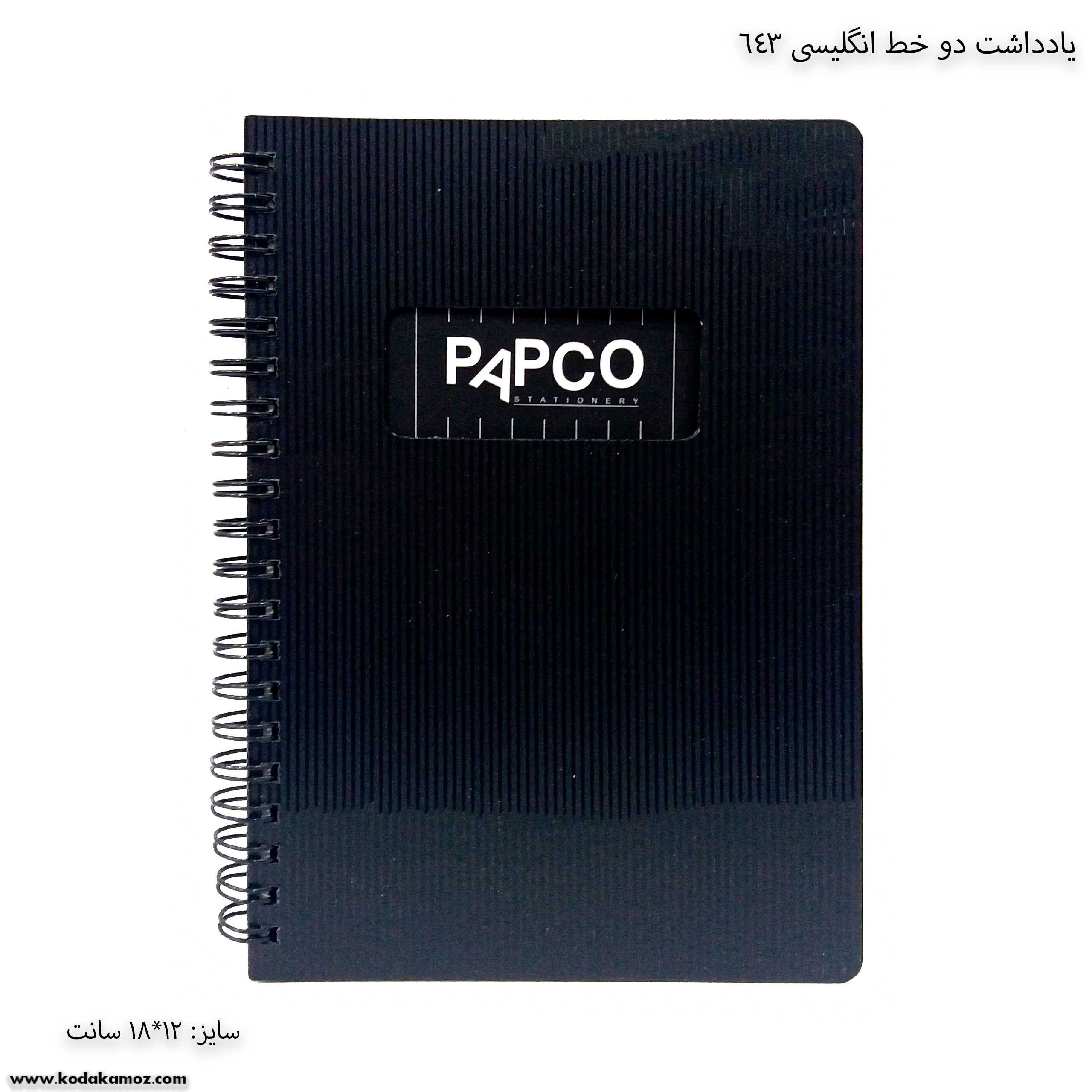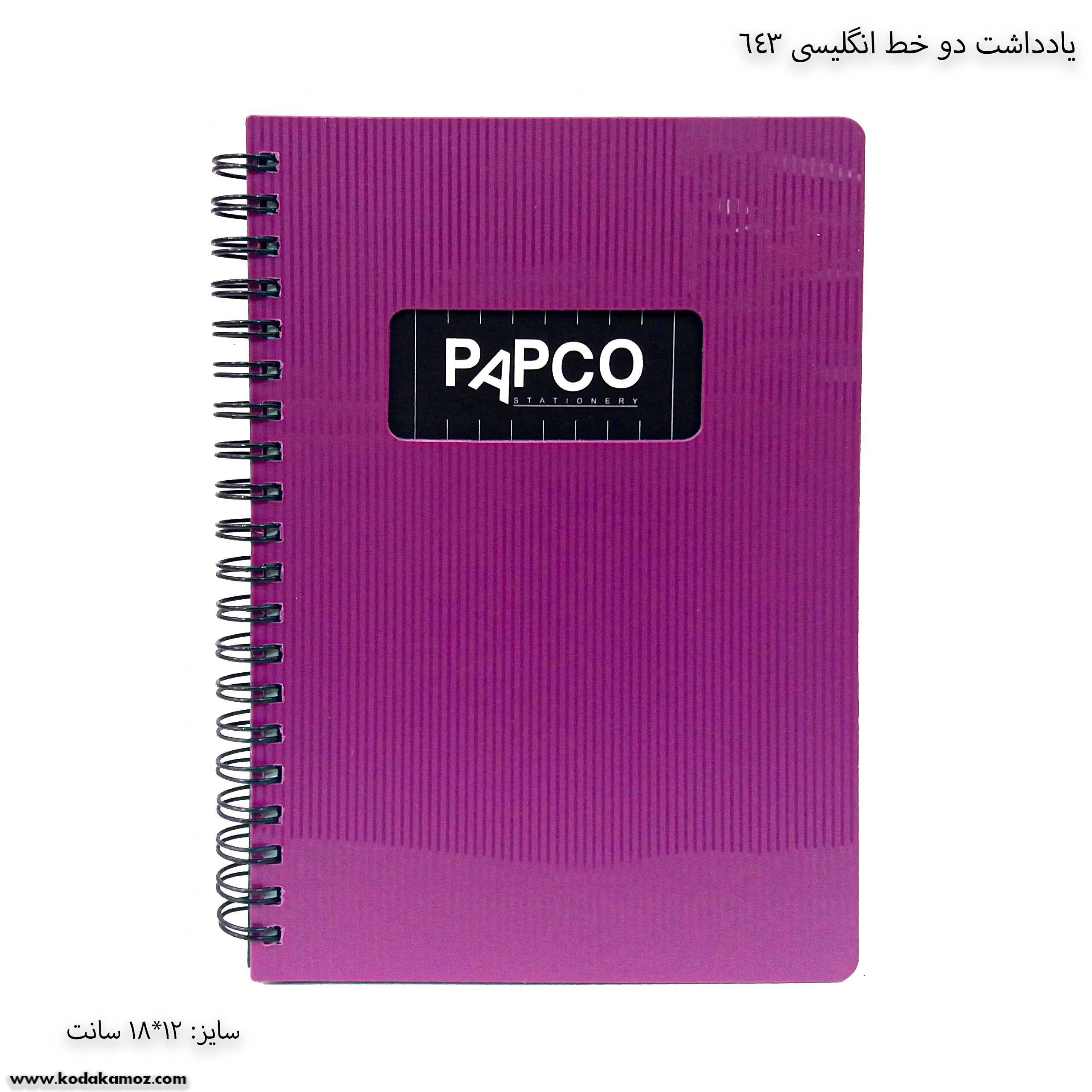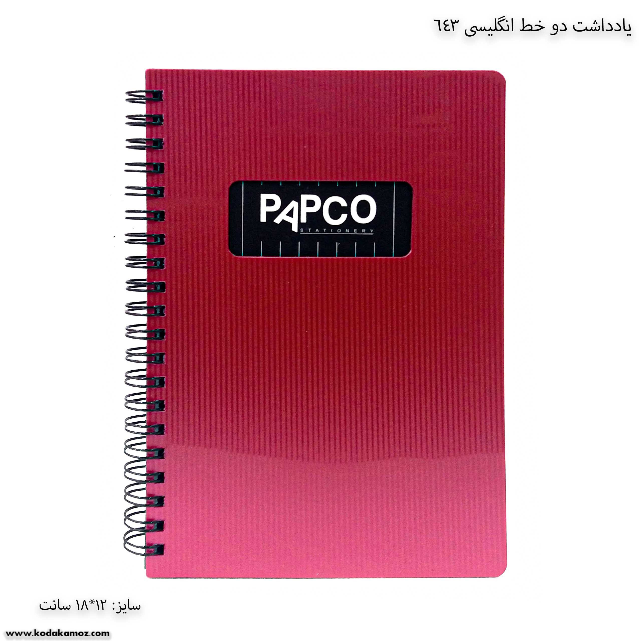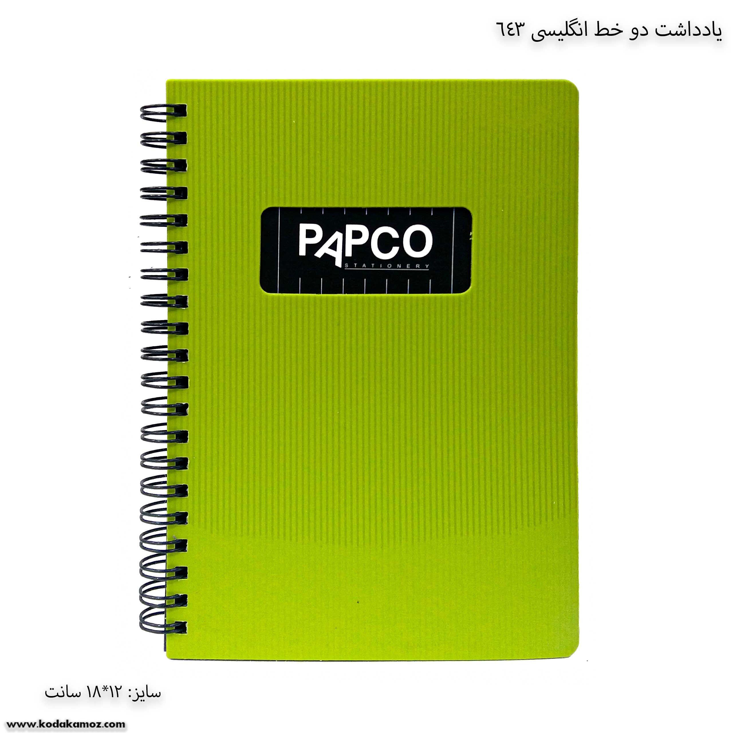 یادداشت دو خط انگلیسی 643 پاپکو یک دفتر و نوشت افزار مناسب برای استفاده دانش آموزان و دانش جویان است.